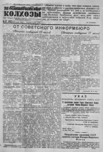 67 (482) ЗА БОЛЬШ ЕВИСТСКИЙ К < М Х Ь З & * 9 а шт # # * Хлебоуборку встретим во всеоружии В эти д н ожесточенных схваток с кровавым германским фашизмом, члены колхоза «Память Чкалова» рабоатют с удвоне ной энергией. Чуть только начинает рассветать, мз села на нолевые работы вереницами идут женщины, подорстки, старики. У всех одно стремление— заменить ушедших на фротн мужей, братьев, сыонвей. Заготовить своевременно сено, силос, обеспечить общественносмкоуту сытюу теплую зимовку, дать Красной Армии потребнколеичество фуража — об этом сейчас думает каждыйколхозник. На сенокосеработает свыше 80 человек. В большинстве это женщины. Оян заменяют мужчин на всех работах. Редко найдется такая женщина, которая не выполняет нормы выработки. Еки- мова Анастасия ежедневно на сенокосвеыполняет норму вы- рабоктн на 150 проц., Михайлова Василиса вручную выкашивает по 0,60 га вместо 0,40 га по норме. Всего в колхозе уже выкоше2н1о2 та травы. Па заготовке силсоа работают исключительно подростки ишкольники. Их всего 15 человек. Но плану требуется заложить 199 тоннсилоса, но подростки уже заложили 207 тонн и взяли обязательство еще заложить 40 тонн силоса. Высокие образцы самоотверженного труда покаызвают школьники: Пордядоквона Феша, Петрова Луша, Халявин Ваня, Михайлов Вася идругие. Приближается горячая пора хлебоуборочных работ. К этой важнейшей иампаяи у нас давно ждет тщательная погдотовка. Кузнец Агапкин Харитон со своим помощникомт. Ильинымработюа т с темна до темна в кузнице. Они уже закончили ремонт хлебуоборочного инвентаря, отремонтировали 2 жатки и 4 самосброски. Колхозники горят единым желанном убрать нынешнийурожай до едионгоколоска в сжатые сроки. Е. Подрядчиков, председатель калием .Па- мать Чкалова*. Перевыполняют нормы выработки Само твержен ым труодмотвечаютчлены еельхозартелк км. Кагановкча на прмзыв вождянародов товарища Сталина перестроить всю работу на военный лад, подчинять все интересам фронте I задачам организации разгрома врага. Сейчас на ноле идет упорная, самоотверженная работаК. олхозники работают не- поыадая рук, выполняют работу за двух, за трех. Работал на сенокосилках, т. т. Авласенко, Новиков, Петухов, Терещенко, Буглеев выкашивают за смне у по 3,5 га вместо 3 га по номр е. В обеденый перерыв, во врме я подкморки лошадей эти товарищи работатюна стогометна ии, где также перевыполняют нормы. Высокие образцы труда показывают к женщины. Они е успехомсправляются с любымзаданием. Тов. Ильина, например, ежедневнвоыполняет норму выработкина 120— 130 проц. Всего скошено 300 га травы. Заскирдован1о200 центнерсоевна. Все члены сельхозартели им. Кагановича об'лвили себя мобили зованнымнаи трудовом фротне н решили образцовои во время закончить все сельхозработы. Г. Сурков, председатель Немо-Троицкого сельмсполкома. Подхватить ценную инициативу * * * Работать неполкадярун Па-днях в райцентре состоялось совещание учителей, на котором присутствовало свыше 70 человек. Учителя с большим вниманиемпрослушали текст речи товарища Сталина, произнесенной им по радио3 июля. После этогос докладом о задачах учителей внастоящее время выступил заведующий районо тов. Бокйов. Речк выступающих были наполнены глубокими патриотическими чувствами. Учительница Северной средней школы тов. Соловьева в своме выступлении сказала: —По выслуге лет л получила освобождие