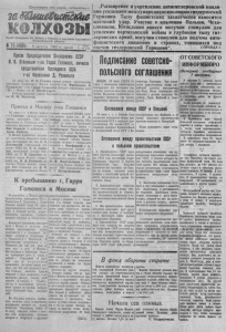 П р о л е т а р и и вс ех с т р а н , со ед и ня йт е сь ! зеШбшЯитскЬе ХОЗЫ О р г а н С е в е р н о г о Р К В К П ( б ) и Р а й с о в е т а д е п у т а т о в т р у д я щ и х с я Н о в о с и б и р с к о й о б л а с т и 1 ——т>M i L cTa г- среда Цена 10 коп. „Расширение и укрепление антигитлеровской коалиции усиливают м еждународную изоляцию гитлеровской Германии. Тылу фашистских захватчиков наносится жестокий удар , Участие в коалиции Полыни, Ч е х о словакии, Югославии явится могучим стимулом для усиления партизанской войны в г л у б о к о м тылу гитлеровски х армий, могучим стимулом для под'ема антиф аш и ст ского движения в с тран ах , томящихся под гнетом гитлеровской Германии “ . («п р а в д а») Прием Председателем Спекаркома СССР И. В. Сталиным г-на Гарри Гопкинса, личного представителя Президента США г-на Франклина Д. Рузвельта 30 июля тон. И. В . С т а л и н принял личного представителя президента Соединенных Штатов Америки г-па Ф р а н к л и н а Д Р у з в е л ь т а —г-на I а р р и Г о п к и н с а , которого сопровождал посол США и Москве г-н Л . Штейнгардт. В беседе принимал участие Народный комиссар иностранных дел ток. В. М . Молотов. Приезд в Москву г-на Гопкинса 30 июля с. г. в Москву прибыл г в - и п тел Г ь о п к пр и ез н и с д — ент л а ичны С й ША предс г т -н аа Ф во р ж а д н е к н л и и и на бр Д и . га Р д у н з о в г е о ль г т е а нер в ал со а пр г о . М а к П а р н е й и лейтенанта г. Д ж о н А л и с о н . л са и р : а В за и М м н о е о с с с к т т в и р е т а е н л н п ь р ы и х Н б д ы ар е в о л ш дн и т о х о г в о . в к с С о т м р . и е А с ч а . Л л ре е о т в а з . р о ь в за П с в Е к ед Н и у Д ю й щ , то и в г й . ен А е о р . т ал д А ь е н . л ы о й С мС о Ш с б е А о км м Н а е К й н П д о Д р ан т т т о о в в г . о . ро В Г д . . а Н М . ос З кв а ы р у г б е и не н р , ал к - о А . н ча и л й ьник Отдела внешни Р х е в сн я о к ш и е н , наIIКО полковник тов В. Н. Е в с т и г н е е в , начальник Отдела т в а н н еш в н т и о х ро с г н о ош р ен ан и г й а Н т К о В в М . Ф Е к . апи А . Зайцев, состав посольства США н в ым СССР и в П о ол г н л ом ав о е чны с м Ч п р о е сл з о вы м ча г й . Штейнгардт, Чрезвычайный и н По и л и ном г. очный посол Великобрита Ст аф ф о р д Криппс. б т ч е р л н и е а н т н а ы н то и м и во г в е . о н г н ла о в й е м с исс г и е и нера В л е - л л и е к й о Макфарлан и др. В пограничном пункте г-н I опкинс в П о р ж от д о а к л о ся льны д м о б от ы М д л е ос л в о к с м в т ы ре П ч К е и И н . Д о и . то с з в о а . п в р . оФ. Ф. Молочковым И ПОМ. ш на е ч н а и л й ьни Н ка ПО От п д о е д л п а ол в к н ов е н ш и н к и ом х т сн ов о . С . Г. Петрушкиным. К пребыванию г. Гарри Гопкинса в Москве Подпниеисасоветско- плоського соглашения г и п о н и д о с н Л а с я н т О р и Н а е в Д н н О с п о ы Н о в х . м е е т 3 щ с д к 0 е е о л н - и и п и о ю с л о л ь с м я т с . и к о н я о ( л и г Т о о с А т с С ь е с С о р г с ) п . т л о в а д С а ед г ш л а е т а н е ш л и е ь я н с . и тв я Ц о е м р п е р м а о о н х п г о н л д я и и й л п с а о к д о п п го и од с п ан р п и е р м я е ь д е с с р о е - л с м а и и н й п и с и и к с и т й р п а рис Ч м у е и т р н с ч т и и в с о л т в р л а я л . и т П н а р о к и с ж тр е п а о п а д н н п ы и г х д л р а е ч ш л и е л И н л д и ь е , я н. И с д П е р о н е с , ч л а е м М и а п й о с в д к ы п и и с й т са у н п и и и я л Си с Ч о к е г о - |рский. Соглашение между СССР и Польшей 30 июля с . г . в Лопдпое было г в в п л и и о а т т д ш е е п л л и е ь ь н с с с а и т т н е в в о о о п м м с о о . д С г п С л О и С а т с ш Р ал е и и н м и Ч п е е р о п е л и м з ь в с е ы ж к С ч и д С м а у С й Р н п п ы р р с а а й о и Полномо