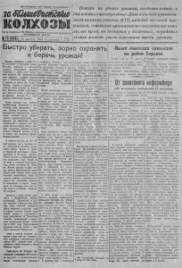 П р о л ет а р и и всех ст р ан , соединяйтееь / зеШтШШнЫ КОЛХОЗЫ О р г а н С е в е р н о г о РК В К П ( б ; и Р а й с о в е т а депу т ат ов трудящихся Н ов оси бир ск ой области № 7 9 ( 4 9 4 ) 1 15 а в г у с т а 1941 г . пятница Цела 10 коп. Потери на уборке урожая, особенно сейчас, в дни войны,— преступление. Д о л г каждого руководителя к ол хо з а ,с о в х о з а , М Т С , каждой местной партийной, советской организации—закрыть все каналы, все щели, по которым у беспечных, нерадивых хозяев может утечь известная часть урожая. Б ы с тр о убирать, зорко охранять и беречь урожай! д О у то к в Н о с а ю л с х д л о у а з в н у ы с е о у о р б и о щ ди с а о ю л в и т х с о ь зн о в ые эт в о ы х м л с е о б к а г и о . х урожаях. Стопудовый урожай с н в к ы ы и м р е аст к и о д л л а и х н о н з ы в ы м . , э П т о ом ур п о г р ж о е д а д й у вари к о т у з е б и л м а ь н о й ржи в Алтайском крае составит в среднем не менее ста пудов с г и м е н е к е н т . н а ы р Н е а а . ча х Х л л о е а б р с а о ь ш у в и б ы о р р и о к с а л я и р в ов ц н ы е а н е т ! У р к ал р О ь а т ных областях Союза, в Поволжье, на Дальнем Востоке. II в этих районах небывалый урожаи. Земля, которую так любонво о х ж о б а з р и н а . и ба ц т В ы ы е , в л а д и л а к и л а а и к п о р з л е а х к к о о р зн н а и н сн к а и ые г и орд к у о о с р л т о ь колхознн ков, пожинающих плоды своего честного труда. Велико ч н у а в ю с щ тв и о х, ра ч д т о о сти об к и о л л ь х п о ы зн й иков у , ро с ж о а з и л ж с и о и к б т о и й рае о О м г т р ы е о й ч м е н с в ы тв м е с н у н р о в о й к в л ы в а е д о о й м д н н ы и , в с д л В у е е ло л т о с о б к о и п р м о о н б н е ы б д л а ы ю н б д н и а а д м м о и й . гнус р н о ы ди м н и ы, фа к ши д с е К первому августа, па 10— 12 , дпей раньше, чем в прошлом го- \ ду, закончили в основном уборку I хлебов районы Крыма. В целом по Крымской республике уборка проведена за 20 дней, причем, I многие колхозы и отдельные рай-1 оны управились еще скорее. К 3 ч н е и 0 н . а и М ю у н л б о я о г р и к в е а о к к с о о н л л о х о в о с н з о о ы в м ых и бы н д л а а а ж з е а К к у о б ц н а е лые районы Краснодарского края убрали хлеб в десять дней, вдвое сократив намеченные сроки. В г н о о л ле о в в ы н х овс р е абот н а а х сел уч е а н с и т е в , ов н ал ач о ин п а о я о к к т а и м е ш и. т к е о З м л а п ьн ы и н к о н о сл в а сд К и п у и б с к а о н с н и е ч м а ь я до л с е с т т т и а г р т н и а у ты впервые. с п г о и е в т х ы р Б о х л о в и б с з л к и а в о т с й с т я , я З х а к п С У о т к р к а о о р л н ж а и ц и с н у к н с о к у ы й б о . , о й р Р к я а Д д и н е к р д п о а р р й л у о о онов этих областей полностью убрал колосовые культуры еще к первому августа. Хорошо идет уборка урожая в ских республиках. В Ср К е а д з н а е х а с з т и а а н т е с ч к е о н ш о е з н н о а , чи з т а е с л к ь и н р о дов бо ан ль о ше и о х б л м е о б л о о в чем в 1940 году. Организованно п хо р з о а х С х о о д т С н я и о т ве п и т о с л к т е о ы в й с ы я е ч Б и е р л а о б к р о о у т л с ы с х и оз и о в . в кол д ос н р ы о м чно по с с д т а а ю вк т ам хле и б на п т о уро о п бя л з а а т т е ел з ь а с р у аб д о а т р ы ств М у, Т с С д , аю п т ро п д р а о ю д т ук з т е ы рп в о Фо г н о д Обороны страны. Ра б о т а т ь на у борке во енными темпами! х н е о дь з н а о грузи и т с ь пол и ьзо в в ы а с т о ь копр т о р и а з к М в т о а о д ш р и ы - иналь и комбайпы, пустить в ход все простые уборочные машины, а т п в а ы ы м х . , Ш гд р и е а р б е н о у т ж а п х н р о и , м — л е о н ш и я а т к д ь о е с й ы н , а и в п о с о л е л о р е в ! Первоочередная обязан ность к о л 