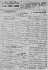Пролетарии всех стран, соединяйтесь! заШ теЯисШ Ье 1Ш - Орган Северного РК В К П ( б ; и Райсовета депутатов трудящихся ____________ Новосибирской области нуд хся I 83(498), 24 августа 1941 г. воскресенье1 1 10 коп. и Прием Председателем Совнаркома СССР (-1. В. Сталиным Посла США г-на Л. Штейнгаодт и посла Англии г-на С. Кркппс I С о г л а ш е н и е между СССР и США о б эконома■ ^носком сот руднич е ст ве н а р я д у с все более р а с ш и р я ю щ и м с я а н г л о -ам е р и к ан ск им с от р уд н и ч е ст в ом говорят о т ом , что на б о р ь б у прот ив гитлероз- с кой т и р а н и и п о д н я л и с ь и все больше объедини- \ют с я самые могущественные в мире с и л ы , к о т о р ы е смогут довести до к о н ц а п о ч ет н у ю з а д а ч у—ос- дение человечества от г ит л е р о в с к о й у г р о з ы 1Г> а в г у с т а Ч р е з в ы ч а й н ы й и П о лном оч ный П осол С о е д и не нны х Ш т а т о в А м е р и к и г - п Л. Ш теГш - г а р д т и " “ у\ и в Р в Д ы и е м у послание П р е зи д ен та С Ш А г-па i у зв ельта и П р е м ь е р .министра А н г л и и г - н а Ч е р чилля: Ч р е з н ы ч а й н ы й и П о л н ом о ч ны й Посол А п - гли и г - н С. К р и п п с с о вм е ст но посетили тон. С т а л и н а Л и ч н о е п о с л а н и е от г. Ч е р ч и л л я и от П р е з и д е н т а Р у з в ел ьт а г - н у С т а л и н у л и f t .'!ы воспользовались с л у ч а е м , к о т о р ы й пр ед с та- нился п р и об суждении о т ч е т а г - н а Г а р р и Г о п к и н с по его в озвращ ении из М о с к в ы , чтобы имеете обс у д и т ь вопрос о том , к а к н а ш и дне с т р а н ы м о г у т нлпл} Ч1 Пим образом пом очь Н ашей ст р ан е в том ве ликолепном отпо ре , к о т о р ы й В ы о к а з ы в а е т е фаш и с т с к о м у п аи ад еш мо . Мы в настоящ е е время с о т р у д ни ч а ем с т е м , чтобы снабдить В а с , м а к с и м а л ь ны м к о ли ч е ст в ом т е х запасо в , в к о т о р ы х В ы больше всего н у ж д а е т е с ь . А же много н а г р у ж е н н ы х пароходов вышло из н а ш и х портов, д р у г и е ' в ы й д у т в б л и ж а й ш е м б у д у щ е м . ; Потребности и тре бо в а н ия В а ш и х и н а ш и х во „ у ж е н н ы х сил м о г у т б ы т ь определены л и ш ь в скоте полного з н а к о м с т в а с м н о ги м и ф ак то рами , кото рые д о л ж ны б ы т ь п р и н я т ы во в н и м а н и е в т е х р е ш е н и я х , к о т о р ы е м ы п р и м е м . Для т о г о , чтобы все мы о к а з а л и с ь в с о ст оянии п р и н я т ь б ы с т р ы е р е ш е н и я но в о п р о с у о р а с пределении п а ш н х общ и х ресурсов , м ы п р ед ла га ем подготов ит ься к совещ а нию к М о с кв е , на у ч а с т и е в каковом м ы уполномочили бы в ы с о к о п о с т а в л е н ны х п р ед с т а в и т е л е н , к о т о рые могли ом о б су д и ть э т и вопросы понос ред ^ в е н н о с Н ам и. Е с ли эт о со в ещ а н ие в с т р е т и т В а ш е одобрен и е , то м ы х о т и м п о с т а в и т ь Вас в и з в е с т н о с т ь ЧТО впредь до п р и н я т и я реш ен и й э т и м с о в е щ а н и е м ' мы будем п р о д о л ж а ть о т п р а в л я т ь В ам сн аб ж ени е и м а т е р и а л ы возможно бы с тр е е . Сейч ас мы д о л ж ны о б р а т и т ь наш е в н и м а н и е на обсуждение п о л и т и к и более дли те льного периода нш> предстоит ещ е п р о й т и д л и н н ы й и т р у д н ы й п у т ь до того , к а к б у д е т д о с т и г н у т а т а полная победа, без которой н а ш и у с и л и я п ж е р т в ы были бы п а п р а с н ы м и . она о к о н ч и т с я , м о г у т р а з в е р н у т ь с я д р у г и е ноеп- ны е д е й с т в и я на ф р о н т а х , к о т о ры е ещ е в о з н и к ну г. П а ш и р е с у р с ы хотя и о г р о м ны , од н ако о г р а н и ч ен ы , и должен в о з н и к н у т ь вопрос о т о м . где Н когда э т и р е с у р с ы м о г у т бы т ь н а и л у ч ш и м обраОт сове