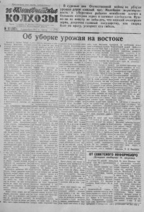 Пролетарии всех стран, соединяйтесь! ш ы О р г а н С е в е р н о г о PU Е Ш1( б ) и Р а Ч с о ь е т а д е н у т т о ч г н у я я ш ч х г н Н о л о с и Д и п с к п й о б л г е т и № 8 7 ( 5 0 2 ) , 3 с е н т я б р я 194 среда j Цена i I 1*1 К П П . В суровые дни Отечественной войны на у бор ке ур о ж а я дор о г каждый час. Малейшая нерасторопность в уборочных работах неизбежно влечет к большим потерям зерна и затяжке хлебосдачи . Н у ж но ни на минуту не забывать, что каждый килограмм зерна, досрочно сданный г о с у д а р с т в у , как снаряд бьет по вр а г у , уск ор я ет его гибель. Об уборке урожая на востоке е т м р с е о е л б н м и у т е , у т с б к к с и я о о г с р д и а и а т т ь ь с т о ру де н Н д р е а Х ж с ? м е и н м е П н о ы е р ь ш и и з е е э , р т т н о н ом я г еж е е щ п л о м е и т о т с н у е ы с ш й т и оо в х б а л р т е а ь б зн о я о б е я . н за е В т т е е о л д л ь ь с н т о ы та х н к у о ж п й н ал о у к б а п р х р а , о н а после просушки снизать его к оно ни и копнить. Прежде всего дам ответ на п р о а с т л ь ед в н п и о й лн в е оп с р о о зр с. евш Ко и н й еч х н л о е , б к у у б д и а легче, нежели, например, косить л х х л о о с е д т б и и т с , с р я а к з в о у г т д е а ж с с е т о о п д бо е о р р сл а ж з е и н м м о о о м е с ло о з ч с е н т р о о п й я а н с и п н и а е . Н ри о т и ак С о е й ве о р т н ве о т го дл К я аз у а с х л с о т в а и н й а Сиб б и ы л бы резонным в том случае, если л б д ы я а а с и в е л й г и у ч с а х т с а от , б я ы а л б а ы тр н е н е т а ь ч я т а р л е о д т е ь к а я а в д г а д у е с и т к ю а а. л н И е о н а и б т я ы ом л в о ос б с к ы л о у в ч о о а б е й о с ж п с д ел ат к о ь с о т е и о . д н о и н ц а е с н т у у ж пКолхзоы и совхозы Сиоири и лицу скосить, высушить И обмо- Сенериого Казахстана вступили лотить? Не лучше ли дать этим в самый ответственный), напри- посевам дозреть на корню и по жениый период сельскохозяйст- _ венных работ—уборку урожая, сев озимых и вспашку зяби. занн В ы ре х мен р и або д т ля о п ст р а о л в о е с д ь ения мало у , ка а работы много. Заморозки и морозы и этих районах не за горами. д л д З е е я и т м м м в е а л о к ь м о н и л о ы х б м о в и з н л о и и о в м з , р о а г в н а а и а н т г е ь а р м о , в н н с о е м а р а у с б м к и ы о л в с н ы т о р д е , о и о с е т хб р е о с и высококачественное проведение озимого сева, уборки зерновых, на Вспашку зяби. Нельзя терять буквально ни одногочаса. Нужно все работы вести одновременно. же Р 1 ожь с , ен п т о я с б е р я я н , ная да в ет Сиби з р а и мет п н о о з е снижение урожая. В некоторые ж вы е п г р од и ы та во ки в х ре с м р я ока з х им с о е в в к а и м п о о г с у е т даже погибнуть. д Се у ве к рн ол о х г о о зы Каз и ах с с о т в а х н о В а зы о т зи ек м С у ы и щ й б е и к м р л и ин го и ж н н ам о но с го по р с а е с в ш ом иря о ю зи т м . ы П х о п э о то с м пе у ши н т у ь и обязательно к 1 сентября закончить. Для быстрейшего проведения о но зим бы ог ст ос р е е в е а за н к е о об н х ч о и д т и ь мо к у а б к ор м к о у ж и о со б б м ы оло в т оз р ду ж ш и н , ой при с м у е ш н к я и я в сн се опов спо и семян. Нельзя нн на один день л з н а о и ч д е и е н р н п ж о р и г о в о с а у т ш ь к з и п е о р с н с е п а в о . по р в ж О и дно и в л вр и о е ж м о е и б н д м н а о о с с я э п т о и с м ле уч у а б с о т р к к и и , оз о и св м о ы б х о , жд с а л ю е щ ду и е е т немедленно пахать. ной В . ес П н о а сев это я г р о ов г ы о х да хл б е ы бо л в а з п а о т ч яж ти в в о еде вс н ех знач в и о т ст е о л ч ь н н ы о х по р з а д й н о е н е а , х п ч р е о м с в э и т т о п е , р л о к ьн ш о о л л х ы о х е з о ы л г о о д и д н ы с о 