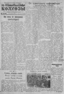 П р о л е т а р и и всех стран , соединяйтесь! О р г а н С е в е р н о г о РК ВКП(б) и Райсовета д е п у т а т о в ___________________ т р у д я щ и х с я Н о в о си б и рской области 1 90(505)1 ~ О сентября 1941 г. вторник | к1)1«"* т г г - - . . . . . — „ „ . а , . ,...дг■агадгтг.тг.УТ '-'дгу, .!) Все силы на завершение хлебоуборки! С исключительным подъемом р н н а и ы б к х о и та п ю н о а т л ш я н х е а го х с л р е а т б й е о о м у н б п а о а . рк Н е а до к к о о л л т х х е о о м з з н а кипит упорная, напряженная работа. Люди употребляют нее усилия к тому, чтобы быстро, б в р о е о з м чн п о н о о т р е а р х с ь л с е ч б и у о т б с а д р т а а ь ч т с е ь я , с д у а р ть о г ж ос К а у й р д , а а с р н д с о о т й с Армии, промышленным центрам, к то а в к . Вм м е о с ж т н е о с бо к ль о ш лх е о с з е н л и ь к х а о м з и п , ро в дук э ти грозиые дни Отечественной войны, на хлебоуборке работают рабочие, с с н л я ы у . е ж В а р щ а р б и о я е д т , ы е д к о п о м о л д о х х х о о о з д з о я я в т йк х к и л , еб к о у о у ч н б а ц о щ у р . и о е ч К таким колхозам относятся им. Кар- й да Маркса, « Ударник», им. Свор- длова, «Трудовик» и целый ряд дру О ги д х н . ако, в отдельных колхозах, д в ит о е с л о и бенно н с е ти с в ум т е е л х и , где воз р г у л к а о в в и о т ь производственный подъем масс, ю хл т е с б я о . убор О о т ч с н т ы а е ют раб с оты хл з е а б т о я у г б и о в р а к ой следующие колхозы: «Память Ле- нипа», «Северный Тартасс», нм. Тимошенко, «Красное знамя», им. Крупской, «Веселий труд». В условиях военного времени каждый пуд хл еба—это удар по врагу. Поэтому, нельзя пи в коем с б п л о о у у т б ч е о а р р е е ки д у , о р п о н у ж е с и а к з я а м т , е ь п с п н о и з ж а в т е л я н е ж и к ю к у у щу в ю а х л л о к е вого сбора зерна. Сейчас пород колхозами стоит ответственная задача—употребить все силы, мо- т билизовать все возможности па завершение хлебоубирочпых работ, л со у х ч р е а н н а ен д и и е ре у к р т о и ж ва ая. ЦК На-д В н К л П х (б) по н СИК СССР за ща Сталина, в подп к и о с т ь о ю рой това д р а и н ы конкретные указания быстрейшей б у о бо в рк д и олж у н р о ожа б я ы . т С ь каш за и к в о а н н ч и е е но хл н ее I позднее 20 сентября. В нятид- невпый срок должен быть эаскир- |ДОвап весь хлеб, обмлоот хлеба надо полностью закончить к 30 о д х к о ов т з у а я м ю б и р , я в . за п и Н о м с у т о ж а п н в о и о м т о ь щ ра ь зв н е м а р е н ж у д м т у ь оло т к т о р ь л б у у все имеющиеся молотилки, б с р а у а й ш т н и к ы т у ь н и о е со з б о а о н х е р я а т в н ы н у е им х н а л а н е и б е у а б , ор н к и а е с , п к п о о р о л м о б ь зовать каждый час па уборку и обмолот урожая, пронес ! в жизнь постановление СНК СССР и ЦК ВКИ(б) о дополнительной оплате д т н у р ен у гс д и ти а е ни п к о л о е а л т н х о и о в з ж ни у и р к в о о о ж в т а н з й о а н во о п д ст с е и т р к е а и в . ып ир о о л Это боевоо указание товарища Сталина должно быть безусловно выиолпспо всеми колхозниками. Дли этого имеются все основания. с щ е а л н ь Н к и с а я л -д о р н л у к я к о х о м в о о б в д ы , и л т и е гд л е е п й ров о е б к д с о е у л н ж х ы о д з а о л с в о а в сь е и телеграмма товарища Сталина. На оспове указании товарища б С Д л т о е я а л т л о ы м к и о п н л а о ч х е о з с с з а т о а в и с , е т р а к с ш в а е л е ж л е н ь д н и с о ы о ю г в о е х г т л р р а е а у , б ф к о о и у в к к б о а и о д ж р и д к р т о и е а г . о колхозника является безусловное выполнение этих графиков. Надо добиться выполнения и перевыполнения ки. Ни один работ н ни о к рм не вы д р о а л б ж о е т н к ух а