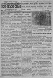 Пролетарии всех стран, соединяйте/>! т Ш т е Ш Ш Ш КОЛХОЗЫ О р ган С е в е р н о г о РК ВКП(б) и Р а й с ове т а д епутатов __________________ т р у д ящ и х с я Н овоси бирской области 1 1 0 4 ( 5 1 9 ) 1 1 октября 1941 г . суббота | î o ^ n . Товарищи рабочие и р а б о т н и ц ы , к о л х о з н и к и и к о л х о з н и ц ы , л ю д и н а у к и , т е х н и к и , и ск у сст ва ! В ст у п а я в предоктябрьское соревнование, у с и л и вайте помощь ф р о н т у ! Встретим X X I V годовщ и н у В ел и к о г о О к т я б р я победами на фронте войны и т р у д а ! ( « П Р А В Д А » ) Ш И Р Е Р А З М А Х П Р Е Д О К Т Я Б Р Ь С К О Г О С О Р Е В Н О В А Н И Я Приближается всенародный празд п к к и о ой й к О Р — е к в т о я л Х б ю р Х ь ц 1 с и У к и о . й г В од С о о э в ц т щ и ом а и л н и а г с о т д и В у ч е е с л с о и ветский парод встречает эту зна- ыепательпую дату в грозпые дни Отечественной войны. Злобный враг напал па нашу родину. Фашистские бандиты, мечтают поработить паш парод, разграбить наше добро, растоптать нашу культуру. Подлые, бандитские планы! л с с П т ы т м в в м о и м т н в ь и р с к и я а о . г г о д м С о а т , в в б н а е е с г р с о о п й л р о у и м д м б н а е о о с р р т н е с в т ы я т с м о я рг м о с ш с у и у ж п м щ е о е д с р я оич в ес п к р а е я дел К ы рас п н а а ш я ей Ар р м о и ди я н . ы, Ве г с е ь с в о е в к е , тс п к о и д й нял н с а я род н , а ка з к ащ о и д т и у п ч с е в л о оей о си тч м и о з с н т ы и. , ч Н ес а ти, пр св и о з б ы о в ды, то н в е а з р а и ви щ а Сталина все подчинить интересам ф с г о а р к , о о н п с т р о а о в , и е з т и в с о н к д т и и е й т р е е л с н ь а а н м р о о й д р р о а а т з б в г о р е о т ч о м а й е а , т тр в в р у ы адовыми подвигами. нием Сейч г а о с д , ов в щины связи Ок с тя п б р р и я б , лиж п е о всей страпе широко развернулось предоктябрьское соцпалистическое с о р е в н о в а н и е . В ряде к та ол т х е озов сор н с а в ш п е о г в о ап р п а я йона зн в ач р и е т з е у л л ь ь н о поднялась производительность труда. В сельхозартели «Веселый труд» многие колхозники стали выполнять норму выработки на 2 я 0 сь 0 п в роц с е о н р т е о в в нов и ан б и о е лео к . ол В х к о л зн ю и ч к а и сельхозартели «Красный пар» Т бо и т з а а т н ь » н о а бя п з о а л л я и х сь де в нь эти и н д о ни чь, ра к к го о д н о ч И в и а щ т - ь д и н н в е л с х е О с к р е т а л я й ь б х к о р о з м я ра п б В о о К л т н И ы о ( с б 1 т ) 9 ью 4 в 1 ы з н г а . е с т р н я е ы б ш р е е , ь н с и к к е о о г м о о со р с м а о з о р н л е е ь в р с н к т о и ы в е а в , н ш и с и я о и . ве П т п а с р к р е и т д е и о й к и профсоюзные организации должны по-босиому провести в жизнь это решение, организовать предок- тябрьское соревнование. в ст а в н е и С н е е н й ы ч д а о м с л , ж в но д н н б а ы и п т р ь а в в о о л й с е н н о ы н бн ы ен м с о ор д е е в й н н о а помощь фронту, Красной Армии. с н В к и о к й с а в м о о е б и л м ас п к т о и и л сь х ч м о л з е е н н и ы к ц о а с м е в л с ь Н е х м о о в з о а к с р о и т л б е х и л о р и з «Борец за Октябрь», Болотнинс- кого района, призывают всех К' ах 13НП1 он и шей области пол- ш бо с с т да .ю чу за к конч г и од т о ь вщ о и б н м е лоот Ок и тя х б л р е я , На обращение рабочих, инже- нерно-тсхпических работников и служащих шарикоподшипникового з з а ы в в ода чле и п м о . в Ка к г о а л н х о оз в а ича, «Б п о а рец при з а Октябрь» долг каждого советско г с г о к о и до м п в и а щ тр д и и е н л о у а т м а В и е , л о и о т к з в о н е й а т м и е т н ь О о к в т а с я т т б ь а р х X ь а с X н к I о о V й вС л о ы ц м и и ал п и р ст о и и ч зв е о ск д о ст й вен Р н е ы во м л и юци д и ос п т о л-