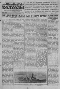 П р о л е т а р и и всех ст р а н, соединяйтесь! 2 й колхозы О р г а н С е н е р н о г о Р К В К П ( б ) и Р а й с о в е т а д е п у т а т о в т р у д я щ и х с я Н о в о с и б и р с к о й о б л а с т и 107 (522 ) 1 8 о к п б [ > я 1941 г . с у б б о т а Цена Ш коп. Г д е бы ни т рудил ся советский человек — в осажденной Одессе под градом пуль или в глубоком тылу , до которого не д он о сит ся гул фаш и ст ск и х самолетов — везде советский человек |должен понимать всю серьезность создавшегося положения и отдавать все силы н а п о м о щ ь ф р онт у , на защиту отечества. ВСЕ Д Л Я Ф РОН ТА , ВСЕ. ДЛЯ ОТПОРА ВРАГУ! ( П Е Р Е Д О В А Я шП Р А В Д Ы “ З А 14 О К Т Я Б Р Я 1941 Г О ДА ) мии Уп с ор о н г ы о е лте б л ои ым в и сей ги К т р л а е с р н о о в й ск А и р - ? ми ордма и продолжаются па всем фронте. Красная Армия, которую Гитлер и его банда многократно о ч в б т л ' о я я ж е в т е л с н я я н л о и й « > н р , е а м з г е г е ц р р к о о и м и м л ч е е п с з к п а и о х й ва » с т , о ч п « и р у о к н т а и и м . 8а 11 октября наши соколы— т я т л с я х е к б т и р ч и я х ик н и с т а а о м л у о а ь н л э к и о р е ч т о т а н д о р а ж о в и м о л а д в и н х о о . з м д 1 у 2 ш и 2 З з а н ф ы у а х 1 ч ш 3 а и с б о с т о ков Западного направления фрон к та гитлеровские части потеряли б р о о л в ьше 6 тысяч солдат я офице убитыми и ранеными, 64 т та ой нка и , б 1 о 9 е 0 при а п вт а о са м м а и ш , ин 23 с ор п уд е и хо я и несколько десятков пулеметов. Но, не считаясь с огромными потерями, враг пытается развить наступление. д в н е е тс в к н о ы е х И и нф о о ж рм ес б т К ю о а р ч к о е , н с п н о о ы о с б х л щ е а б е м ое н т в о , г С о о в ходе которых противник понес о ж г е р н о и м е н м ы , й у н р а о ш н и лю в д о ь й м ск и а и ост в а о в о и р л у и город Вязьму. Не только от Крас- ^ д но а н тр А е р б м у и е и тс , я но сей и ча о с т н в а с п е р го яж н е а н р и о е 1 всей воли, мобилизация всех сил' для того, чтобы преградить путь в н м р я е т а ц ы г к у и х , х и ч з м т а о хв б п а о ы т зи ч о ц т и б и к р й о о в си и ть и со з е г г н о с а в т я ь с щ н е з н а е ной советской земли. кие Н п а о ф л р ки онт и ид д у и т визи н и ов . ые С сов н е и т м си ' т с о т а н у н и т к б и у р , д я у а т ды виа н п ц а о р и п я о о д , л н н о а г р я о т т ь и о с л п я л о е л р ч и е и н я з и . о я Р д — а н я д в а д - е ли н б ь о . Н н о е т т е о п л е ь р ко ь б к о а л ж е д е ы ч й ем б к о о е г ц , д я но н ы и й н и , со к в к а е ж а т ж д с д ы к ы и й й й р и ч а н е б т л о е о ч л и в л й е и к г , е и нт п , к е р к е п а с р т ж и ь званный в ряды армии, должен чувствовать всю полноту своей ответственности за постяонное укрепление Фронта. л ж н и ы а ч т е е ь с о т п в К о о л м р ч а е сн н во у и о ю я ру А ж в р е с м н е и и ю я б Н о и а ль д и ш б о о и н е м с а п н р р к а и о о б д - 4 пасов. Мы должны, как того требует наш вождь и полководец товарищ Сталин укреплять тыл л л К п е е р р н м а о н и е с у т н з ю в о ой в од , р и А о а т р р б ь м о у б д т и о у и и л й , ь в , ш се е о х б в е п и с р п н е е т д ч о п и в р т о и ь к я , т у п и с у й и , рядов, самолетов. пат М р ы онов д , ол сн жн а ы б б д х о ы о о л б з ь и ш к т и а ь е ж с к я д о п л ы р х т о й о а д з к у о з к д а г ц а в о и в о а и д л п , и ол к о а ж ж зн е д а н ы ч и и й я т , ел ч ь с т н о о о вп д в и ы ус л е к с а я л дн и с и ов в е в т м о с й и к н р и ы н й о . ч е е Г л д в о р е в е ч е м е б к м я ы — в о в п н в и и ос п а т в е ж р ы р у денной Одессе под градом пул ь или в глубоком тылу, до которо го не доносится гул фашистских с в а е м к оле д т о о л в ж — ен вез п д о е ни с м о а в т е ь тск в и с й ю ч с е е 
