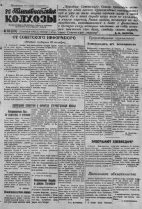 I l p f h i e m n p u n веет, стра н , ы Яиняйтесь! ‘¡аШтёФистсКке Орган Сенерного -РК- ВКП(б). и РаАсоиета депутатов трудящихся Новосибирской области Ш 109 ( 5 2 4 ) 23 о к т я б р я *194! ; iv четверг | ш е« п . 1свою Советскую страну „Народам Советского Союза, пришлась испытать не один наскок кровожадных гитлеровских орд и уже не мало жертв отдано нами в этой борьбе. Но в этой борьбе наша воля не сломлена, а могу се окрепла* Наши армии* несмотря на все трудности,, выковываются в б о я х с фашизмом в г р о з н у ю ( силу* которая п ост оитI за себя, которая отстоит свое дело, свободу своего Vнарода, Л л - л Ш * Л А Я ш Ж Л. ж ж*. жж Л Г ОТ СОВЕТСКОГО ИНФОРМБЮРО ( В е ч ер н ее сообщение 2 0 ок тября) В течение -¿0 октября , пи* «бомбордировали аэродров против- манию все, даже незиачпвдыше 1 1 1 1 Р Р й и . 111 ( ЪГИ ЕИ < | | >А л а П 11Л П И Р О I I •1 1> м а л м _ . . . ■ О Л I - -~?а^vürirfcгтттяг; ¿à« Be И» МО ЛО ТОВ . бои н а . вс ем» фронте, особенно» н а и р нж е и н ы в на М ож а йс ко й , Ми-. лляросланскон и Та ганрогском я а н -i ранленнях. Н а Завадвом, фронте нем ецко-ф аш истские войска , подде рж а нны е к р у п н ы м и соединениями т а н к о в , предприняли несколько ож е с т о ч е н ны х а т а к на ваш и позиции. Н аш и войска а т а к и немцев отбили. За 19 о к т я б р я уничтожен* 2 3 н ем ец к и х са молета. Наши потери - - -7 са молетов. # * # В одном-лм боен был серьезно ранен м и н ом е т ч и к тон. Кандыба. Несмотря на ранение , ток. Кап- дыба н* бросил спой миномет, а доставил ег о в часть. • * Наша., а в и а ч а с т ь , действующ ая на »дном из учао тков Орловского направлении ф р о ш а , за один день — 19 о к т я б р я — уничтожила 2 3 в р а ж е с к и х т а н к а , С броневиков н и к а , у ни чт ож а в •п а - и е1 1и2 0 -не- запасы продовольствия, обрекал мецкях. санелетак,-. |бсльги йякое население на г о л о д Храбро ср аж аю тся -ироти в гфи-ц конфискую т у н а се ле ни я <ценные ш и в т с к и л войск» на« Орловском и в те п лы е веши , производят арео- на правде н м ■ наши« т а н к и с т ы , , т ы сред« бельгийский и и т е л и - г нанося т в р а г у - ч у вол вилельны е «.генци*,<кото рая ,в огромном .своем, тдары . Т а н к и с т Зевыковоклй в .большинстве н а с т р о е н а враждебно, т е ч е т е 19 о к тяб ре у н и ч т о ж в л1 но отношению к гитлеровцам,, о ш е м орудий, пулеметов в - гу с е - Телько и октябре месяце немцы ни нам и своего т а н к а до роты п е хоты п р о т и в н и к а . Т а н к и с т Ш е с т о ви ко в в это т же день у н и ч т о жна 4 н ем ец ки х т а н к а . Ге роиче ски Д01>ется с врагом т а нк о вы й э к * арестовали около 4 0 0 бель гийск и х ж у р н а л и с т о в , у ч и те ле» , случеловек л а этого чис ла казнено. Судьба о с та л ьны х неизвестна . • * —~ г.-— v....WHUVIp uvaopcviri»# п а » лей тен ан та Воробьева. 1 8 j Н е н е ц к и й ч е т е н з а а и м октября танкисты обнаружил» ( местном, населению; *ВЫ должв деревне Илькове 14 н е м е ц к и ! * . . « та нко в , заправляющихся горючим , 1HU П0ВАТЬ< ч г о с Ь е л ь г я в ! люкоя - ' чено, к а к с самостоятельной с т р а ной.^. Поэтому пора за бы т ь вам ст а ры е » порядки и по н я ть , ч ю в с ту пи л и с ними в бой, в резуль тахе которого было уничтожено 9 н ем ец к и х та нков . • Ге рма нские фашисты продолж аю т г рабить Бельгию и те р р о ри зировать бел ь ги й ский парод в а Л Л ----------- - — — и 31 а в т о м а ш и н у . В это т же д е в ь ! Но ' поступивш им с в ед ен и ям , ле тч ики этой а в и а ч а с т и - у с п е ш н о ' н е м ц ы вывозят из Бель гии в ГерПредоктябрьское соревнование Использовать« все возможности В к л ю ч и в ш и с ь в предоктябр