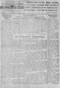 2 З А Б О Л Ь Ш Е В И С Т С К И Е К О Л Х О З Ы Иностранная печать о боевы х операциях Красной Армии А м е р и к а н с к а я п е ч а т ь п р о - к в а л и ф и ц и р о в а н н ы х т а к т и ч е с - д о л ж а с т о ж и в л е н н о к о м ы е я т п к м х п р и е м о в . Победа К р а с н о й р о в а т ь с о о б щ е н и я об у е п е ш А р м и и в К р ы м у п о к а л ы в а е т , н ы х н а с т у п а т е л ь н ы х о н е р а ц и - ч т о не з и м а я в л я е т с я п р н ч и - я х К р а с н о й А р м и и . К о м м е н т и - , в о й р у с с к и х у с п е х о в , р у н з а н я т и е К р а с н о й А р м и е й 1 А н а л и з и р у я х од в о й н ы , г а з е - Ф е о д о с и и и К е р ч и , г а з е т а « В а - ' т а « Ю н и о н » ( ш т а т М а с с а ч у сетс) ш и н г т о н п ос т п и ш е т , ч т о з а я в л я е т , что г л а в н ы м п р о р у с с к и е д о с т и г л и у с п е х а т а м ( т п в н и к о м а н т и г и т л е р о в с к о й когд е н ем цы у с п е х а д о б и т ь с я не м о г л и , иб о нм не у д а л о с ь форс и р о в а т ь К е р ч е н с к и й и р о л и в . К о л и р у с с к и е и з г о н я т н е м ц е в ■з К р ы м а , з а я в л я е т г а з е т а , э т о б у д е т н о в о й победо й г р о м а д н е й ш е г о з н а ч е в и я . И з д а ю щ а я с я в А т л а н т е г а з е т а « К о н с т и т ь ю ш е н ? п и ш е т , чт о з а н я т и е К е р ч и и Ф е од ос ии ч а с т я м и К р а с н о й А р м и и я в л я е т с я о д н им и з с а м ы х б л е с т я щ и х д о с т и ж е в и й р у с с к и х в н ы н е ш н е й к а м п а н и и , иб о д е с а н т н а я « и е р а ц и я в т а к а х у с л о в и я х т р е б у е т использования ны сокоал и ц и м д е р ж а в я в л я е т с я Г е р м а н и я . О с н о в н о й ф р о н т и осн о в н ы е с ил ы Г е р м а н и и со с ре до т о ч е н ы о Р ос с ии , гд е н а ц и с т ы о т с т у п а ю т , н е с я б о л ь ш и е п о т е р и в л ю д я х и м а т е р и а л а х . Все слои а м е р и к а н с к о г о н а ро да с о г р о м н ы м в н и м а н и е м В помощь фронту Р А Б О Т Н И К И Р А Й П О Т Р Е Б СОЮЗА С Д А Ю Т С В Ы Ш Е 10 0 Т Е П Л Ы Х В Е Щ Е Й Ко лл ек т ив ра бо т н ик о в Северного райпотребсоюза го р я ч о о т к л и к н у л с я на п ри з ы в провести новы й сбор т епл ой одежды для славн ых бойцов гер ои ч ес ко й К ра с ной Ар мии , г ро м ящ ей н ем ецк их варваров на Фр он та х Отечественной войны. На общем собрав и и предложение сдать п а к можно больше вещей для ар мии было встречено а к т и в ны м одобрением. Т у т же была произведена запись к т о и что може т сда ть. Через нескольк о м и н у т у ж е было за п исано свыше 1 0 0 ра з н ы х вещей. Бу хг ал те р то в. Зя ть ко в обясл ед я т з а ходом н а с т у п а т е л ь- задел сдать для ар мии ст еженые н и х о п е р а ц и й К р а с н о й А р м и и , фуфайку и б рю ки , прс ;сед ат ель В к и н о п о я в л е н и е н а э к р а н е к р а с н о а р м е й ц е в и к о м а н д и р о в в ы з ы в а е т н е и з м е н н о б у р ю о в а ц и й и д р у ж е с т в е н н ы х в о з г л а с ов в ч е с т ь СССР. ( Т А С С ) . Немцы с г о няю т польск их крестьян с земли Г е р м а н с к а я га з ет а^ «Ос тд ей ! п р е в р а щ а ю т с я в б а т р а к о в и в ч е р бе о б а х те р » с о об щ ае т , ч т о земля п о л ь с к и х к р е с т ь я н п е р е д а ю т с я в р у к и r e j м а н с к н х п о м е щ и к о в . М е л к и е к р е с т ь я н с к и е х о з я й с т в а о б ъ е д и н я ю т с я в х о з я й с т в а с п л о щ а д ь ю до 2 0 г а и о т д а ю т с я г е р м а н с к и м п е р е л е д е н ц а м . П о л ь с к и е к р е с т ь я н е п р и н у д и т е л ь н о м п о р я д к е п р и к р е п л я ю т с я к г е р м а н с к и м п о ме с т ь я м . З ем ли п о л ь с к и х п о м е щ и к о в к о н ф и с к у ю т с я и и с п о л ь з у ю т с я дл я р а с ш и р е н и я г е р м а н с к и х х о з я й с т в . (ТАСС;. нравленил тов. К у з ь м е н к о и ведующин то рг овы м отделом п