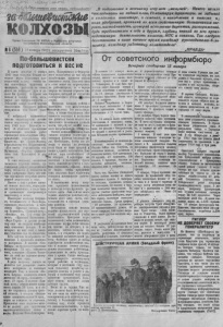 колхозы О р г а н С е в е р н о г о Г*К В К П ( б ) и Р а й с о в е та д е п у т а т о в т р у д я щ и х с я Н о в о с и б и р с к о й об л ас ти * 8 (559 ) 18 я н в а р я 1 9 4 2 г. вос к ре с ен ь е |Цена i „ В п о д г от о вк е к вес еннему с еву нет . м е л о ч е й* . Н ич е г о нельзя от кл ады ват ь на за дн ий п л а н. Р е м о н т и р у я т р а к т о р ы , не за быва й о к о л х о з н о м ин вентаре , о с е м е н а х , о н ак о п л е н и и и выво зке н ^ п о л я у д о б р е н и й , п р о я в л я й во всем сво й ст в е н н ую б ол ьш е ви к а м э н е р г и ю , н а ст о йч ив ост ь , про ве ряй ис полн ени е д и р е кт и в , р а сп о р яж е н и й , б у д ь тр еб ов ат ел ен к се бе и д р у г и м , г л у б о к о вни ка й во всю п р о и з вод ств е нн ую д еят ел ьн ость к о л х о з а , М Т С и с о в х о з а. Т а к с л е д у е т действов ать в наше военное время к а ж д о м у р у к о в о д и т е л ю - б и л ъ ш евпк у, к а ж д о м у р а б о т н и к у п о л и т о т д е л а * . ______________________________________________ _________________ . П Р А В Д А * По-большевистски подготовиться к ве сн е ког о, Н аз аро век ого и Федорове ко го сельсоветов до сих п ор не п о заб оти ли сь провести а н а л и з семенного зерна. Б ол ьш ая ви н а в этом лежит на а г р о п е р с о н а ле райземотдела, и в первую очередь на главном агрономе Ударпево, ко тор ый не обеспечил своевременного отбора ф л з ц о в семян. По с ев на я площа дь р а йо н а ныне шне м году « зн а ч и т е л ь н о к а к "боевое з ад а- ^ у ве ли чи ва е тс я . Это оо ст оя тель* ство, а та к ж е безусло вна я обя з а н н о с т ь ко лх озо в и к о л х о зн и ков добит ьс я нынче но во г о з н а чи тел ьно го п овы ше ни я у р о ж а й но сти, п о тр е б ую т весной боль - В своем док ла де 6 ноября 19 41 года то в а р и щ С та л и н пос тав ил перед ко л х о зн ы м к р е с ть ян ств ом зад ачу «чтобы н а ши ко лх о зн и ки , м уж ч и н ы и ж е н щ и н ы , ра бо тал и на свои х ,'4олях н с п о кл ад ая р у к и да вали бы ф р о н т у и стр ане все больше и больше хлеба, мяса, с ы р ь я д л я промышле нно сти. ..» У к а з а н и е вож дя па ше й п а р т ии к о л х о з н и к и Северного район а в о с п р и н я л и пае. С н еб ыв ало й акт ив но с ть ю многие сел ьх о за р те ли н ач ал и н ы н ч е п о д г о то вк у к весеннему сев у 1 9 4 2 г ода . * Б ол ьш ую з а бот у об отл и чн ом проведении п ре д с то я щ и х вес е нн и х работ п р о я в л я ю т с е льх оза рт ели « П е р вом ай ск ий » (нр ед ко лх о за тов К р а в ч у к ) , им. К ар ла Ма ркс а, уделено х о ро ш е й подготовке к весенним работам тяг ло во й с и лы. Необходимо, чт обы все лоОт с о в е т с к о г о информбюро В е ч е р н е е с о о бщ е н и е 15 я н в а р я В течение 15 января н а ш и . л а 4 дерево-земляных огневых ноцска продолжали продвигаться Iт оч ки и 6 пулеметных гяезд Провперед, заняли несколько населенных пунктов и в числе их г. Седижарово. В ходе боев противник несет большие потери в технике и особенно и живой силе. За 14 января уничтожено 6 немецких самолетов. Наши uoie- ри — 3 самолета. Нашими * кораблями в Барен- цовом море потоплены 2 тра нспорта противника общим водо-# извещением в 11 ты с яч тонн. ти ч в н к потерял убитыми до G 00 солдат и офицеров. Ниже публйсуютсн в ы д е р ж и из дневника командира па ртизанского отряда, действующею в одном из районов J пннградской облас ти, оккуп иро ва нны х немцами «30 декабря. На дороге уничтожили 2 вражеских грузовых ав томашины, 9 немецких солдат и одного офицера. 31 декабря. Отряд порвал теле 14 янв ар я наша авиачасть фонную полевую связь протнини- уничтожила 3 немецких танка , ка. К ночи партиз аны мипирова- 60 автомаш