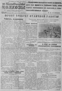 П р о л е т а р и и вс ех ст ра н, яхвзмвло до рзни ки находятся т а к ж е на фронте, хотя этот фронт и в глубоком тылу, хотя в рунах колхозников не винтовки, а сельО р га н С е в е р н о г о РК ВКП(б> и Р а й с о в е т а д е п у т а т о в т р у дя щ и х с я Н о в о с и б и р с к о й о б л а ст и |Скохозяйственные орудия'. № 4 6 ( 5 9 7 ) 1 10 мая 1942 г. вос кре сенье |Цена ю коп. | ________ М . К А Л И Н И Н . Ф Р О Н Т Т Р Е Б У Е Т О Т Л И Ч Н О Й Р А Б О Т Ы ! Работать по-военному «просохнут» большие массивы, тр актора простаивают по целым пятидневкам, а тр актористы ка- тегерически отказываются переезжа т ь на другие полосы, которые уже просохли, ссыл аяс ь при этом на « д и р е к т и в у » руководителей МТС, якобы запрещающ и е без их разрешения паха ть выборочно. (!?), Такие сл\ чаи были к колхозах им. Калинина, «Верный П)ТЬ> и др. Не лучше о(стоит дело с ¡¿с* пользованием тракторов в колхозах II-Троицкою сельсовета. Тр ак тора больше стоят, чем работают. Например, в колхозе им. Кагапо вича за 8 дней 3 трактора вспахали 1,5 гект ара . Ну что можно ск аза ть хорошее о мех ани ка х, дирекции Тартасской МТС. Дорог каждый час. Надо упот ребить все усилия к том#, чтобы э та пятидневка была решаю щей но севу зерновых. На пеВ е с е н п е - п о л е в ы е работы в колхозах нашего района развернулись полным ходом. Организованно начали и успешно проводят пахоту и сев сельхозартели Биазчнс ког о сельсовета (председатель т. Абрамов). Особенно хо рошо весенне-полевые работы про ходят в колхозе пм. Ворошилова, им. Карла Маркса. Здесь нз-доях сев зерновых за канчивается . Не плохо борются ?а проведепие се- I ва в сж ат ые сроки колхозы Федоровского сельсовета. Сельхозар- трли им. Максима Горького, им. Свердлова близки к завершению сева. Колхозы Мало-Карагаевско- го, Пово-Клизаровского сельсове тов та кж е успешно ведут полевые работы. Однако в целом по райопу ве- с еп не по зе н ы е работы разверти ваюгеа все еще медленво Особен во от стают колхозы В Краснояр ского, Б-К уликовского, II-Троицкого, Иотюкаеовского, Северного сельсоветов. Колхозы В Красноярского сель соз етг прист упили к сев у только со вчерашнего дня. До этого здесь все чего то выжидали, ссылаясь на сырую землю. Трактора до евх пор еще по-настоящему в работу не включевы. Исключительно плохо используется на полевых работах рогатый скот, нормы выработки далеко не выполняются, В колхозах Б -Куликовского сельсовета имеется 22 трактора. Это огромвая сила. Однако в резуль тате неразворотлнвости работников Северной МТС и попустительства руководителей Б Кулико вс ких кол хозов эта сила не искользовава еще и ва сотую долю своей мощности. Ре дк ий день здесь работают 2 — 3 тр актора, а остальные стоят по разным причинам. Т ру довая дисциплина среди тра кто ристов находится не па высоте, что, разумеется, не делает чести работникам политотдела Северной МТС. Вообще в тр акт орны х отрядах Северной МТС с ущ ес тву ют стр анные порядки. В ожидании когда рск лич ке , которая состоялась 8 мая , райком ВКП(б) и райисполком дали конкретные указани я по развороту еева, указали пути выполнения этих заданий. Дело честя всех руководителей сельсо ветов, колхозов, уполномоченных райкома партии, всех колхознико в и работников М ТС— по боевому вы подвить эти ука зан ия , добиться того, чтобы сев Гил проведен в сжат ие сроки. Особое внимание надо обратить на ликвидацию разрыва между пахотой и севом. Вся подгото