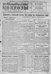 П р о л е т а р и и в с е х с т р а н, с о е д и н я й т е с ь ! колхозы О р г а н С е в е р н о г о РК ВКП(б ) и Р а й с о в е т а д е п у т а т о в ____________ т р у д я щ и х с я Н о в о с и б и р с к о й области № 51 (602) 24 м а я 1 9 4 2 г о д а ВОСКРЕСЕНЬЕ Цена номера 10 коп. Дорожить каждым часом. Все силы на заврешениесеав Ш и р е движение тысячников Но примеру стахановцев фабрик и заводов сейча с в колхозной деревне т р б а а р т с а ь т т е ь в т с д 1 в 9 г 4 и е 2 ж кт е г а н о р и д а е у п п о т о ы 1 1 с 0 0 я 0 0 ч 0 0 н п и т у р к д у о о д в в о . д В о н ы в е о й р щ , аб е с о й о , б смот е а т т а ь ть на за 15 с -с е и з л он ьно 1 м000 т ц р н а т к . т с о е р н е а, 10 в 0 ы0 р г а а л м и я н гк е о ц й * п 1 а 0 х 00 оты г , а уб зе р р а н ть ов к ы о х м —ба в й о н г ом за . С ч т т а о б р о ая рю П т я ся ти к л о е л т х к о а з * н , ик Ки е с м е е л р ь о хо в з с а к р о т г е о ли ра „ й В о т н о а , вот с каким призывом обратились они ко всем работникам сел ьского хозяй- ства нашей облас ти. Колхозники нашего района горячо откликнулись на призыв кемеровских колхозников. Они обязуются с честью выполнить свой долг перед родиной, с л в я о х им ус с к а о м р о и о т т ь вер р ж а е з н г н р ыо мм тр н у е д н о а м ви н ст а но п г о о ч враг а. ды С , е р й е ч шас а , е ' т в ся го у р с я п ч е и х е б д о н р и ьб в ыесе з н а не у м р о с ж тр ай а . Н хо а з д а о ми ск , аз к а а т к ь , , ч н т а о п - р н и а м р е я р д , у с им т . аки Д м е имь к я о н л а Бедного, им. Во рошилова, .П р о г р е с с * с х и я о . з д ыр З . а ., т г з я д а же к к о с а н е ч в и с в е нш в е а и д — моп и п у р с с е е т с в и т , му е п о с л т е з ь н ат и е я е щги е п в е к а р о е е л т д н р о од з и а н к о о й н . чи В ть эт с у ев фр п о о н в т с о е в м у е ю ст д н е о к . а Пд о у эт н о у мж у н зо а в В а п е т с о ь е л н я в н с и н е й ад в о с о е з б в м р —о о ж э с т ин о т о ь ст э в и к с з . е ам си е л н ы , , пр и о с в п е о р л к ь а д л со я е м л к о о в о л ыл ь х ц х о а з . к а а , Д ч е е к с л а т о жв д б к о о а г л ож ы д и к о о е г в м о н м с у р т н у с и к к о с о т н в а о , д ч к е и с о т т м е и у о т с т и п д й е е н л шы о н е в о ор в д г ы о а л д н ж е и р н з жа ы ц а и ть и м , э о т р б о а и т б л о и э т к з н з о и а в мк а и т е ь н п . о П в л с а и е р т х к ко о нл ч х и о т зн ь и с к е о в в , н д а об т и о т , ьс ч я т , о ч б т ыоб уы сп д е в ши нж о ен з и а е тысячников стало массовым явлением. Беззабонтоживете, т. Кузьмин Колх озы Ч с б а к о в с к о г о сель со ве та с и с т е м а т и ч е с к и с р ы в а ю т боевые з а д а ния по с е в у . З а по сл е д нюю п я т и д н е в к у надо был о з а с е в а т ь ежед пе вно по 7 4 г е к т а ра, но ф а к т и ч е с к и з ас ева ли толь ко по 20- 22. С р ы в с е в а ни ск оль к о не б е сп о к о и т пр ед се д а тел я с ель и сп ол ком а т . К у з ь м и на. В м е с то то г о , чтобы мобилизов ать все си лы н а вы п о л н е н и е гр аф и ка с ева , боев ы х зад а н и й , К у з ь м и н ч а с т е н ь к о з а н и м а е т с я л и ч н ы м и д елам и . 16 м а я , н а п ри м е р , он в ы е х а л в село П р в б е л и н к у за ход ко м , п о т р а т и в на эт о це лы й д е н ь . Н. К С Е Н О Ф О Н Т О В . Е Ж Е Д Н Е В Н Ы Й Г Р А Ф И Н С Е В А - З А К О Н ! П о ч е м у не выполняется график Колхоз им. 6 - г о с ъ е з д а Советов недо пу стим о з а т я н у л с е в . Н а 2 0 м ая засе яно 3 2 проц. к п л а н у . З а фронтовую д екаду необх одимо на в е р с т а т ь у п у щенно е. В ср е д не м в ден ь н у ж н о з а се в а ть по 8 0 г е к т а р о в . О дна ко, к а к по ка зал и пе рв ые дни фронтовой д е к а ды , это за д а ние с р ы в а е т с я . 2 1 м а я , на при м ер , зад ани е не довыпол нено на 2 8 г а , 2 2 — н а 17 г а . П ол у ч а е тс 