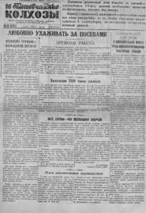 ö C U lsC CcO p c s -C s d * ) - п р о л е т а р и и в с ех с т р а н, с о е д и н я й т е с ь« за Ш бш е&имеКЬе колхозы Орган Сев ер н ог о РК ВКП(б> и Ра йс ове та депутат ов т р у дящихс я Нов оси бирск ой области №63 (614) ’ 1 июля 1942 г . среда ДЦена Ю коп. олизи тся решающий смап ии^ьиы за урожай__ х л е б о у б о р к а . У б о р к у ур ожая необх одимо провести п о -ф ро н т о вом у , бы стр о , бе з потерь. Наряд у с проп олкой, заго товкой кормов сейчас надо все силы употребить на т о , чтобы обр азцово по дготовитьс я к х л е б о у б о р к е , во всеоружии в с т р е т и т ь военный ур ожай . ЛЮБОВНО У Х А Ж И В А Т Ь З А ПОСЕВАМ И ВОЕННОМУ УРОЖ ЮА— ОБРАЗЦОВУЮ ВСТРЕЧУ Не см о тр я н а т р у д н о с т и , в ы з в а н н ы е воен ной о б с т ан ов к ой , к ол хоз ы в а ш е г о райо на хорошо пр ов ели весенний сев. Но с ра вне ни ю с пр ош лы м содом посе вная пло ща дь з н а ч и т е л ь н о у в е л и ч н н а . М но ги е с ел ь х о за рт ел и з ас еял и г е к т а р ы в фонд обо ро ны и ок а з а н и я по мо щ и к ол хо зн и к ам , п о с т ра д авш им от ф а ш и с т с кой о к к у п а ц и и . Все эт о св и д е те л ь с тв у е т о мо щи ко л хо зн о го с тр о я , о вы с о к ой па тр и о ти ч е с к о й с оз на те л ьн ос т и т р уж е ни ко в с о ц и а л и с т и ч е с к и х полей. Н а к о л х о з н ы х полях все ярче р а з г о рает ся пл ам я соц иа л ис ти че ск о го сор ев н о в а н и я . З а к о н ч и в пе рв ы й э та п борьбы за у р о ж а й ,- п о с е в н у ю , — к о л х о зн и к и у п о т р е б л я ю т все ус ил ия к то му , чтобы в ы р а с т и т ь вы с о к и й ур о ж ай. М н о ги е ко лх о з ы уж е з а к о н ч и л и п ро по л к у. П р и б л и ж а е т с я хле бо уб о рк а— р е ш а ю щий э т а п б ор ьб ы з а у ро ж ай. П од го то вит ь вое нно му ур о жа ю обр а зц ов ую в с т р е ч у — н ео тл о ж на я зада ча всех р аб о т н и ков с ел ь с к о го х о з я й с т в а . Н у ж н о в с а мые бл и ж а й ш и е д ни при ве ст и в бо е ву ю го то вн о с ть х .к б о у б о р о ч н н е м а ш и н ы , необ х од им ы й и н в е н т а р ь . Эт а р а бо та не т е р п и т н и к а к о г о о т л а г а т е л ь с т в а . А между тем ф а к т ы св ид ет е л ь с т в у ю т о том, что в ряде колхо зов С е в е р н о го , Н - Т р о и ц к о го , Че ба к ов с к ог о, Ч у в а ш и в с к о г о , В К р а с н о я р с к о г о сельсо ветов ещ е не н а ч а л и ремо нт х л еб оу б о р о ч н ы х м а ш и н , и н в е н т а р я . С т р а н н у ю по зи ц и ю з а н и м а е т в этом деле рай зем- отдел Р а б о т н и к и райзо сов ер ше нн о не ру к о в о д я т э то й рабо той. О ни не им ею т аб с олютно ни к а к о го пре д ста вл ен ия о том, к а к ид ет п о дг о то в ка к хле бо уб о рк е, к а к об ст ои т дело с ремон том м а ш и н . Под об но е от нош ен ие к столь ва ж но му делу с в и д е т е л ь с т в у е т о бе сп еч но сти ра б о т н и к о в ра й з о , об о т с у т с т в и и о п е р а т и в н о г о р у к о в о д с т в а сель х о зр аб о та ми , ДРУЖНАЯ РАБОТА Нвлючиыннгь во Всесоюзное социалистическое соревнование за высокий урожай и повышение продуктивности животноводства, колхозники Федоровского сельсовета прилагают все ус илия к тому, чтобы вы растить высокий урожай, вдоволь заIото- вить кормов для животноводства. На колхозных полях ки пя т др ужн ая работа. З ак ла дку силоса перевыполнили все колхозы. По плану надо были заложить 4 0 0 тонн силоса, а ужо положено свыше 5 0 0 тонн. 11^Ро п о л к а т а к ж е близятся к кого прополку хлебов закончили несколько дней тому назад. По забывают колхозники и о будущем урожае озимых. Подъем паров закопчеп в дчух колхозах сельсовета — им. Свердлова и | м. Горького. Остальные колхозы з аканч ивают вспа