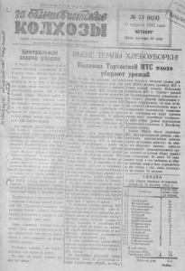 V l rn ^ m ± p m j S , x J j : j ^ , s beduHS,Íw,cb! О р г а н С е в е р н о г о P K В К П ( М „ O f i c i e « д е п у т а т о в - --------- т р у д я щ и х с я H o b o c i i f i B o L o O о б л а * „ >Т“ ° * Центральная задача уборки ,'ЬОЯ с п о т е р я м и — ц с п т р а Л п а я ,т 1 уб ор ки. Од нак . неко то рые к о - ! * . Л* Ч1!Л0П :,то 15 р е з у л ь т а т е пераз- я колхозой и С полетов [м ч а - ’ * * * * * * ? * /уь 'ов едптелей М Т С и пол- uv «л о т . , . ...... л - ‘ I ш е и . Им еющ ие ся в МТР. ' » р м » ЛЧЯе л 1> письме к п ред сед ат ел ям сельсин Л советов д е п у т а т о в т р у д я щ и х с я М. I!.- * 3 К . л и н и я п и са л : «П о т е р ь б ы т ь п з дол- > * ж по. Д о пу щ е н и е п о т е р ь п ри уборк е от чего бы то пи было в это трудное! ^ Га для ст ран ы в ре м я о з н а ч а ет пред атель* ^ с т в о инт ересо в р од ин ы , поя; в с п и н у * Красной А р м и и » . Пе рест ой хлебов, ос та в л е в в о а х полосе полосьев — оспси-, Йп ы е п р и ч и н 1 п от ер и зерна. но, ч то если н а к ва д р а т н ом метре т а п от ея 1 0 кол ось ев, то в делом гашезгу . р а й о н у 'п о т е р и з е р н а соста около 1 2 0 т ы с я ч п у д о в . У л е одна э т а ц и ф р а го вор ит о ч чт о борьба с п о т ер ям и за дач а водитед стоящ ему не в кл ю ч а л и сь в борьбу с пот ер ям и. Б и а з и н с г п й сед г со вет (пре дсед атель т. А б р а м о в ) иде т «переди но Уб°Р“ - Ко здесь за бы ли о главном - г Г "°Рьбе с п от ер ям и. В к ол хоз ах имени \ . а а а е в а , «К р а сн о г в а р д е е ц » , им. Ворошило ва ост а е тс я па полосах множеств« колосьев. Не с м о т р я н а рлд вред у пред У д е п я й , рук о во д и те л ь э т и х колхозов спорно и гн о р и р ую т у к а з а н и е в ыш е ст оя щ и х о рг а н и з а ц ии о б .р ьб е с пот ерями. Р а й . > ^ о м В1Ш (б) к р е п к о п редупр еди л тон. \ Апра.чова о н е допус ти мост и4 ь,.,; плыл безобразий и пот ребовал п о -н а с т о ящ ем у орг аи в з е в а т ь борьбу с п о1е ря ми зерна. и с к л ю ч и т е л ь н о пло хо ведется борьба с п от ер ям и в к ол хоз ах р ад и уса Те рт ое ской МГС. П р о в ер к ой у ст а н о вл ен о . чт< ком байнёр Г у г у ч е г л («толзоз « К р а с н ы й О к т я б р ь » ) о с т а в л я е т в м я ки н е и соломе з н а ч и т е л ь н ую ч а с т ь зерна. 1< 1кое пол ож е н и е те рпи мо бы ть пе может. Люди, д о п у с к а ю щ и е по? е ри зе рна п р е с т у п н и к и ! О я л долж ны п ри в л е к а т ь с я к от в ет ст ве н н ос т и по за ко нам во о зп о го времени. Необходимо п о м н и т ь , что борьба с п от е р я м и — э т о борьба з а победу. Псе силы - н а у б о р к у военного у р о ж а я без пот ерь ! ВЫШ Е Т ЕМ ПЫ Х Л Е Б О У Б О Р КИ! Боляоиы •ар- эсской МТС плох убирают урожай i n . - ! w r f Ь17 СТа п а ^ а сс дап вп рг.П::ома № 1 1 1б) «Осуждался вопрос о ходе уСоп KII vor nean т. л«,., ____ J ‘ i;« у ро ж аи и севе о зи м ых и колхоз ах Г'адпуса Т а р ш с с к о й МТС . У о о р х а уро ж а ' 1 8Десь. проходит к рай пс п с у д о ы с т ’ |1а10^ 11Т' :я иод угр оз о й ергдва. 1 0 м г у с г а было уб ра н о всего 5 2 8 По дсчита- j г ^®Та^ров, *что с ос та вл яе т 7 , 6 цроц. к 1 п л а л у , я том числе к о м б а й н а м и - 9 0 } м . > р ;е колхозов у б ор к а по с у щ е с т в у еще пе р а зв ерн ута . В колхозе и п а ц м е п про лет ари й» у б ра но толь- Н ® ] 1 ’ 8 с Северном Та рта сс е« - о , I й ре сво и п а р т и з а н е » — 4 . в им. 1 7 ш а р т с ъ ез д а— £ , ш о , { - Им с С и кол хоз ах ¡ .м аш ины по н а с т о ящ ем у в рабо ту пе вкл юч е ны . Из 31 коыба йи а рабо тае т т ллько 16, при ч ем 4 с е в е р н ы х комбай- ! “а ™ сих Г18Р СТОЯТ н а усадьбе МТС . ! \1] , : п р о с ты х у б ор о ч ны х м а ш и н ра- ^ I о о т е т то л ьк о 1 4 . И ком б айны , и про- т1>; 1 м а м и н ы ра бо та ю т с пер ебоями, ча сто п ро ста и ва ю т, молодые ком байнеры ьс п о л у ч а ю т с