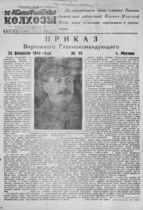 2 З А Б О Л Ь Ш Е В И С Т С К И Е КОЛХО ЗЫ 2 6 ф е в р а л я 1 9 4 3 г. № 16 17 (6 71-672) П Р И К А З Верховного Главнокомандующего 23 февраля 1943 г. № 95 г. Москва {Окончание. Начало см. на 1 стр.). У немцев в этом отношении далеко не все благополучно. Их с т р а т е г а я дефективна, та к к ак о н а , к ак правило, недооценивает сил и возможностей противника п переоценивает свои собственные силы . И х та кт ик а ш&блонна, та к к а к она старается подогнать соб ы т ия на фронте под тот или иной п араграф устава. Немцы а к к у р а т н ы и точны в своих действиях к огда обстановка позволяет осущ ес тв лят ь требования ус тава. В э том их сила. Немцы становятся беспомощными, когда обстановка ус ложня ет ся и начинает <не ответствовать» тому или иному п а ра гр аф у устава, требуя пр ин я т и я самостоятельного решения, не предусмотренного уставом. В этом их основная слабость. Т аковы причины, определившие поражение немецких войск и ус пех и Красной Армия за последние три месяца. Из этого, однако, не следует, что с гитлеровской армией покончено и Красной Армии остае т с я лишь преследовать ее до за пад ны х границ пашей страны д ум ать т а к — значит предаться неумному и вредному самообольщению. Думать т а к — значит п е реоценить свои силы, недооценить силу противника и впасть в авантюризм. Враг потерпел поражение, но он еще не побежден. Немецко фашистская армия пере живает кризис ввиду по лу че нных от Красной Армии у д а ров, но это еще не зн ачит, что она не может оправиться. Борьба с немецкими захватчиками еще не кончена,— она только раз верт ыва етс я и разгорается. Г л у по было бы полагать, что немцы по кинут без боя хотя бы к и лометр нашей земли. Красной Армии предстоит с у ровая борьба против коварного, жеетокого и пока еще сильвого в р аг а . Эта борьба потребует време ня , же ртв , напряжения наш и х сил я мобилизации всех ваш и х возможностей. Мы начали освобождение советской Ук раины от немецкого гнет а, но миллионы украинцев еще томятся под гнетом немецких поработителей. В Белоруссии, Литв е, Ла тв ии, Эстонии, в Молдавии, в К р ы м у , в Карелии пока еще хозяйни чаю т немецкие оккупанты и их прис лу жни ки . Вра жеским а рм ия м нанесены мощные удары, но враг еще не побежден. Немецк ие захватчики яростно сопротив ляются, переходят в контра т а к и , пы таются задержаться на оборонательных рубежах и мог у т п ус ти ть ся на новые авант юры. Вот почему в наших рядах не должно быть места благодушия, беспечности, зазнайства. Весь советский народ радуется победам Красной Армии. Но бойцы, командиры и политработники Красной Армии должны твердо помнить заветы нашего учителя Ленина: <Первое дело не увлекаться победой и не к ичи ться, второе дело— закрепить за собой победу, тр еть е— добить противника». Во имя освобождения нашей родины от ненавистного врага, во имя окончательной победы немецко-фашистскими з ах ватчиками, — П Р И К А З Ы В А Ю : 1. Неустанно совершенствовать боевую выучку и ук реплять дис ципливу, порядок в организо заввость во всей Красной Армии и в Военно-Морском Флоте. Усилить удары по вражеским войскам, неустанно и упорно преследовать врага, не давать ему закрепляться на оборони тельных рубежах, не дав ать ему отдыха ни днем, ни ночью, ре* зать коммуникацию врага, ок р ужат ь вражеские войска и у н и ч тожать их, если они от к а зы ваются сложить оружие. 3. Шире раздуть пламя партизанской борьбы