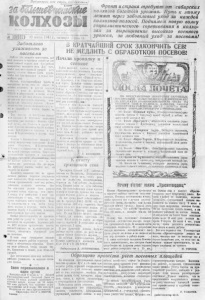 Пролетарии всех стран Ч Ш 6 л 1(632) 10 и ю н я 1943 г . ч е т в е р г j «ц,.|1А" Фронт и страна требуют от си б и р ск и х колхозов богатого ур ож а я . Путь к эт ом у ! лежит через заботливый у х о д за каждой колхозной полосой. Подним ем новую волну социалистического соревнования в к о л х о з а х за выращивание высокого военного урожа я , за любовный у х о д за Заботливо ухаживать за посевами Сейчас для каж д ог о ко л хо зн ик а , для ясех з ап я ты х к т е л е к о м хозяйстве мет Солее важной задачи, к а к быстрейшее завершение кесеппего сева. Для тог о, чтобы по лу ч и т ь высокий урожай, дать фронту, ст ране больше хлеба нуж но, чтобы сев был завершен и самые ближайше о дни Однако, на пр яж ен не йш ая борьба за завершение плана сева пе может, яе должна заслонить и др уг ую важн ую зттач у — уход за посевами. Обком ПК11(б) и облисполком в своем п-.ставоплеайи от 25 мам обя taли пемедлеппо ши око р; пронолку, меж д у р л д ы ю 0эр Г» т у !II (С ».10 R Нужно Пом нить,что ухо да х и ) 'еаами — а о г ип и ) налои* у рож-» и. й : н X .); ап )в борьбы за Т а к 11 м* 14» и г. о *л у чают передовые колхозы . В Ост я ико.м сель-зивете прополка у ж е начала-’ ь. Колхозы сЕди ь ц З п у г ь » , им. Стали п и другие уд-?- ЛЯЮТ б.'ЛЬЩОе е н и м а п ; о борьбе с сорна к л и н . Прист у п и н к ;ярополке в кел - хозах Ы Каряi глевско го » д р уг и х сельсонетах. Однако в бОЛЬШИНС!юс колхоз*в эту работу веден1устИМО яяi t» икают В колхозах Се В)Pjtuoro, В- К ]ае по ярс ко го . 11-Трои цк о го сельсоиот()в не прополото НИ ОДЯОЮ 1Скт ар а нос:евов. Некоторые руководители[ КОЛХОТО!з и сельсоветов 3»т Ж у про г л к ц об;ии аи ш е е f e u , что пе хиатает ] ыбо чих р;р к . что па гене 31 п я т и все работник»». Это пе верно. Па прочолк)г должны вый ти все, от старого до м.алого П р а к т и к а показала, что на пропол очн ы х работах хорошее результаты дает слельщ- ]П». 1Ьдо всяческими способаыи п р а кт и ко в а т ь этот вид работы, добиваясь в ысокого качества. Особое внимание должно быть уделено прополке т а к и х ку л ь т у р , к а к просо. А между Т(М сообщения с мест сии дет ельствуют о том , что на посевах проса по вв пл о' ь много сорняков. Зада ча за кл ю ч ае тс я в том, чтобы сод**р- ж а т ь посевы в по рядке , вести беспо Щадную борьбу с сор ня ка ми , проводить мн о го кр ат ну ю проп ол ку посевов Особая ответствен нос ть за орган изацию работ по ухо д у за посевами возлаг ае тс я на агроном ов . Агрономы рай- со, МТС должны организовать понсед певпыЗ контроль за п , ополочпымн работами, обеспечить образцовый уход Э за посевам и. В этом году государство оказало колхозам нашего района огромпую по мощь в обеспечении семопами. Н оэт о-| му надо добиться, чтобы каждое зерно, брошенное в землю, дало обильный ур о ж ай . Для д ост иже ния этого иад заботливо, любовно у х а ж и в а т ь за ка ждым г е к т а ром посева. Заем пе рев ыполнен в од ни с у т к и Вып ущенный 5 июня с. г. второй Госуд арс тве нны й Поенный Заем на сумму 12 млрд, руб лей размещен в тече ние одних с у т о к на 14 млрд. 551 млн руб лей , что означает перевыполнение на 2 млрд. 561 млн. руб. По дпи ска на заел! продолжае тс я. Нар комфн СС< Р Л. ЗВЕРЕВ. 6 ию н я . у по рс т во м .' Псе коз хз зы ведут проп олку посевов, од. -•leнио идет вс паш ка паров Не з и р г колхозы и о за готовк е кор-мои. Во всю разьертинает я сен .кос щ к а сало гя. В колхозе им. Сталин а вы.д-.и-на бригада кощов в 12 ч* л, КОГО¡•ь -) v i r e третий де ь косят се :о, 8 ч■Cf. работают из ;*.»• кладке сил*>оа. К ЛХ01НИ1 .и Оег