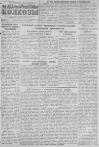 м л * ,u u > u t& s * k р о л е т а р и и всех с т р а н, со единяйте с л! ШЩШиёШтМм % , М : Орган С е в е р н о г о Р К В К П ( б ) и Р а й с о в е т а д е п у . а т с в т р у д я щ и х с я Н о а о с и о и р с к о й о бл а сти 168 (722 ) 17 дек абря 1943 г. пятница |Ц*а*а 15 коп Своевременно провести ремонт тр а к т о р о в ДОГОВОР МЕЖДУ СОВЕТСКИМ СОЮЗОМ И ЧЕХОСЛОВАКИЕЙ В последнее время между правительством СССР и п р а в и л т и ел ки ьство Пр м ои Ч с е х х о о д с и л л о и вац п к е о р й его Р в е о с р п ы уб о заключевиа договора о дружбе и д п у осл С е о ко ю еи з п о о м м Со с в о е т т р с у к дн и ич С е о с ц т и в а е л м и е ст ж и - теских Республик п Чехословацкой Республикой» и протокола к нему. Договор подписан в Кремле таимпой помощи и послевоенном Iпо уполномочию Президиума сотрудничестве. <* (Верховного Совета СССР Народ* пыы Комиссаром Иностранных Д н к е о о л м й В о Р и . ч е ю спу Ы П б р л М е и з о к и л и д о е т н Ч о т р в а е ы зв м Ч ы е и ч х а о п й с о н л ы о у в м п а о ц л и Полномочным послом Чехословац Эти переговоры протекали в атмосфере сердечности жественного тнмопопим и аина дру м привели к подписанию 12 де кабря с. г . в Москве «Договора > дружбе, взаимю! помоще а кой Республики в Москве госио дивом 3. Д, Фордипгером. Этот договор является важным |этаном н развитии традиционной д за руж и бы Чех н о а с р ло о в д а е к ) и С е о й в . ет О ск н ого пр С он о и ю к нут непоколебимой решимостью Д с г я а ог , о п в п о а л е р н и д о в г ,п о а у ю с р щ т а и и з т г х р ь с о я м в с а т б о о у р б д о у щ щ нд е е о г м б о и в т в р ь о а з можность повторения ^агрессии со стороны Германии н всех тех государств, которые связаны с пей в актах агрессии в Европе. Договор заключен сроком па 20 1лог . ( Т А С С ) . * И !Г ) У с п еш н ы й ремонт тракторов— главное условие повыш ения ур ож а й н о с т и Детомготовь сани, а зимой ^т ц е б а л ен е н и г о м у е » е с . н т а Э г т л а п у р б и н ок м а и р е о й н д и н м а а с я мы к с п л в о . о с п л р о О о в с с и у о ч п а од с, го з т и о м вк о а й, к на в д е о сне. во Именно бо сю ей ширь развернуть подготовку к весне, севу. Одпим из важнейших ловий успешной подготовки ус к весне является ремонт машинно- тракторного парка. чественный ремонт тр Д а о к б ю р р о о ка в —залог успешного проведения сева яровых, а следовательно и получения высокого урожая ник Э и то Тар х т ор ас о с ш к о ой уя М с Т н С и , ли где рем к он 1 т 5 м д о ек н а т б а ря тра б к ы то л ров зак 4 о - н го чен кв п а л р а т н ал р а е » До конца года работники МТС паяли обязательство отромонти- зть еще 7 тракторов, 2 вом- б'айна, 3 плуга. Успех работы Тартасской МТС на ремонте свцдетельстг.уют о высоком сознании никами станции в се се о м ег и о ра д б о о л т г а перед страной и фронтом. Боль ч шинство деталей лено на месте, в б о ы -в л с о ю изг р о а т з о в в ер вулась работа по реставрации запасных частей. Почти па 35 ткс. рублен было изгогочле ио н реставрировано деталей. Э чи ю т Д ь е и л п о л п а ч о н е м с о т 4 г и л -г о о в ■ се у к г с в о п а е р ш т н к а о о л л а л . з е а к к т о и н в а Тартасской МТС сдержать свое слово—выполнить к 1-му янва ря 1944 года квартальный план ремонта тракторов на 160 ироц. Для осуществления этого надо м кр ан еп и к е о п н о а р д а о ботать у " дел О ит со ь бое па вни т о, чтобы быстрее свезти на усадьбу МТС с полей весь прицепной инвентарь. Значительно хужо обстоит де. ло с ремонтом в Северной МТС. Из плана ремонта в 4 квартал^ 15 машин отремонтировано 1з. Но качество 