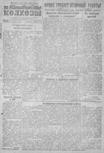 O U ^ U s 0 t i * П р о лет а р и и всех ст р а н, соединяйтесь. О р г а н Северного Р К В К П ( б ) и Райсовета д е п у т а т о в тр у д я щ и х с я Н о в о с и б и р с к о й области. ФРОНТ ТРЕБУЕТ ОТЛИЧНОЙ РАБОТЫ! Образцовой подготовкой к севу завоюем высокий у р о ж а й З а высокий .Н а в е с т и большевистский 12 ( 734 ) 24 марта 1944 г. пятница ( Цена 15 юп С вящ енный долг интеллигенции Р а д о с тн ы е два пережи вае т п а - , ш к о л а х , л еченны х ; ч р е ж д с н в я т , ш а родина. Героическая К р а с - на п р е д п р и я т и я х , в у ч р е ж д е н а п а я А р м и я продолжает' г н а т ь я х . -4 подлого в р а га все дальше и даль-1 ше на зап ад . Ежедневно о т ' КсемУ раВояу и в е с т п о ими н е м е ц к о - ф а ш и с т с к и х о к с у п а н - с т а Рей ше® у ч и тел ь н и цы — ордепон о с ц * т . Ш и м а п с к о й , которая проработала к а н и в е народного просаящ енил около 3 0 л е т и из п и х иолов т у в Северном районе. Несмотря па плохое состояния здоровья т. Ш и м а п с т о й , у нее в школе зам ечательный порядок, хорошо поставлена учеб но-кос пи т а т е л ь н а я работа, т . Ш и м а н с к а я принимае т а к т и в н о е учас тие в общественной работе* п о могает колхозу. Замечательно ра порядок с семенами 1 Св^им постановлением от 31 о с т а в л я т ь без хлеба к г д х о з н и к о в 1 ачпаря я 14 февраля J 9 4 4 г о - Остались сч и тан ны е д н и до тов освобождаются вее новые и н о в ы е г о р г д а и села. В о твет н а боевые у спехи фронтовиков т р у ж е н и к и тыла отвечают самоо т в е р ж е н н о й работой, всомн си лами и средствами помогают н а с т у п а ю щ е й К расной Армия греметь ПОДЛЫХ захват чиков . Сейчас перед сельским хозяй гтве м н а ш е го района с тоя т в ы со кие и поче тные задача. В н и ма ние всех т р у ж е н и к о в сельс кой местности пр и ко п ан о к усп еш н о м у р тзрешеи«ю задач, в ы т е к а ю щ и х из п о с т а н о в л е н *» -С о в н а р ко м а СССР <0 мерах по подъему се л ьс к ого х о зя йс тв а в Новосибирс к о й области» . Огромная работа проводится в пастоящее время п о подготовке к севу в колхозах р а й о н а , у к р е п л е н и ю и развитию общественного животноводства. Недавно з а к он ч и л и с ь сессии с е л ь с к и х советов, посвященные обращ ению дматрновцев о раз- ^ в е р т ы в а в я и соревнования се л ь с к и х советов. В успешном разреш е н и и э г я х бельшкх и п о ч е т н ы х зад ач большая роль принадле ж и т н аш ей и н т е л л и ге н ц и и . В нашем районе имеется н е мало п л а м е н н ы х па триотов и з числа и н т е л л и г е н ц и и , которые ! ®се силы и средства отдают для ¡ с к а з а н и я помощи фронту, номе г а ю т к о л х о з а м , МГС успешно р ешить стоящие перед иная вадачи, у с п е ш н о работают в Подготовка населения к ПЗХО В ряде кол л е к ти вов нашего района у с п е ш н о вдет работа по п о д го т о в к е населения к ИВХО. Со всей серьезпостьго отнеслись к э той большой и важной рабо те д и р е к т о р Северной средней школы Солуянов, директор к о н торы « З а г о т ж а в с ы р ь е » Азако в, ф з а в . райздравом Саготина, н ач а - да рийисПолком и райком В К П ( б ) обязали руководителей колхозов и пьзднее 15 марта донести семена до го сударс твенных ко н - твцай. Многие колхозы с честью вы полнили это ука зание . Так и е колхозы к а к « У д а р н и к » , « С о й съезд Советов», «Бое ви к » , «Борьба», « К р а с н ы й м а я к » , < 7 ой съезд Советов», ем. Тельмана, нм. Карла М а р к с а , «Красный ва сюганец» и д р у ги е довели свои семена до государственных к о н д и ц и й . Руководители э т и х к о л хозов в праве з а я в и т ь , 