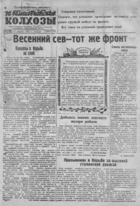 И р в л с т р а н , 9 0 » 1 и н я й т е с к \ м и н й й Ф З"**:»« я я р ф Р Р Щ Я г * * * ' ^ 0 В Ш Ш ^. к * * т Ш т Я и т е Ш , К О Л Х О З Ы - -V „ Орган С е в е р н о г о РК ВКП(б) и Р а й с о в е т а д е пу тато в т р у д я щ и х с я Новосибирской области; 17(739) 27 апреля 1944 г. четверг Цена 1 5 к о в . Товарищи колхозники! Помните, что успешное п р о в е д ен и е в е с е н н е ю сева равно крупной п о б е д е на ф р о н т е . Все силы на у сп еш н о е п р о в е д ен и е сева! V) Весенний с е в - т о т ж е фронт ч Клохозыв борьбе за хлеб () Фроп? а ты л его одно недели зе н а ш е г о парода, н а п р а в л е н ' н о е к одной ц е л а — к разгрому н е м е ц к и фашистов, к ач ищенвю н а ш е ! с в я щ е н н о ! Рода н и ет н е н а в и с т н ы х врагов . Работ на к в советског о ты л а не отстают в не о т с т а н у т от у с п е ш н ы х н а с т у п л е н а ! г е р о а ч е с к о ! Красн ой А р м и и . 3 Одним и з серьезных р ы чагов N п ом ощ и фронту е с ть борьба ты- ла за х . н б , поэтому почетнав 4 задача возложена в игом году на к о л х о з ы , которые обяза ны 0 д а т ь Роднне миллионы пудов ¡.’¿ х л е б а . Г ч ’ ’ ол хозн вкн Северного района пиинли э т у з а д а ч у и с в о е ! се1 иеотве рженной работой в проведении вееенавго се ва 1 9 ( 4 года, подтверждаю т это работой в первые дни п о ле вы х работ. ? & основе со ци али с ти ч е ско го с о ревновании в р е з ул ьт а те борьбы ва первенство,ряд сельсоветов в колхозов по вы п олнению задании за четвертуй) п н т а д н е в к у а п р е л я м е с я ц а , в ы ш в нобедателямн и етали в первые ряды передовых сельсоветов в колхозов н аш е го района. ____ Мало К а р а г а е в с к и й сельсовет, Пос тановлен ием Северного во по л ком а райсовета депутатов т р у д я щ н х е я ■ р ай ком а В К П ( б ) от 21 а п р ел я с . г . о т м е ч е н а с а м оотверженная работа э т а х сельсоветов я колхозов я п р и зн а н ы победителями в социалисти ческом еоревнованшн на весенне-посевн ы х работах по итогам четверт о ! п и т и д н е в с и апрели месяца : М а л о - К а р а г а е в с к я ! сельсовет и колхоз в м е в я Твм еш ен ко , во т о р ы м в р у ч е н ы переходящве К р а с н ы е З н а м е н а в кроме этого нм о т п ущ е н о п ром това ров на е у м м у 3 . 0 0 0 рубли ! ,д ля продажа передовикам ве сеннего се ва . Н о веобходнмо отм о та ть , что у сп е х передовых лю де! в борьбе за С т а л и н с к и ! у р о ж а ! тормозлт т а к и е сельсоветы к а к : Г р а ж д а н ц о в а к н ! еельвовот, п р е д седате ль то в. Алферов, с е к р е т а р ь К о м с о м о л ь с к е ! о р г а н и за ц и я т .Три-' г о р ь е в а ,в ы п о л н и л а л а я на 7 9 п р оц . В е р х - К р а с и в р с к в й аельаовот, председатель тов. Ф у ф а ч о в, с е к р е т и т ь Комсомольске! о р г а н - з а щ и т . С у х и х , вы п о л н и л . п л а н на 7 7 , 9 п р оц . П р и б е л в н с к м ! сельсовет, пред- водитель то в . Г р н г о р ь о в , председат ель т . А н т в п в н , с е к р е т а р ь с е к р е т а р ь комсомольской о р г а н я - ком еомольской о р г а н и за ц и и т . Ж у - за цн н т Але к с е е в а , выполнил равлева ,в ыполнял задание рай кома п л а н на 7 1 , 4 проц. ' ВК П ( б ) в р ай и сп о л ко ма за чет-1 Н о в е - Т р о н ц к в ! сельеевет, пред- вертую п я т и д н е в к у па 4 1 8 , 7 проц. седате ль т . Б у х т я я р о а , О с та н и н С к я й се льсовет, пред- с е к р е т а р ь комсомольской о р г а - • е д а т е л ь т . П ь я н к о в , ннзацнв т . Куля е в а , в ы п о лн я л с е к р е т а р ь п а р т и й н о й о рганиза - план на 2 9 , 5 проц. ц а в т . К и р и л о в а , с е к р е т а р ь ' Ч е б а к о в с к в ! с е и ь с о в е т в ы п о л - комсомольской о р г а н и за ц и и т . Б р е й д а к , выполнил план в а 3 8 8 проц. Б в & з в н с 