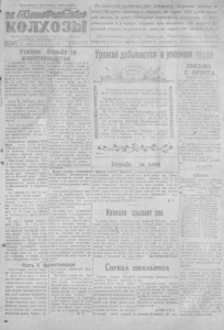 П р о л е т а р и и всех с т р а н , ’ свединяшпесь\ О р г а н С е в е р н о г о РК ВКП (б) и Р а й с о в е т а д е п у т а т о в т р у д я щ и х с я Н о в о с и б и р с к о й о б л а с т и . 22( 744 ) 11 мая 1944 Г. четЙЁрг / Цена 1 f> кии j ----- — ■ —* " I III — nw, ■ I Усилим борьбу за ЖИВОТНОВОДСТВО По сельскому хозяйству ^мы обязуемся получить урож аи н? менее 100 п у д о в зерновых с гектара, не менее 1 0 0 0 п у д о в сахар ной свеклы, не менее 1200 п у д о в ' картофеля, сохранить все п о г о ■ ловье скота и в первую очередь весь молодняк, от каждой ф у ражной к ор овы получать за лето не менее 9 0 0 литров молока, (Из первомайского р а ю р т А В ерховному Главнокомандующему Маршалу j С о в е т с к о г о С о ю з а товарищу Сталину от трудящихся Н о е о с и б и р с ко ц области) Урожаи добываете!! а упорном i f д о Постановление С П Б С С С Р от э февраля 19 44 г . »По под'еыу мв сбольшим удовлетворением, на' ждый аз нас глубоко прачувст«!- М1 , что пути , которые намаче- в и вашему району, к а к району жиаотаоаодчвекону, должны *ыпятвдетк*» Иволян i Бельнесоаа дснуетжди ла*. МТФ па деж 5 •ежьскот'б хозяйета» Новосибир- телят , прсдавдатель колхоза «ц ft 1 c t o l о б л а с т и првн ято с е и в р я н а - 'У е з д Сметой» — Г р я е м м м в ж] s i s , МТФ Южкаа допустили па д е к 4 лошадей i 6 голо* к р у п ного рогатого вш-*1 за*. МТФ колхоза имени Челюскинце»— j Петрова донустилй падеж 3-х ло- •ест« аго а разряд передовых ; шад»1,4-х m o r крупного рогато а ж а в о т н о в о д ч е с к и районов облас- тж. Бврьба за у а е н ч е н ю животновод«»» за его продукт«ваасть стала оспоаной задачей всех ра- ботнаков наш е го района ж особенно председателей сельсоветов, колхозов ж работнике» жжвотво- водства. Там, где »та жетжна понята в коххозвжкж мобилизованы на э т у почвтпую йарьбу, мва. ааджм, что там животноводство изо дни в день у л у ч ш а е т с я . Ру маоджте лж колхозе* ж МТФ т а к и к а к « Г и г а н т » Б -П у л ик ов ск о г о сельсовета, «манн Калинина В Красноярского сельаовета, «Красный октябрь » , «менж К р у п ск ой , «Веселый труд» — Чаба ховс кого сельсовета, «Борьба за пи п л е т к у » Ново-Трожцко- го сельсовета^' «Намять Ч аиав- аа» Бжазжвского сельсовета, «Северная заря» Остжцкого сельсовета I «Красный маяк» Патю- к а в в м к о г о сельсовета дойвлись а&мачательных успехов в вопросе айарожзаодстаа ж сохранения ската. За 1 квартал с . г , о п к не имею т я г о д н о г о случая падежа и увеличили поголовье ск о т а ,п о состоянию с наличием u a l -o o я а - и р я 1 9 4 4 года па 3 0 3 головы в там числе: по крупному рогатому скоту па 27 годав, по свжньям на 2 0 голов, а по овцам, па 25 6 голов. Н а ряду с так1ми показателями есть п т а к и е р у к о в о д и т е л и , которые непоняли серьезиости этого дела, превде всего сами, а по- ятому и не еумслж мобилизовать колхозникои на борьбу за еоцж алистя ческое животноводство, ^напрамер, «Верный го скота ж 9 голе» озо ц , председатель колхоз» «Красногвардее ц » — Андреев ы зав. М Т Ф — Г р и горьева допусти ли падеж 2 л о шадей 3 голов к р у а н о г о рогатого «кота и 2 овец, председатель колхоза « Н о в ы ! свйаряк» — У ш ков доп усти л ае.д«ж 3-х лошадей, 4-х голов кру пного рогатого скота я (5 овец, в колхозе «Северный. Кустарь »пало 3 лошадж, я 15^ о«ец, а колхозе «Единый п у т ы j пало 6 лошадей, в колхозе j*м. ¡ Тельман» па ха 1 лошадь, а председатель этого колхоза т. Бахарев вместо увеличения воспроизводства скот» стал на п у т ь явного разба»>риипяя , он взял с фермы колхозную карову, а колхоз