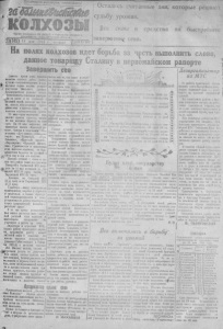 Пролетарии ш х стран, соединяйтесь] - г — О с т а л а с ь считанные дни, которые решают 4 ’ К | С у д ь б у у р о ж а ^ ■ » V Vi J C O 2 Ü J M Все силы и средства на быстрейшее завершение сева^ Орган Северного РК ВКП(б) и Райсовета депутат _трудящихся Новосибирской области. 23 (745 ) 18 мая 1944 г. четвер г Н а п о л я х колхозов идет борьба за ч^сть вы по л н и ть сл о в о, данное товарищу Стали н у в первомайском рапорте Завершить сев С ж а т ы е ср о к « с е м , высокое вачастао полевых работ, подбор л у ч ш и х п р едш ес твенников и пра- ® « «л ь в а я норма высева реш аю т »' п о л у т е н и о ! « л ь н о г о у р о ж а я . Б л а г о п р и я т н ы е условия весны, >*■. беспеченность семенным материал о м па месте и то состоян ие с гя гл о и ой силой, ко тор ую мы имеем, вполне обеспечивают прове- денве сева в « ж а т ы е ср о ке , па высоком агр о техничес ком уровне. 2 0 м а я — ср о к о к о н ч а н и я с«ва р а н н и х я р овы х к у л ь т у р , однако не все к о л х * з ы борются за этот с р о к . На 16 мая з а к он ч и л сев полностью ко лхоз « К р а с н ы й фак е л » , бл и зк а к о к о н ч а н и ю сева и о л и з ы « Л у ч св е т а » , «Северпая в а р я » , им. Б уд ан н о го , « П у т ь С тал и н а » , « К р а с н ы й н ац м ен » , « В е р х т а р к а » , « К р а с н ы й Васюга- н ец » . Руко»од«тели и колхозники а т и х колхозов подлинно, по больш е в и с т с к и б о рю т с я зи ур о х а й в л ц 1 9 4 4 году и они его получат. * Позорно о тс таю т с севом и т я - ■ у т весь район пааад колхозы зоны Северной и Т ар тасской ЫТС.кото- * рые на 16 мая всп а хал и но Се- иирной МТС 3 3 пр о ц . п л а н а , по Т ар тасс к ой МТС 41 п роц . П осеял и: по Северной МТС 21,о проц. ■ по Т а р т а с с к о й МТС 2 7 , 3 пр оц . Т р а к т о р ы — в в и д у н е о п ы т н о с ти , т р а и т о р и с т о в , перебоя с горючим и смазочным, а т а к ж е п р с с т у п ной н е р а зв о р о т л и в о м « и самоу с т р а н е н и я от работы т р а к т о р во го п а р к а председателей колхо зов— р а б о т аю т плохо. . В то асе время дополнитель н а я ж и в а я т я г л о в а я сила — к р у п н ы й р о га т ы й с к о т колхозов и кол хо зни к ов совершенно по у ч а с т в у ю т в работе нд севе. Д и р е к то р а и а гро н ом ы МТС, сорвав р або т у т р а к т о р н о г о п а р к а , * • о р га н и з у ю т работу живой тягловой с и лы в к о л х о з а х . Во м н о ги х колхозах и г н о р и р у ю т с я у к а з а н и я Райиспол кома я Р а й ф , и а ВКГ1(б) о качество полевых 1 бот. М е л к а я п а х о т а , па хо та с, ^ • г р е х а м и д о п у с к по р а с п а х а н * НЫ1 следов, п л о хая зад елка к о н цов в с п а ш к и , безконтрольность се ва,недосев и пересев ссмяц п а г о к - 1 а Р» посев по боронованной вспаш к е и п л о х а я зад елка семян при посеве в р у ч н у ю , большие разры вы м ежд у песевом в р у ч н у ю и м д е л к е й семян , неиспользование ■ м ею щ и л с я в колхо зах сеялок тоесть все то, что ведет к р е з к о му с н и ж е н и ю у р ож ая д о п у с к а е т с я во м н о г и х колхозах р а й о н а ! па весеинем севе. • • П е т подлинно большевистской борьбы за сроки а ка че с тво сева со стороны агрономов я к о л х о з н ы х и н с п е к т о р о в , по _ к а ч е с т в у , которым п а р т и е й и п р а в и т е л ь с т вом п ред с тавл ены большее орана. Отсут ствие надлежащего ко н тро л я за расходованием семенного зерна папосев, беспечность р у к о в о дителей колхозов, привели в ряде колхозов к х ищ ен ию семенного м а т е р и а л а . У х о д я т л у ч ш и е ср о ки ерва Посев р а н н и х зерновых мы о б я ' з&ны з а к о н ч и т ь в ближайшие далН а п р я ж е н и е Ц весеннем севе должцо соответ