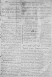 0 u m c A U O W заверш ению . ^ Н р о л e m a p n и ' в се х с т р а н , coed о О р г а н С е в е р н о г о - Р К В К П ( б ) и Р а й с о в е т : ¡ Д е п у т а т о в т р у д я щ и х с я Н о в о с и б и р с к о й о 6 л з с » ; г • 24(746) . , 2 6 м а я 1 9 4 4 г . п я т Т л щ а 1 ¡3 :Л (еяа i ; i к о п —1.■. •*- -■■“^ —*M»HNn>цшмл г _• —------ . г-** - — ------ г ^ Д Й Т С Я фрОНТОВз се в а всех i Я Нет сейчас более важноя, белее серь^энбизадачи' как завершение весеннего * ёва. Закончить сев всех культур в течение фронто вой декады,—эгНО значит залЬж ’ ь прочный фундамент высокого ганского зрожая, он огромную ощь Кряст \ Армии. № щ Ф р о н т о в а я декада-исгнытание нашей бо еспо с о б н о с т и Н а колхозных н о ля х рай он а своего колхоза. t j в для в с е ю в д е т борьба ва п о л у ч е н и е c u c o - ¡ в а ш е г о р а б о н й к о г о стали н ско г о у р о ж а я , з а Не должно ( ^ ь в Северном ч е с т ь о п р а в д а ть свое слово, дан- р аботе в и о д п о ф колх озника,- ни Hde великому С т а л и н у в перво- одного колхоза, $m>pue бы оста- ма1ском рапорте, в к о т о р о м се - л в с ь в в н о в п и н в * теред Р од *но 1 , в е ря не обязались п о л у ч и т ь в перед фронтом • недоп олучении этом году стоп удовый урожай о б и л ь н о г о ур о з к» и с каждого p o m p a . j Г е р о и ч е с к а я 1 ф а с а а я Ар'мия В этой борьбе в ы д в и ну л а сь с в о - 1своей г р у д ы о п » - м ы з а е т ж е л т ей са моотв ерженной работой П о-^ зобетонпыо у к р а а е в и я , преодо- \ р е д о в ы е люди и колхозы нашего левая ш к в а л ь в ч т ' о г о н ь против- райов» . Получили 8вавие з в а т - п и к а , у н и ч т о г а я в р а г а , с н ы х п а х а р е й района: . Зубков к а ж д ы м час Г - п р н б л и а и е т И в а н П ет рэвич к о л х о з — «Красный то рж ес тво пр&в ы, за которое ф а к е л » , М а к аров П е т р М ат ве- б ь е т с я наш на |ф „ . ; о в и ч - - колхоз « К р а с ны й ф а к е л » , ! Сов етский тчя| .-.-о всем помо- М а л я р е и и ч В л а д и м и р К и р и л ю в а ч — i г а е т Красной :, :(ыии и т р у д - Ф к о л х о з имени Ворош ило в», Б а ш - ! посте1Г но боят: в э т о м н а- * к о в К о н с т а н т н а Федорович— кол- ш а с и л а Полях, ¡езим устали { ■■* ' Á & , -ft л г.'} Сею т сверх плана .. i ■ * ?1 хоз « К р а с на я з а р я » , Ч е к у л а е в Дм и тр и й И в а н о в и ч колхоз «Со ве р на я заря» и др посевной п л а н н с е ю т с в е р х п Галана к о л ю з ы « К р а с н ы й фа- ч ^ м > , « П у т ь С т а л и н а » , «К р а с ная з а р я » ,и м е н и Б уд ен н ого и др. Но в ы я в л е ны и т а к и е колхозы, С 2 5 . м,а«.,.пёЙ _ и № и . . Дятел ф р о а т о в з Д д е к а д а по з а - В ы п о л н и л я в е р ш е н и ю весеннег о сева по всем к у л ь т у р а * . - Это боевая задача, пос та в л ен ная перед в а ш и м и к о л х о з н и к а м и , не вы п о л я е н и о которой п о д о рвет получение высоко го у р о ж а я , & \ Я * П е р е д о в и к о в в е с е н н е г о с е в а ^$44 го да. и с о ц и а л и с т и ч е с к о г о ж и в о т к с . з о д с т в а 3 0 Б у з ю р г и н а А н н а Ф е д о р о в н а . - 4 ч л е п к о л* « К р а с н а я звезда», н а паре б ы ч к о в п е « лезла 1 7 0 , л ц е н т н е р о в е о ы яа , которыми -эасщедо 1 9 2 Д » н т » р а . ■& ' 3 1 . С а в о с т е е в а С т е г ь а ц Б д к . , - р . ц .-.ьь колх о- ' V за имени К а р ла М ар к са , в с п » х * Л ш » 3 0 « [ей 3 0 г а . ♦ при норме 0 , 9 » ги в день. с5-* С т о л е т о в Я к о в Ф е д о р о в и ч . —<*)0— ле тний . ¿ и т-1- лмзни Карла , Маркса, ¿организовал 1 » : теров. * р е з у л ь т и те ? 5 0 коро* ^ { , ( п л г . п б у i ежедчОз^о ь . , * - , n a » i 3Ö8 л # : р * молена ?3. С а а а н о в а Ф е кла i p e f l O p o s ; а , — долр* ол гоза » i l ö i t r i ж и з н ь » , о т 4 коров « б ^ д н е в в о н а - * ч в ' I к х д з в е а е т 4 6 л к т р о » молоха . ’ | Щ & г3 4 . Г о л у б е з И в а н Н и к о л а е в и ч 