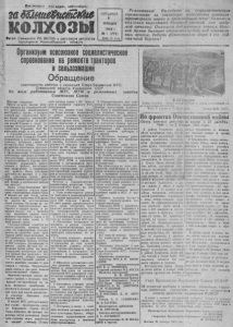 Ц р вл вт а р и и всех тиран, еввёинлЬЬвлы заШте^тснИ/е К О Л Х О З Ы • р г а н С е ве рн о го PH В К П ( б ) и райсовет» депутатов трудящихся Н ово сиби р с кой области Ремонтники! Вы х о д ит е на социалистическое соревнование за отличную подготовку машинно- тракторного парка к предстоящей весне! Поможем колхозам вырастить богатый урожай для л ю б и мой отчизны! Поможем доблестным воинам К р а с ной Армии быстрее одержать победу над ненавистным врагом, добить фашистского зверя в его с о б ственной берлоге ! П Я Т Н И Ц А Я Н В 5 А Р Я 1945 г. № 1 (77 7 ) Цена 15 ко и. V $ 41 Ко Организуем весосюзное социалистическое соревнование н ремонте тракторов и сельхозмашин Обращение тра ктор и с тов , рабочих и с л у ж а щ и х С т а р о -Б е ш е в с к о й МТС , Сталинской области, У к р а и н с к о й С С Р ■ всем работникам М Т С , М Т М и ремонтных заводов Советского С о ю з а Дор огие товарищи! к ч и а В с м ие н в с а о т р л е о н д у с о ю о м щ в м и с ые е м , пе н р н е е а з жш а и б и в ы м а в е а м е в м е с л е ы йи е дан/ Пришло время, о котором нм шл а о е и я в ч с т т А в а с а р л к ш им и и е х м й я ы за : в Р х ы о в д ш г а и е т и р н ч б о ыи л и к а ч о и е в н ск е в а м и е я е з д ц е п к т К р о р е -ф д у а а с е с п е ш н е е наступательные бои на т ш е и р С с р т и о с т г к о р о р о г и м о и н » о в й Г е е р р р я а м д а в о н с и е т и г ь о , » л б о ь м г е ыо т ве ф у . а с лышали слова товарище Сталина, о т б ь р ян ащ ст е в н у н : ые » „К к ра к с о н л а х я озн »А омрму ия кре н с а четвергом г о д у войны, благода- с ¡V т ва а , аб н о е тамисп к ыол ты хо в з а н е о т го не к д р о е с с т т а ь т я к н а в продо вол ьстви и . Колхозники и колхозницы сн абж аю т рабочих и интеллигенцию продовольствием, а пе п ч р и о в м аюы тшлен н н о о р с м т а ь ль с н ы у р ю ьем р , а о б б о е т с у з щ а и во х д в о о в ор и уж ф е а н б и р е ик, и и с з н г а о р т я о ж в е л н я ию е для фронта. Н а ш е колхозное н к ыре м стья с н о с з т н в а о ни а е к м тив с н в о оег и о с до п л о г л а ни о е й ре Аи рмРо и д и ин в ойдо с с о т д и е ж й е с н т и в и уе п т о К б р ед а ы с над в р а г о м * . Маша С т а р о -Б е ш е в с к а я МТС щне и д н а у вн о о св о о т б м о е ж т д и е л н а ия п р ер од в н у ою го го к д р о ая в. н н В и о я ие н р в е в з мы я ц е л е с в я же ко з л а д л н е и к в т о и п с в о с с Мт л а е н Г о С в и д л з р е г н у н иж а е Своей станции . Несмотря на от т п су е а т р сн с с т к ы в и х н х е ч и а с б о т л с я а т х г р , о у у ю с м т ы р н о у е жв н д н у п ы р х о нш м л з о а а м с году закончили ремонт всего машинно-тракторного парка к 10 ф е вр а л я—на один месяц и 10 дней раньше срок а . дшч т и о е и с р Г л м т н о о в , с с ы о ь у ч х д т р н о а р а е р а мв с б п т п о о в о н р т е с а т л н к а н е н т а д и а м с я к п и т е р в : и в и к з ы о и п н п м л а о л а и п л н а с о н с и д е х я н т т о в р р к е а н о а р к а к л р 1 а а 7 ю 0 ч 5 н е 5 п а г 5 р о у о г с ц е л е к с о н в т в т ыа н о р ы ш в о , й е в с т р 2 с р е 0 э а д к к т н о т о я н о н я о р и м . в л с ы П о е р о н ст а о а б в о о г и т о тдельным видам работ мы имеем с н л и е х д я у р ю о щвыи е х б п ыо л ка п за р т о е в л е и д : ен се в в п р я а т н ь рабочих дией, уборка зерновых — в 10 дней. Средний урожай в т н н а е ш р и о х в к с ол г х е о к з т а а х ра с . ост Н ав ат и у л ро 11 пл ц а е т н ы сдано почти в два раза больше предусмотренной планом. с о З к а о л г о о ж у е р н о а ж а п я роч в н б ая у ду о щ сн е о м ва го в д ы у : р о а з м им , ы п й од с н е я в ты п м роиз т в р е а д к е т н ора п м о и , па и з к а и к й он с ч р е о н к в дл л я уч н ш а 