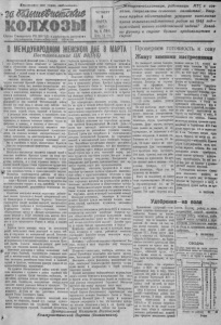 Ш рл ят ари и мыс т р л н , олеёиняитмь! Орган Северного РК ВКП(б) и райсовета депутат® в _____ трудящихся Новосибирской области ЧЕТВЕРГ 8 , МАРТА 1 9 4 5 г . № 8 (784) Цена 1ё son. )кенщины~колхозницы , работницы М Т С и сов х о з о в , специалисты сельского х о з я й ст в а ! У п о р ным трудом обеспечивайте у с п еш н о е выполнение плана с ел ь ск ох озя й ст в е нны х р а б от на 1945 г о д — важнейшей военно -хозяйственной з а д а ч и ! Д а в а й те фронту и стране больше продовольствия и сы р ья ! О МЕЖДУНАРОДНОМ ЖЕНСНОМ ДНЕ 8 МАРТА П о ст а н о в л ен и е Ц К В К П ( б ) Международна Жепскжй День —8 парта \ .ну Советскою Союза отмечают жен в настоящем году в обстановке новых великих побед Красной Армия. Советские войска изгнал! немецких нора богителей с нашей земли н ныне громят врага на гяторин Германии. юветскне женщины своим самоотверженным т т р о у р д и о ч м еск п и о х мог п а о ю б т ед Кр н а а с д но н й ем А е р ц м к и о и ф в аш з и ав ст о с е к ва и н м и и и в и ах с I д н а и т ц ч ы ика в ми к . ол С х л о а з в н н и ы цы е , д и о н че ж р е и не н р а ы шей и Р те о х д н и и ны ки — , раб п о г т р о- номы и зоотехники, работники наук п искусства, врачи и учительницы, работницы о р т е д ж а д ю е т ни в й— се в сво д и ни сил в ы ели и ко з й нани О я теч д е е с л тв с у е о н п в н о е о б т й е с д к ы их вой н у а н ч д ы с в т р в а е гом св . ои С х овет м с у к ж ие ей, же о н тц щ о и в н , ы с , ын за о м ве е й нив и на бр п а р т о ь и е з в в , од п а деть з п д р о о к ф аз е а с л си а ям св и о , ю г к о о т т о о в р н ы ос е ть и н зд с а п в е н с о обно сч ст и ь та о л в и л с а ь мужскими, и ныпосят основную тяжесть труда на фабриках и заводах, в колхозах и совхозах. Советские женщины-работницы являются веля- ( Г 'ой силой нашей социалистической т н я о н ст ы и х . Н п а ром во ы е с н л н а ы х, х п з а ав ж од ел а е х з , но э д л о е р к ож тр н о о с м та п н и р ц о и м я ы р х е ш ,н ч л н е е о ф м н тра ы н т с ь по и рте гер ж о е й а с щ тв и о ны в и тр д у е д в е у , ш о к б и есп п еч р и оя в в а л я яют Врас д н о у б ю ,/Мию все возраставшим количеством вооружения и боеприпасов. Женщины-колхозницы являются главной силой в с т е я л ж ь е ск н о и м и х в о о з й я н й ы ств н е е . и К с р п а ы сн ты ая вае А т рми н я едо н ст а ат в к с а ем в п п р р о о д л хо и у з к о н н т и а ы ц х н ж п а е и ш н т е щ а й н и с и н т я р , к а о н л я ы хо .С в з в н о э и т и ц о м м п г о е о м р г о р о г о и а м ю че н т с а к с я н и а м з б т а ж р с а у л т д у ь о г м а <] м р и о к н л о т л и тыл продовольствием, а промышленность сырьем. Женщивы освобожденных районов от врага с каждым днем увеличивают помощь своей освобдои - 1 -вице—Красной Армии, беззаветно трудятся над т в в у о а р с т с н ч т и ы а к н х а о м в у л и ч е . р н е и ж е д м ен г и ор й о , до р в азр и уш с е е н л н , ы х х озн н й ем сг е в ц а ким и и к з у а л х ь о ны т х С С о т в в а о е л т и и с н н к о г и в р , е ад н ж а р е о н ш к щ е и д п н ш о ы д в с х т м у а б и т о а е м ев р о и й Б в е ы в р с р л т а я о с п р т а и и . ч л ' е и ск С и о д й в о е б т с л с у е к т с о т ! е государство славит женщин матерей, воспитавших своих сынво храбрыми и бесстрашными воинами. Учреждение звания «Мать —героиня», ордена «Материнская слава» и «Медали материнства» еще в н щ ы и и е ш н е ы в -м п д а о у т д х е н е р я и л п о р в е в о д с а С п н и С н т С о ы с Р т в и а п ю о Р т че о т ди п н н у о ю д е р и а р с о т л а л ю ю ь щ м бв а е и т е е к ри п з . о н Ж к а о н е л и н е ю и труду. Деснтки тысяч женщап взяли па воспитание д н м
