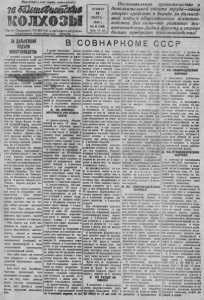 Шр ф л т л р и и в с ё » с ш р л н , с * ё $ и н л й т ё а > ! О р г а н С е в е р н о г о Р К В К П ( б ) и р а й с о а е т а д е п у т а т о в ______ т р у д ^ и х с я _ Н о в о с и б и р с к о й области ЧЕТВЕРГ 15 МАРТА 1 9 4 5 г . № 9 (785) Ц е н а 15 ко н . П о ст а н о в л е н и е правительства о д ополнит ел ьной оплате т р у д а — новое мощноз сред ст в о в борьбе за дальней ший подъем общественного животноводства. В с е силы— на развит и е жи- в о т н о в о д ст в а .Д а д и л ф р о н т у и стране больше п р о д у к ц и и ж ивотноводстваI ЗА ДАЬЛНЙЕШИЙ ПОДЪЕМ ЖИВОТНОВОДСТВА С ч у в с т в е н огр ом но й радости в с т р е п л и т р у ж е н и к и п олей в а шего рай он а п о с та н о в л ен и и п р а в и т е л ь с т в а , н а п р а в л е н н ы е н а дальнейшее у г р е п л е н н е колхозного х о з я й с т в а . Обсуждав э н п о р щ щ е д е я . кол х озни ки берут о б я з а т е Ш е в а работать ещ е л у ч ш е , хорош о * п о д г о то ви ться к в е с не, завоевать в ы со ки й урожай, добиться н ового подъема ж и в о т новодства. П о с т а н о в л е н и е п р а в и т е л ь с т в а о д о п о л ни т ел ь н о й о п л а т е т р у д а за п е р е в ы п о л н е н и е з а д а н и й по в ы р а щ и в а н и ю молодняка и со хр анению взрослого с к о т а — новое мощное с р е д с т в о в борьГе 8а всем е р н ы й подъем общ е ств ен но го жив о т но в о д с тв а . Многие колхозы ра й о н а им е ю т х о р о ш е е у с п е х и в разни п и ж ивот но водс тва . 6 колхозе ем . К а р л а М а р к с а от к а ж д о й ф ур аж н ой коровы получено ночти 1 3 5 0 л и т р о в ' молока, в колхозе « К р а с н а я звезда» , <7-й с ъ е зд Сов етов» добились хо р о ш е го п р и пл о д а ж е р е б я т , в к о л хозе « П у т ь С т а л и н а » з а 1 9 4 4 год поголовье л о ш а д е й у величи лось на 1 2 п р о ц е н т о в . О д н ако не везде т а к обстоит дело. С и г н а л ы , п о с т у п а ю щ и е с м е с т с в и д е т е л ь с т в у ю т о т о м , что в ряде колх озов о т в е т с т в е н ны й период в ж и з н и с к о т а — зимов ка — п р о х о д и т н е удовлетв орител ьно . Кое- где д о п у с т и л о б о л ьш о й перерасход корм ов в сейчас с к о т у у г р о ж а е т г о л о д о в к а . Т а к п олу чалось в ко л х о за х вы . Ч е л ю с к и н ц е в , в и . В а г а н о в и ч а и в а к о г о р ы х д р у г и х . В колх озе « В е р ны й п у т ь ; ( П а м я т ь К и р о в а » д о п у щ е н п а деж с к о т а . Необходимо п р и н я т ь р е ш и т е л ь ные м е р ы п о у с т р а н е н и ю э т и х недостатко в . Надо навести с т рогий порядок в расходовании кормов, у л у ч ш и т ь у ю д за с к о том. Се й ч а с про хо ди т м а с с о в ы й отел, о к о т . Н адо добиться п о л ного с о х р а н е н и я молодняка.Особое в н и м а н и е надо у д е л и т ъ случ ной к а м п а н и и , прове сти ее образцово. Пвдо п о д н я т ь всю м а с с у колх о з н и к о в на борьбу за новый подъем о б щ е с т в е н н о г о ж и в о т н о водства, довести до сознан ия всех к о л х о зни к о в т е огромные м а т е р и а л ь н ы е п о о щ р е н и я , которые п р е д у см о т р е н ы в новом п о с та н о в л ен и и п р а в и т е л ь с т в а о д о п о л н и т е л ь н о й о п ла те . Н а ш район име ет все у с л о в и я быть п е р е д о в ы м в области по р а з в и т и ю общественно го ж и в о т н о в о д с т в а . Дело ч е с т и всех п а р т и й н ы х , со в е т с к и х о р г а н и з а ц и й , в с е х к олх озников у н о т р е б и ь все с и лы для т о г о , чтобы добиться нового п о д ъ е м а общ е ств енно го с к о т а , д а т ь ф р о н т у и е т р а н е больше п р о д у к ц и и ж и в о т н о в о д ст в а , В С О В Н А Р К О М Е С С С Р 6 ц е л я х п о в ы ш е н и я м а т е р и ал ь н о й з а и н т е р е в о в а н в о с м кои х о з н и к о н , р а б о т а ю щ и х па ж и в о т н ово