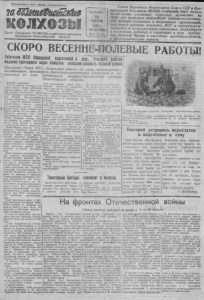 Пролетарии всех стран, соединяйтесь! за Ш т Ф Ш Ш и е К О Л Х О З Орган Северного РК ВКП(б) и райсовета депутатов трудящихся Новосибирской области ЧЕТВЕРГ 12 АПРЕЛЯ 1945 г. № 12 (7 8 8 / Ц е в а 15 I Совет Н а р о д н ы х К ом и сса р о в С о ю з а С С Р и Ц е н тральный ¡комитет В К П ( б ) с ч ит а ю т , что выпол• Чалк* пл1на р аз вит и я с ельского хозя й ст ва на и 4 р гос явля ет ся важнейшей во енно -хозяйст вен ной задачей с о в е т с к и х и п а р т и й н ы х организаций, земельны х ор га н ов , к о л х о з о в , М Т С и с о в х о з о в ,к о м мунистов и к ом с ом о л ь ц е в , агро ном ов , к о л х о з н и к о в и к о л х о з н о * р а б о ч и х и с л уж а щ и х в деле с н а б ж е ния Красной А р м и и и населения продовольст ви ем , а промышленности сырьем. СК О Р О ВЕСЕННЕ-ПОЛЕВЫЕ РАБОТЫ! Íу ' .1» Работники МТС! Образцовой подготовкой к сев/, отличной работой машинно-тракторного парна помогите колхозам завоевать высокий урожай ^кот^т'пчрпп^°°°Г^ ^ У пинского района, ко всем,_ трактористам, К™ Г ераМ' бРигад1Рам> директорам,инженерам, а?рано. »ханикам , ко всем — ............. - г ' работникам машинно-тракторных новосибирской области нам и ме- станций V - » * ....... - — 7. Лопгтткга средней у р о ж а й - ! иын 1 лавноком ' п д у ю щ и й , наш Д а з д р а в с т в у е т nauia Ро д и н а ! Д а з д р а в с г в - е т н аша добл е с т - в ом вел икого п о л н о в о д н а н я ш р й I ____ . '• . . . и » ™ . ; . ; - и « . . щ п и , па> эпо хи М а р ш а л а С о в е т с к о г о С о - 1 т Г ! 3®РН0| Ь,Х к о л о со аы х . к у л ь - любимый И о с и ф В н с с а р и о н о в н ю з а И о с и ф а ТУР с О б д а й площ ади 2 1 .0 8 0 г с к - С т а л и н ! юда И о с и ф а В и с с а р и о н о в и ч а н в С м е ы т и н а е н л с о о и у й ю н с п а з в н е о о х и й д и к н е а ы , р н м ж а и и и в ф а г р в р е м о т о н е м т с н т а з т е х а м О е с т ч л е а н о ч т а г е е ш о л с в и т ь о ф а ш и с т с к о г о з в е р я . Бл и зо к день 'н аш ей п о б ед ы . Н о мы знаем , что победа не п р и х о д и т с а м а . О н а з а в о е в ы в а е т с я в уп о р н ом т ру д е Чтобы у с к о р и т ь п о б е д у , надо дать ф р о н т у и с т р а н е бо л ь ш е х л е б а , м я с а , м о лока и д р у г и х с е л ь с к о х о з я й с т в е н н ы х п р о д у к т о в ющН е а й ш а но о б л с е а с л т ь ь с к я о в м л у я е т х с о я з я й о с т т с в т а у . д В а р 1 с 9 т 4 в 4 у году мн м о ы го н х е л д е о б д а а . л и З а г д о а с ч у у >«од*ема с е л ь с к о г о хозяй ства в •вшей о б л а с т и д о л ж н ы р еш и т ь в ч т п е о е н р р и н в я ы ую е с в т ы о а ч с н е о ц р к и е о и д г , о ь и у м р о а о ш с жн и о а н я в н у о п т н о р а л а д к у о заложить в п е р и о д в е с е н н е го с е в а . таро в н е менее 10 ц ен тн еро в с г е к т а р а . 8 ба 9 й . . н П У 3 л б 2 а р 0 н а т г з ь е я к б т н л а а е р в о 1 о 5 в й , ф в у б с т е п о з а в ш ыпо к й т и ер 8 к ь 5 о . 0 м 0 г е к т а р о в выполнить не позднее 15 о к т я б р я . 10. П е р е й т и на к р у г л о г о д о в о й к д р о а ем г т о ь он у г т р х а о т ф д р и а а . к к т Д о и о р б о п и в р т , а ь в с и с я т л р а т о о г т г о е о х , с н ч о и т б о ч л б е ю ы с 25 п р о ц т р а к т о р о в после о к о н - * С м е р т ь н ечеш о гм з а х в а т ч и к а м ! Д и р е к т о р Н о в о й М Т С М . Ф Е - О Л И Т О ь . С ци е и к С р т Г е а т О р а шР р Б ь и Ан Ч п Е ар В а т г А р и о й нМн о о . м й В . о р Б г а У н С и Ы з а Г И Н П . П ! С т а р ш и й механ ик С О Р О К О И . М . М е х а н и к и : В А Р А Н О В А . И . Т И М О Н О В Г . М . . К А Л И Н И Н ’ А . М . А С Т А П О В Н . I I . З а в е д у ю щ и й м а с т е р с к о й М И - " S r i ïïîïï.!!£!7" “ тетлхн г. и, ляхоу ян с а и д и ь б и у н М е Т т С реб в о в и а с л п и ра б в ыном о с с е о н с н т е о - з и м н е г о р ем о н т а . ни Т к о и в , а и р н и 