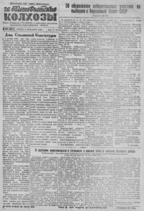 * . Р * ^ 1ПаР т1 с т р а н , с§е9иняшпееи\ т Ш еш Ш Ш ^ 1 0 КОЛХОЗЫ Ор ган С е в е р н о г о Р К В К П ( б ) и райсовета д епутатов трудящихся Новосибирской области t o o Об образовании избирательных участков по выборам в Верховный Совет СССР Решение А'“ 373 исполнительного комитета Северного районного Совета депутатов т р у д ящ и х с я от 4 декабря 1945 г. На основании ст. с т . 2 7 , 2Ô, i ш к о л ы ) , о б ъ е д и н я ю ; ни т с ^ . и т о - 20 и 3 0 « П ол ож ения о выборах в | рию с. M a .w - K a p a i д е в к а , д. День Сталинской Конституции л, 5 декабря 1 9 3 6 г о д а — Чрез « ы ч а й н ы й 8 съезд Советов п р и - п я д основцой закон Советского го с у д а р с т в а— К о н с т и т у ц и ю , вдохновителем ■ творцом которой я в ля ется т о в а р и щ Сталин . С т а л и н с к а я К о н с т и т у ц и я о т к р ы л а новую п р е к р а с н у ю с т р а ницу в ж в з н и Советско го го су дарства. Оаа отобразила огромные и з м е н е н и я , п р о и с ш е д ш и е в ж н з нв с о в е т с к о г о п а р о д а . Она з а к о нодательно п од тверд ил а , что в СССР победпл с о ци ал и зм , л и к в и дированы э к с п л о а т а т о р г к в е кл а с сы , обеспечено равноправие всех г р а ж д а н — неза ви сим о о т пола в национальности. В н аш е й с тране вся власть п р и н а д л е ж и т т р у д я щ и м с я города I деревни в лице Советов депу - *>*ток т р у д я щ и х с я . Оаи я в л я ю т - '»'я п о дл и н ны м и о р га н а м и народовл ас ти я , о р га н и з а т о р а м и творческой а к т и в н о с т и народных масс. Советская вл ас ть к р е п к и м и у з а ми н ер а зр ы в н о с в я з а н а с нар одом. Около п о л у тор а миллионов с о в е т с к и х л ю д е й— д е п у та то в Сойо то в— непосредственно у ч а с т в ую т в у п р а в л е н и и го суд ар с тво м . Мвллиовы с о в е т с к и х а к т и в и с т о к п о мо гаю т Советам в их го с у д а р с т венной работе. В с т р а н е у с т а новилось прочное содружество р а бочего к л а с с » , кр е с т ь я н с т в а и и н т е л л и г е н ц и и , у к р еп ил ос ь морально-политич еское единство всего советск ого парода. Последовательно осуществляя л е н и п с ко с т а л и н с к у ю националь н ую п о л и т и к у , Советское го с у дарство обеспечило расцвет н а ци о н ал ь ны х р е с п у б л и к . Н е р у ш и мая д р у ж б а народов является одним из в а ж н е й ш и х и с точ н и ко в п р оч н ос ти н силы на шего го с у д ар с тв а . Сталинская К о н с т и т у ц и я п а деле обеспечила всем советс ким гр а ж д а н а м п р а во на т р у д , н а о тдых, на обра зованис, на материальное обеспечение в с тарос ти . В то ж е время н аш а к о н с т и т у ц и я обязы вает к а ж д о г о советского г р а ж д а п и п а , к а к з е н и ц у о к а о х р а н я т ь с о ци ал и с ти ч е с кую Ро д и ну , блюсти д и с ц и п л и н у т р у д а , у в а ж а т ь п р а в и л а с о циал ис тичес кого о бщ еж и ти я , беречь и у к р е п л я т ь Общественную, с о ци ал и с ти ч е с кую собственность. Советские люди хорошо з н а ю т , что защита о течества есть с в я щ е н н ы й долг к а ж д о г о г р а ж д а нина СССР. И ко гд а к о в а р в ы й в р а г напал н а н аш у Родину, весь народ по зову па р т и и Л е н и н а - Сталина подиялся на борьбу с г и т л е р о в с к и м и з а х в а т ч и к а м и . Советский народ, сп л о че н ны й в о к р у г бол ьш е ви с т с ко й п а р т и й , разгромил ф аш и с т с к и х агрессоров, спас Родину и весь цивилизованн ы й м и р от ф аш и с т с ко го порабощ е н и я . Советские люди г о ря ч о любят свою с о ц и а л и с т и ч е с к у ю Родину. В годы В е л и ко й Оте чественной войны особенко я р к о проявился советский 'п а т р и о т и з м . Наш на- вйчего ае жал
