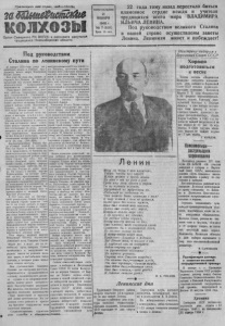 Пролетарии e u x стран, слеёиняйш9*ь[ гаШытТвтШе колхозы О р г а н С е в е р н о г о Р К В К П ( б ) и р а й с о в е т а депутатов т р у д я щ и х с я Н о в о с и б и р с к о й о б л а с т и П О Н Е Д Е Л Ь Н И К 21 Я Н В А Р Я 1 9 4 6 г . № 7 1836) Цена 15 кои . П о д руководством С т а л и н а по ленинскому пу т и л дя и 2 щч 1 а и й х я шс н я и ва й р в я в с о е 1 ж г 9 о д 2 ь 4 м и го и д у р а ч а ит у В е м л л е ь а р ди т м р в и у е р Ильич Ленин. Вот уж е 22 года мы живем и боремся без Ленина- И каждый п к р а о за ж т и е т л ыь й ств г о о мд служ н и е т пр н е о о в д ыо млим д е о й жизненности ленинских идей.. но Мй ин п у о в б шед и ый 1 С 9 о 4 в 5 е г т о с д к —о г г о од Со п ю о з л а над гитлеровской Германией является подлинным торжеством учения Ленина-С талина. С какой силой з ву ч а ли во время 0 | е ч е с т - венной войны слова Владимира И л ьи ч а , сказанные им еще I 1919 году! Л ен и н говорил: .Н и к о г д а не набелят т о го на рода, в котором р а б о ч и е I крестьне в большинстве своем у з н а л и ,п очувствовали и увидели что они отстаивают свою совет скую власть—власть трудящихся что о т с т а и в аю т то д е л о , победа которого цм и их детям о б ес п е чит возможность пользоваться всеми б ла гам и к ул ьт у ры , всеми созданиями ч еловеческого труда ( ю м 24. стр . 258—25Эз многонациональный С о ве т ски й С о г н ю е о з н с . ц т Р и ей а я б о в— с э ч е т и х о е , о с д о к н в р а е е т с о с т б к ь щи я х а н я е н , а с ци е ин м о т ь е н я л а , л л и ь и о л д и н . и В у го н д и ы х О и т н е т ч е е р с е т с в ы е , нн о о д й ни вой ц ны е в к е у с ю ь м с и и р л у изу п м р и е л д с с я т , авл у я в е и т д я с , обо к юа с ш п е л в о и ч к е а н мн иый и о д б в ъ ух е с д о и т н м ен и н л ыли й он бо н лы ь й народ и какую мощь он выковал — промышленность, колхозы , ставшие настоящими крепостями обороны страны, арсеналами Красной Арм ии . Владимир Ильич Ленин открыл Сшщ о у и и юх е с т я ф с . к о о С р е о м в у г е о т с с г у к о д и с а й у р д с с а т т р в р с о о т й в к а ак о т к р а л у з д у а ч я л с ц к я и о и г н о а к и у р л л а ь у с т ч ц уш в р е е н т й о а г ф о о с р т им р о а й н э ык о о н р в о г ман и г и о ч д з е ы а с с м к и и р й а. ст В ро у й сл п о о в к и а я з х ал в с о в й о н ю ы н с е о п в р е е т - 1 обиримую с и л у . Т ак о го прочного государ ства , как н аш е , нет нигде в мире, И понятно почему: т о м у , что Советское государст п в о о — это мы сами, народ. В бур ж уазны х с т р а н а х , где общество Дореволюционная Россия бы- разделено на богатых н бед ны х, ла страной слабей и отсталой. О п л и а н т а в ал в и з с а е с в т ии б с о ч и е л м с е к е о и с х т и ь г б о о о с т у л д е б а е о р г с а п т т о в ыд . п х Б а у д к р а а - жуазно-по мещнчьий режим довел нашу страну до того , что ей л гр ьн оз о и й л ст п р о а зо н р ы н , ы а й на у ш д е е мл у ко н л а о р н о и д а у н— р и а н . ко О с л н п о а н с с и о а з Р л д о ь а с н л с о и е ию з р а о а к т б а с л э т и т в л о о г . о Н па о п р о т Л и з е о ю ч б и о й льшкл ев а и с к е о , в , кре о с н ть г я о н т с о т в в и о л ; р в а с б е о х т д в р а е у р п дж о я а м щв е ии щ я х и с—я к с о в в е к р и жсв е к е н ш р и ж и ю е т н а в л и л и юа с д т ы п с ч в а е м с о т и у р с е т з ан в о с в е ле т н р и удю но в с л т а и ст Л и ен н и а н род в а е . л Ч е и п б р р В и ьс в к 1 е 9 о л 1 й 7 н р а г р е о в о д о д у л , юк е цщ и е в и е . л д и о кой Окт О я к б т р я ьской р ев олю ции , Ленин говорил, что нашей стране надо во что б нм ыа и т ч ь г е о с п к е н о р и м ед с о о т т в а н ыл о о е ше с д н т о р и г а и н н а ыи т н ь а в ч и е э п к е о р н м е о ы 