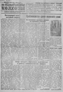 if м м [ Г М f/y ш *Р 1ш u n s t/ufUM, еёФёиняймевь1 i Ml Орган Северного Р К ВКП(б) и р а й с о в е т а депутате* трудящихся Неееиибиреке^! еблаети Ч Е Т В Е Р Г 2 1 Ф Е В Р А Л Я 1 9 4 6 г . № 15 (8 4 4) Дана 15 к м . Победа на выборах— новый триумф советского общественного и государственного строя. Это— триумф к ом мунистической, партии, ее мудрой политики, триумф всесильных идей партии Ленина— Сталина. Наступающей весне- достойную встречу П р и б л и ж а е т с я весеввяи сев. 9 т * будет п е р вы й послевоенный сев. К о л х о з п а я деревня н а п р я ж е н н о работает, чтобы образцово п о д г о т о в и т ь с я к весне, хорошо провеет« весенне-полевые р а боты к т е п самым з а л о ж и т ь п р о ч н у ю о с н о в у вы с о ко г о уро ж а я Передовые колхо зы нашего рай она у ж е в основном з а верш и - ля п о д г о т о в к у к весне. К т а ки м к о л х о з а м о т н о с я т с я сельхозартели к м . Карла ¡Паркса, «Север ная в а р я » , « П у т ь к социализму» « ряд д р у г и х , Б ол ьшую р а боту колхозы приделали в д н и предвыборной с та л и н с ко й в а х ты З на ч а тел ьн о увеличили за этн д ня темпы ремонта тр а кт о р о в м & ш в и н о - т р а к т о р н ы е станции. Одна ко, было бы непростител ь н о й о ш и б к о й г о вор ит ь о т о м , ч т о у нас все в п о р я д к е в по д го тов к е к севу. Кщ е и м е ю т с я д е с я т ая к о л х о з о в , к о то р ы е далеко не з а к о н ч и л и самые основные рабо т ы в п о д го т о в ке к с ев у . Н е к о то р ы е р у к о в о д и т е ! в колхо зов п о д г о т о в к у к весне н а ч в п а ю т с белее м е л к я х работ, а трудоемк и е работы отодвигают х а зад н и й план. Разве можно , на при мер, с ч и т а т ь готовым к весне к о д х п «Кра сный О к т я б р ь » , где з а ко н ч е н ремонт п л у г о в , борон, с бр уя , к о т о р ы х тр еб уется всего 4 - 5 к о м п л е к т о в и где на живом т я г л е будет в ы п о л н я т ь с я всего то л ько 1 5 - 2 0 проц, полевых работ, а вся о сн овн ая работа ло ж н т с я н а т р а к т о р н ы й о тряд . Но пред седатель колхоза т . Волков н е ч е г о не п р едпри ним ае т для з а воза г о р ю ч е г о , ко торого т р е б у е т с я & • ц н т . д л я aaroTjBitB ч у р о ч е к для г а зо г е н е р а т о р н о г о т р а к то ра , не р е м о н т и р у е т в а г о н ч и к для г р а к ю р и с т о в , да я не забот и т с я о п о д г о т о в к е Еадров т р а к - то рве гов . Председатель колхоза им. Тельмана т . Маляревич т а к ж е у п у с т и л » тот у ч а с т о к работы. О громные недоделки имеются в подготовке к с е в у в к о л х о з а х Нов о - Т р о и ц к о г о , B e p i - К р а с я о я р с к о - гв, Б о л ь ш е - К у л в к * в с к о г о сельсоветов. К р а й н е пл охо обстоит дело со сбором и вывозом на поля удобрен и й . Золы с обран о всего 4 7 5 ц н т . из к л а н а 1 . 0 0 0 ц н т . , навоза вывезено 9 . Б 2 0 возов из плана 3 6 . 0 0 0 . Серьенную т р е в о г у вызывает дело завоза г о р ю ч е г о . Б Северной ¡ МТС для весенних работ надо 9 9 т о н н го р ю ч е го , а завезено тольк о 8 , смазочного надо 5 т о н н , но пе завезено н и ки л о г р а м м а . Из п л а н а завоза г о р ю ч е го в 1 к в а р т а л е 6 0 то н е Т а р т а с с к а я МТС заве зла т о л ь к о 13 . Не л у ч - 1 ше обстоит дело с за го т о в ко й ч у р о ч е к для га з о г е н е р а т о р н ы х т р а к т о р о в . Кол хозы Северной МТС и л з а г с т о в й л и только 6 0 0 д н т . жз п л ана 6 . 0 0 0 . Многие р у ководителя колхозов забыли о под- ПТ01В* к весне живой тягловой с и л ы . Во м н о г и х к о л х о з а х лошади к с т о щ е а ы до к р а й н о с т и , далек о не з а ко н ч е н а п о д го тов ка сеи.чн. Я с н о , что все эти не до ста т ка надо Н( медленно у с т р а н и т ь . Все силы надо 