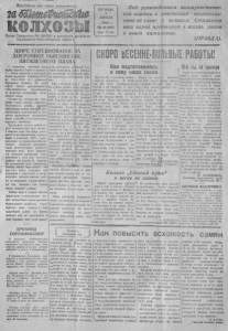 » З А Б О Л Ь Ш Е В И С Т С К И Е К О Л Х З Ы 5 а п р е л я 1 9 4 6 г - № 2 3 (85*5.)- Ширесорвеновнаиезаперевыполнениепланасталинскойпятилетки! О б р а щ е н и е колхозников сельскохозяйственной артели « Г и г а н т » , Ю р тов с к о го сел ьсове та Т о г у ч и н с к о г о района, ко всем колхозникам Новосибирской области 'Фx% ï ¡Êî Дорогие т о н а р ищ и ! 1} М 1скве з а т о ч и л а снох ра йоты ирр«ая Сессия Верховного Совета С С С Р . Л у ч ш и е д ю ш отра н ы , избранники наше-о ^ннрода, народа п о б е д т е л а , приняли п л ав четвертой С(алииспОЙ п я т и л е т к и , и т а к восстановления и развития ( С р о д н о ю хозяйс тва СССР на 1946— 1950 г г . Мы, колхозник*н сельекохознй етвенпой артели « Г и г а н т » , нмее те со всем советским пародом горячо одобряем и поддерживаем новый п я т и л и г н и й п лан . В нем выражены думы и чаяния советских людей, в нем воплощены предначертания отца и друга выполним с ч е с тн о п этим еде- ны по бригадам я звеньям. Каждагм наш в кл а д* » of т е ва родное делп укрепления чш ущ е с тв а на шей Родины. Нашем пятилетним планом намечено большое капитальное строи те льство. Мы построим вторую гидроэлектростанцию, зерно х рани лищ е , мехаяязир'В ш н у ю маете реву ю, водопровод; б у д у т за ложеиы пруды на общей площади 150 гектаров, два мощных водохранилища ; проведем к р у п - вые мероприятия но б ы т у и к у л ь т у р н о м у с т р о и т е л ь с т в у . Мы намечаем п о с та в и ть 150 каменн ы х домов-особнякон для колхоз ников. к лу б на 400 мест, меди т р у д я щ и х с я , великого вождя и цвнсаий п у н к т , дом о т д ы х а . Мы озеленим все село, заложим ф р у к товые сады, построим образцовые дороги. Товарищи колхозники в к о л полководца, родного Ста лина . За црип я ти е п я га л е т п е го пла на в Верховном Совете «месте со всеми деп у та та м и голосовал в п р е д с т а т е л ь нашего колхоза деп у т а т К. П . Шадрин Мы гордимся этим я сознаем, что сю д ь высокая честь налагает на нас, колхозников сельскохозяйствен ной а р тели « Г и г а н т » , особую о т ветственность. Мы разработала и утвердили на общем собрания членов артели п я т и л е т а в й план разввтвя хозяйства своего колхоза я с воодушевлением взялись за выполнение намеченных мероприа т и н . П я т н л е т о я Й план с тави т перед нами большие задачи. 6 конц у п я т в л е т к а мы намети ли до вестя посевную площадь до 1.770 гек таров , обеспечить сред дый знает стою роль и место па <еве В полный порядок призе деиы СеЛЬСКО'ОШЙСТвеННыЙ *н в с т а р ь , сб р у я , трансп орт На пиля. (Данным обргЭОМ H« селен ные участки,вывезено свыше 00 тонн перегноя Мы намерены внести па э т и у ч а с т к и не кенее 10ft тонн перегноя и* к н ж .ш н ге к т а р . Товарищи к о л х о зн и ки I Борьба за успешное i роведение сева и высокий урожай 1946 года — эго борьба за образцовое выполнение всей п я т и л е т к и . На общем собр >впи членов артели, обсуждая итоги Сессии Нерховною Совета С С С Р , мы еще раз уча и возможности и пришли к выводу, ч то если все наши колхозники уд воя т своп уси л и я , т о наш план б у д е т вы хозницы! Мы не пожалеем с и л , полнен не в п я т ь л е т , а значи чтобы успешно провести в ж и зн ь ■тельно раньше. все, что предусмотрено нашим п я ти л е т и я м аланом. Нас воодушевляют па самоо1вержеиаыб т р у д грандиозные перспективы воного расцвета нишей великой Родины, намеченные в « с г о р и ческой речи товарища Сталина па сибрании избирателей С та л и н И вот мы решили развернуть социалистическо