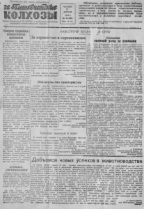 ^ Р <)'№Ш(1р11 и всех стран, соединяйтесь! 2а Ш т е 8ибтС1 Ы О рган С е в е р н о г о РК В К П (б ) и райсовета депутатов трудящихся Ново сиби рской области Ч Е Т В Е Р Г 18 А П Р Е Л Я 1 9 4 6 г. № 2 5 (854) Цена 15 коп. * Обеспечить всемерное привлечение р а б о ч и х , крестьян а интеллигенции к д ел у осуществления пятилетнего плана на основе социалистического соревнования, с тем чтобы не т олько выполнить, но и перевыполнить пятилетний план восстановления и развития н а р о д н о го х о з я й ства. (Из Закона о п ят и л е т и е м план» в о с с т а нов л е ния и р а з в и т и я н а р в д н о г в х о з я й с т в а С С С Р на 1946-1И50 гг.). — - Развернем предмайское социалистическое соревнование П р и б л и ж а ю т с я зн аы епа тел ь - ны в даты в ж и з н и н г ш е г и на ро да, Че р ез 12 д н е й н а ш а с т р а н а гГ^е.т о т м е ч а т ь Д е в ь 1 - го }1ая, а через 2 0 дн ей — День Победы Э ти з н а м е н а т е л ь н ы е даты советс к и й народ в с т р е ч а е т в период, когда с т р а н а п р и с т у п и л а к в ы полнению гр а н д и о зн о г о п л а н а н о вой с т а л и н с к о й п я т и л е т к и , Нели ч ес тве нно я п р о г р а м м а четвертого и я т в л е т н е г з п л а н а вооду ш е вл я е т н а ш парод на новые г е р о ич е ски е п о д ви ги во с л а в у своей любимой Р о д и н ы . И ответ « на обращение членов колхоза « Г и г а н т » , Т о г у ч я н с к о г о района, в вашем р а йо зе с к а ж д ы м днем все сильнее и с и л ь н е е р а з г о р а е т ся с о ц и а л и с т и ч е с к о е с о р е в н о в а ни е за досрочное вы п о л н ен и е повой п я т и л е т к и . Че р ез де в ь -д на н а ш район в с т у п а е т в В1с е щ | и й сев Весенн е й сев э т о ю Iода — первый сев в м и р н ы х у сдО звях и первый сев четвертой с т а л и н с к о й п я т и л е т к и — должен б ы т ь проведен ва высоком а г р о т е х н и ч е с к о м уровне Для т о го , чтобы у с п е ш н о провест и весен не полевые работы надо еще ш а р е р а з в е р н у т ь социалистич еское с о р ё в п о с и н и ё . Кажды й т р у д я щ и й с я до лж ен у ч а с т во ва т ь в пр едмай ском соревновании и в соревновании в ч ес т ь Дня Победы. Н а ш ра й о н д е р ж и т первенство в областном с о р е в н о в а н и и но ра зв и тию к ол хозно го ж и в о т н о в о д с т в а . З а в о ев а т ь п е р в е н с т в о в соревновании на ве се нн ем севе — вот благородная ц е л ь , к которой должен с т р е м и т ь с я к а ж д ы й т р у жен в к села. , Боевая з а д а ч а п а р т и й н ы х , со в е т с к и х , к о м с о м о л Ь г к и х о р г а н и з а ц и й — всемерно р а зв ив а ть соревн о в а н и е в к о л х о з а х , М Т С , па п р е д п р и я т и я х , в у ч р е ж д е н и я х , с д ел а т ь его м а с с о в ы м , вовлечь в сореваоиапие в с е х т р у д я щ и х с я . Т о в а р и щ и ! Ознаменуем День 1-е М а я и н а ш великий п р а з д н и к П об еды н о в ы м и т р у д о в ы м и у с п е х а м и , д р у ж н о и организованно н а ч н е м полевые работы , обра зц о во пр оведем и х , заложим тем с а мы м в ы с о к и й у рож а й цер- вого года новой п я т и л е т к а . НАВСТРЕЧУ ВЕСЕ! З а п е р в е н с т в о в с ор ев н ов ан и и О с т я ц к и й сел ьсовет п о л у чи л п е р ех од ящ е е к р а с н о е з н ь м я р а й кома ВКП(б) в р а й и спо л к ом а за у с п е ш н у ю п о д го т о в к у к с е в у . Колхозники н а ш е г о сельсовета хорошо поработали , чтобы в с т р е т и т ь сев во все о руж ии . И н в е н т а р ь . с б р у я , т а р а , т я г л о в а я сила н а х о д я т с я в хорош ем с о с т о я н и я . С е м е н а х о р о ш о о т с о р т и р о в а н ы , проверены на есхожость, К о р м для лошадей и рабочих б ы к о в п а пе р ио д п о се вн ой п р и ч а с е н о т л и ч н ы й . Во в се х колхо