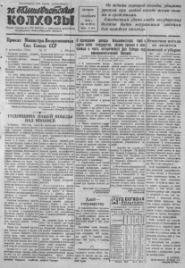 всех стран, соединяй ?песь\ 2 а Ш т ё Ш т с Ш К О Л Х О З Ы Орган С е в е р н о г о Р К ВКП(б) и райсовета депутатов трудящихся Новосибирской области ЧЕТВЕРГ ä С Е Н Т Я Б Р Я 1946 г. № 45(874) Цена 1Ь коп. Не ждать хор ош е й погоды, убирать урож ай при лю бой погоде всеми силами и средствами. Ежедневная сдана х л е б а государству должна быть нерушимым з а к о н о м для каждого к о л х о з а . Приказ Министра В о о р уж е н н ы х Сил С о ю з а С С Р 3 сентября. 1946г. М 41 Товарищи солдаты, матросы, сержанты и старшины! Товарища офицеры, гевералы и адмиралы! Трудящиеся Советского Союза! Сегодня мы празднуем Д е н ь П о б е д ы надимпериалистической Японией. Год тому назад советский наг. Москва Праздником Побединад империя" диетической Японией. Я ознаменование П аздника П о беды над империалистической Японией —пр и к а з ы в а ю : т н и ы— С са е л г М о ю о д т с н к в я в , е с .в 3 то с л е и с н т ц т о е я л б и н р ц а я а ш х , е п й с р о о ю Р и з о з н д в ы е и х с республик, а также в Хабаровске, род и ею Вооруженные Силы по- Владивостоке и Норт-Артуре — бедоносно завершил и воину про -' двадцатью четырьмя артиллерий- тив империалистической Японии, свищ залпами. Япония подписала акт о безогово - 1 Вечная намять героям, павшим рочвой капитуляции. Советский йарод него Вооруженные Силы одержали победу и ввеслиэтоп победой огромный вклад в дело достижения мира во всем мире. в боях за честь н победу нашей Род Д ин а ы! здравствуют Советские Во- оружевиые Силы! Да здравствует советский на- - - - -г- - - - -1- - эд уп п и J . 0 J С Т С Ч Й П и ^ И Н 1 1 4 - Приветствую и ноздравлию Вас род! Да здравствует могучая совет- с днем всевародвоготоржества— I ская Родина! Министр Вооруженных Сил С о ю з а С С Р Г е нер ал и с сим у с С о в е т с к о г о С ою з а И .С Т А Л И Н 0 проведении декады большевистских темп в сдачи хлеба государству, убокри урожая и сева озимых в часть исторического Дня Победы нда империалистической Яопнийе П о ст а новл е ние исп олнит ельно г о к о м и т е т а С е в е р н о г о р а й о н н о г о С о в е т а депутат ов т р у д я щ и х с я и р а й к о м а В К П { 6 ) от 28 августа 1946 г о д а . 1. В ознаменование истори- Каждый труженик колхозной ческою ДняПобеды над имнериа- деревин должен стремиться к то диетической Японией провести с му, чтобы за период декадника 1 по 10 сентября 1946 года де- машинист на самосброске и добо- каду большевистских темпов еда- грейве скосил не менее 40 га, чи иеба государству, уборки на сенокосилке с приводом—не урожая я сева озимых. менее 35 га , жнец, жнея 2. Утвердить па период декад-' серпами — не менее 2,5 га, ника следующие задания колхо-1 косарь косой с грабками—не Г О Д О В Щ И Н А НАШЕЙ ПОБЕДЫ НАД ЯПОНИЕЙ 2 сентября 1945 года, через 4 ско ме й сяц Г а ер п м о ан сл ии еразг п р р о и м з а ва ф ла аши с с е т б я побежденной н сложила оружие империалистическая Япония, а жизнь трудящихся еще краше М в в о а г , ы о к п с о т р а т и л о с и р т ы н уп с й к и с о л г д и е о л к а о е я в т т ы и п н л о а е ш т лн н у е е н г Г и о о ю д н и л н н а о у еще сильнее и могущественнее, Японские захватчики не продре жались и 3 недель послетого, н ка о к -М н ро а с ш ко а й Кра ф сн л а от я Ар п м р и и я со а еди В н о и е л н и свои сокрушительные удары к у в д е а т р кс а о м го со С ю о з ю н з и а ков. в В в ст о у й п н ле у ни п е р С о о т ив Японии ускорило ее разгром и приблизило конец второй мировой т в а о т й ь ны н . а « ш О у тны о н т е чи м зн ы у м и о з ж б ем вален с н ч о