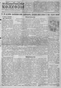 Пролетарии всех стран, соединяйтесь! Орган С е в е р н о г о Р К ВНП(б) и райсовета депутатов трудящихся Новосибирской области В О С К Р Е С Е Н Ь Е 13 О К Т Я Б Р Я 1946 г. № 4 9 (87 8 ) Дана 16 sod. Партийные и советски работника , коммунис- ты, комсомольцы и лги г а т оры ! К л ю ч к у с п е х у заготовок х л е б а в ваших р у к а х . В а ш долг строжайшей охр а ной интерес в госу дарства, неутомимой организаторской и политической работой, личным примерам а большевистским словом п о мочь к ол хозн икам и колхозницам безусловно в ы - полнить план хлебозаготовок и одержать новую победу в борьбе за осуществление плана новой ст а линской пятилетки! ( „П р а в д а “) . К 20 октября вылпиномплан хлебосдачи, сдадим сврхеплана б тыс. пдуовзерна! С честюь выполним свои обзяательства Колхозника н колхозницы, специалисты сельского хозяРства и работники МТС вашего района горячо одобрили обязательства Новосибирской области, принятые в ответ па обращение алтайцев, п включившись в предоктябрьское социалистической соревнование, взяли на себя обязательства, которые публикуются сегодпяв нашей газете. Передовые колхозы нашего района, соревнуясь за достойную встречу 29-й годовщины Октября, с честью выполняют взятые на себя обязательства. Выполнив х го о д з о ы вой нн а . лан Кар х л л а ебоз М а а г р о к т с о а в , окко * л, 7 Й съезд Советов» в другие сдают хлебсверх плава. Заканчивают выплонение плана хлебодсачи к ве ол т х О ов о д з » н ^ ы ка П « у о Б т е о ь с е т . ь ш С е т я » ал ,« и т 6 н ак - а й ж » е с в ъ к д е о з р д л у х г о и С з е о ы . , к д ле н о е н то н в р к о ы г у о е н р в е а з йк п в о я ы н т п и о о д м л н н В е я в К ю к Ц и т (б) в ус и т п а р я н а т о й и в исполокмом графика. К таким колхзоам отпосятс^ колхозы Чу- ваЩйаского, Че'оаоквского и Ьово- Тровцкого сельских советов, а колхозы «Красный охотник», «Первое Мая», «Оборона», «Вн- няш» к ряд других вот уже несколько дней не сдают хлеб государству. Для того, чтобы выполнить годовой план хлебозаготовокк20 октября колхозы района обязаны ежедневно сдавать по 2300 ц л н н е е н р т н , о о в. а й х 1 л 3 ебо о с к д т а я ч б и р — я 4 в 66 д 7 ень це у н с т и т т в о е ы в р о ш е С к и п м о т а к ж ь с е г м е о б 2 д я о л 0 в и ой о м о б к п ы я т л з я в а а б н т ы р е п л я х о ь л л с н е т б в и в т о а ь з — а с в г з д з о а я а ть сверх илана 6 тыс. пудовзерна? Безусловно, да. Об этом лучше р вс е е д го овы с х ви к д о е л т х е о л з ь о с в т , вуе У т н оп ас ыт е п с е т ь в п п с о р е е л д н в о ти к о ь з тя м б в жо р зя ь н т с ы о к с о т е м и с о с б о я ц ч за и е т с а е т л л ь и ь ю с с т т и в че а в с ы в ком соревновании. Надо только р р н е ы о ш х с и т р т ь е у ю л к ь I о но вои б п д л т о а е к л г о е о н д м ч у и к ш т о и ь л ем охз с ов б н , ес е п к к е о ч о т о торые, прикрываясь различными объективными причинам!, не выполняют график хлебосдачи, затягивают выполнение первой заповеди перед государством. Сейчас, когда мы вступилк в предоктябрьское социалистическое соревнование с Алтайским краем ■ колхозники, рабочие МТС, совхозов и специалисты сельского хозяйства нашей области вызвали на соревнование Казахскую ССР, Кемеровскую и Томскую облатси, от каждого труженика села требуется напряжензе всех сил. Товарище! С честью выполним свои обязательства — досрочно завершим плав хлебозаготовок! Обязательства колхозников и кол х о зниц , рабочих и работниц с о в х о з о в и М Т С , специалистов сельского хозяйства Ново 