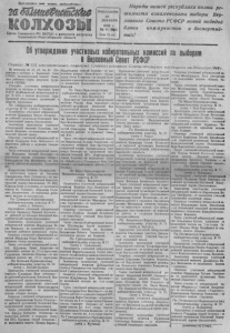 ^ ФЛ?Ш.а№ и__еш§ж- $Ф е §и н лйщ м ь \ т М Ш Ь О р га н С е в е р н о г о Р К В Н П ( б ) и райсовета депутатов трудящихся Новосибирской области ПОНЕДЕЛЬНИК 3 0 Д Е К А Б Р Я 1 9 4 6 г . № 61 ( 8 § 9 J Цепа 1 5 сои. Н ар оды нашей р е с п у б л и к и полны ре- шимости ознаменовать выборы Верхов но го Сов ет а Р С Ф С Р новой победой блока коммунистов и б е спа рт и й н ы х ! Об утверждении учсактов хы ибзиртаельных комсисйи по выбоарм в верховный Совет РСФСР Решение J4 515 исполнительного комитета Северного районного Совета депутатов трудящихся от 29декабря 1946г 1 а о с в о я а и и и с т . с т , 4 3 , 4 4 , 4 5 « П о - и ----- ------------ 1 -------- * 77------------ ---------- ■■ " ' * лощения о в ы б о р а ! в В е р х о в н ы й Совет РСФСР» и с п о л н и т е л ь н ы й к о м и т е т С ев ер ного р а й о н н о г о Совета д е п у т а т о к т р у д я щ и х с я Р Е Ш И Л : У т в е р д и т ь у ч а с т к о в ы е и з б и р а те л ьны е к о м и с с и и цо выборам в Ве рховным Совет РСФСР ( К у й б ы ш е в с к и й и з б и р а т е л ь н ы й о к р у г Л» 4 4 0 ) и со с та ве с л е д у ю щ и х п р е д с т а в и т е л е й о б щ е с т в е н н ы х о р г а н и з а ц и й в обществ т р у д я щ и х с я : П о С е в е р н о м у и збир ательному у ч а с т к у Ла 0 0 ( ц е н т р с. Сев ервое). Пред се д а тел ь у ч а с т к о в о й изби р а те л ьн о й к о м и с с и и Ш а к и н к о Ындаил И в а н о в и ч — от р ай о н н о й о р г а н и з а ц и и Все союзной К о м м у н и с т и ч е с к о й п а р т и и ( бо л ьш ев ик ов ). З а м е с т и т е л ь председателя у ч а с т к о в о й и з б и р а т е л ь н о й к о м и с с и и У с а т о в а А н а с т а с и я П е т р о в н а — о т к о л л е к т и в а у ч и т е л е й Северной ср ед н е й ш к о д ы . С е к р е т а р ь у ч а с т к о в о й и з б и р а т е л ь н о й к о - м к с и и С и д о р о в И в а н В а с и л ь е в и ч — от Кыш ты мов А л е к с е й П е т р о в и ч — от к о л х о з н и к о в ко л хо за « В е р н ы Й - а у т ь » ; Н о в и к о в а Кл ена Т и х о н о в н а — о т Ь о л ь ш е - К \ л и - к о н с к о г о п е р в и ч н о й о р г а н и з а ц и и Всесоюзног о Л е н и н с к о г о К о м м у н и с т и ч е с к о г о Союза Молодежи По В е р х - К р а с н о я р с к о м у и збир ате л ьном у у ч а с т к у Л'ё 09 ( ц е п т р с . В е р х - К р а с н о я р * а ) . Пред се д а тел ь у ч а с т к о в о й избирательной ко м и с с и и Р о г о в Фома З ипов еевнч — от районной о р г а н и з а ц и и Всесоюзной К о м м у н и с т и ч е с к о й п а р т и и ( б о л ь ш е в и к о в ) . З амес тител ь председателя у ч а с т к о в о й изб и р а т е л ь н о й ко м и с с и и Д о л и д е н о к М а н ежа П а в л о в и ч — о т профсоюзной о р г а н и з а ц и и В е р х - К р а с н о я р с к о й с е м и л е т н е й ш к о л ы . С е к р е т а р ь у ч а с т к о в о й избирательной ко ми сси и С а в и ц к а я Вера И в а н о в н а - от к о л л е к т и в а рабочих а с л у ж а щ и х Сеево* нон МТС. Члены у ч а с т к о в о й и з б и р а т е л ь н о й ко м и с - с и и . м е р и н о э а Е в доким Н и к о л а е в н а — от к о л л е к т и в а р або ч и х и с л у ж а щ и х С е в е р н о - 1к о л л е к т и в а у ч и т е л е й В е р х - К р а с н о я р с к о й г о сельпо Ч л ены у ч а с т к о в о й и зби р а те л ьн о й к о м и с с и и : М а т в е е в Е в г е н и й М а т в е е в и ч — от к о л х о з н и к о в колхо за » С ове т с кая С и б и р ь » ; Б о л ь ш а к о в Аиф М и х а й л о в и ч — от к о л л е к т и в а р а б о ч и х к с л у ж а щ и х Т & р т а с с к п й МТС; А н д р о с о в а А п т о н в п а П р о к о ф ь е в н а — от к о л ю з н и к и в ко л х о з а им. Т е л ь м а н а ; С в и р е н к о в П и а н С т е п а н о в и ч — о т п е р в и ч н о й о р г а н и з а ц и и Всесоюзной К о м м у н и с т и ч е с к о й п а р т и и ( б о л ь ш е в и к о в ) РО М В Д ; Ю д и н а Д о н н а Л у к ь я н о в н а - от ко л х о 