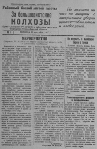 П р о л е т а р и и всех с т р а н , с о е д и н я й т е с ь ! Районный боевой листок газеты За большевистские КОЛХОЗЫ Орган Северного РК ВКП(б) и райсовета депутатов трудящихся Новосибирской области §9 ] I ПЯТНИЦА 19 сентября 1947 г. медлить ни часа ни минуты с завершением уб о р к и урожая— обмолотом и хлебосдачей . МЕРОПРИЯТИЯ Северного Р К В Л К С М на период завершения у б о р к и х л е б а и хлебосдачи государству ш ци и а К л о и и м с с т д о и е м ч в о е у л с ш ь к ц к о ы и е ! и Ш со к и р о р е м в е с н о о р м в а о а з л н в к и е и е р ! н з е а м Ю д н с о о о срочное завершнеие хлебоуборки и сдача зерна государству. Выполним м з св а е х ои 1 т . о р в Д а о й а о б о р я н и з 1 а а ш 8 , т у е г С с д л е т н е а ь т л с я и н т б е н в р у я ад з ! а а в н о к н о ы в н е с ч ех е в н к п ау о и б л о с х р ь о ка хлебов, выделить комсомольцев имолодых колхозников на косовицу вручную (грабками, серпами). Закрепить п ц о е л в ни з т а ь у з б в о е р нь о я чн в ы я л з м у а ч и л ш м ь и а щ ш х и и ц н . к а о м Д м о и с в . о е м с Д о т л о ь и д п о еч к ив а а ж ю д щ о и г е о п д о н л ев н н о ы сь е тю зада у н б и ор я к , у обе д с о 22 сентября. 2. Организовать с 18 сентября к н р ог у о глос х у л т е о б ч а н , ую доб с и к т и ь р с д я овк в у ып с о к л о н ш е е н н и я норм выработки каждым молодым к л о и л з х о о в з а н т и ь ко н м а с д к о ир 2 д 0 о 0 вк п у р в о с ц ю не т то яг в л м о о в б у и ю силу колхозов и коров колхозников, чтобы колхозы района закончили скирдовку до 27 сентября, а колхозы «Красная звезда, «Путь Сталина», «Красногвардеец», им. Ворошилова, н и о м г . о, 6 го «Е с д ъ и е н зд ы а й С п о у в т е ь т » ов, и и д м. ру Б ги у е ден д о 25 сентября 1947 года. г н л о 3 о ч с . н у ы т е о С чны 1 К 8 й о с м е о с б о нт м м я о о б л л р о ь т с я ке х о л р - е г м б а о о н в л зи , о о с д в е о а з ж т д н ь а ы т к е ь ру бригады для обеспечения обмолота д з а е н р и н я а и по в х ы л п е о б л о н з е а н г и о я то е вк ж а е м дн . е Д вн об о и го ть з с а я , чтобы колхозы района закончили обмолот до 5 октября. Создать сквонз ую молотильную бригаду из комсомольцев и молодежи р в а и й т ц ь ен ее тра в к ко 2 лх 2 озы сен В т е я р б х р -К яи рас н н а о п я р р а - ского и Северногосельсоветов. 4. х б ле ы бо к п ол о х с о т з а П ы в р к и а р м н а я й т к о ь на 1 в 5 с ' р е а м о с к е сч т ры и яб та р к л я и , т с о ь а му п п , о о чтоколхозам «Красный Урманец», «Путь Сталина», им. Карла Маркса, к 25 и с г е м о н , . тя Т и б е м р л я ь . м , К а « н а У а л , д и а н « р и К н н р и а а , к с » н « , Е а д я и и м н . з ы в й е Б з у д п д а е у » н ть н » о к 1 октября. в с п п о у з о н к р О к у т т р н ы г п ы а . о н х д и В р з б а о б р в о и к а т о т г а а л ь н д х н о , о к з г с р а о о у х з г , д л х а л о г т е с д ь у б е а т и о н х ч н н е а т у и з ю з а т г р о в м а т ы о н лодых колхозников. V таре 5 й . Вм к е о н м и со т м ь ол в ьс о ки бя х зан о н р о га ст н ьс иа е з к ци ре й г в к р о а у н т з т ь к р и к ол р ь у зе гл р о н з с а а ут к о г а о ч ч с н е у у с д ю т а в р о п с м о т д в р с у а у . б ш о О т к р к и г у ан и з и е з р о о т на на токах и сушилках, для чего с р з о а а м б к о о р т л е ы ь п ц и е т н в ь а и с с п у н ш е е ц с и о и л ю а к з л н а у х ь ю . ны м зе о в л е о н д ь е я жь к д о л м я р н и и в я 6 ан . в и ы Д я д л е и я ли о н т х е ь р п а л н р у ы а ч ив ш л з ь и е н х р о н г а к о ом р о с т а о с м х р о о а д л з ь о б ц в а е а з в а и щи м к о а л м о и д . еж О ь рг в ан ес и о зо в в щ ат и ь кмаи пров ж е к ро ла ч д н о ы в е б н р и и е г м 7 а . д з ы ер О н д р а л г я а в н к и о к з н о ол в тр а х о т оз ь 