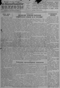 д а Ь Ш Е В И С Т С К И Е К О Л Х О З Ы 9 я н в а в я 19 47 г № 2 П а р т и й н а я ж и з н ь В б о р ь б е з а первенство Н а встречу выборам в В е р х о в н Ш С о в ет Р С Ф С Р Выполняют свое обязательство Как только был опубликован • Указ Президиума Верховного Со с б в о о е с р т т о а о в ял Р в о С с В Ф ь е С р Р хо со в б н < р 0 ы а й н п и р С е о о в в е е д п т е е н Р р и С в и Ф ич С н Р в о ы » й парторганизации МТС, где был обсужден вопрос о подготовке н м г к а и е н е н в м и о ы з в о б а р в о т е а р ь м т а о ь м д н . р е т н а а Б б ь ы о т л т в р о у ы а , к б р т о е ч о р ш т р о о о е в б в н ы . о о С т к а о о к з н н о ч р а а т во и й чес с к и о л е ой сор р е а в з н го о р в е а л н о и сь е. К с о о л ц л и е а к л ти и н в с о Уже отремонтировано/15 тракто' ров. Коллектив напрягает все усилия, чтобы выполнить свое обязательство—завершить ремонт в 9 февраля—дню выборов. дит Наш бо а льш па у р ю тор м га а н с и со з в ац о и р я изь п в р с о в в и о - тельную работу. Агитаторы креплены за десятидворкам за и , бригадами, цеха ми. Многие из них уже провали по 6-8 занятий по- р к а о з н ъ а я , сн С е т н а и л ю инс и к з о б й ирате К л о ь н н с о т г и о туц з и а и . Колхоз «Ударник» усг ешно ■ готовиться к весенае посевной завершил 1946 год. Выполнив с ¡кампании, завезти для тракторов честью свою первую заповедь, ¡3 тонвы горючего, заготовить колхоз сверх плана сдал 300 ¡1 00 центнеров чурочек, сделать пудов хлеба, выполинл все своа обязательства по сдаче мяса, шерсти, молока, рассчитался по денежным платежам п в о ит в и с я ем жи в в и о д тн а о м во с д к с о т т в а а . П в л ы а п н олн р е а н зна ферме месячный запас кормов. ся. Эт В о н о а б с я т з о а я т щ ел е ь е ст в во ремя вы п п о ол д н х я о е д т и т | к концу ремонт сельхозинвента В г. Владимира иыл.1 т н а а в о к б а л . аст Н н а ая в к ы о с н т е а в в о к д у ческ п к а р о я о л в х в е о ыд з е ы сГотовясь к выборам Верховно | ря, сбруи, транспортных средств представили свыше 400 поро- . j г г * дистых лошадей, в числе котонашей МТС вызвал на сорекно-: Член ВКП(б) т. Данченко провела вание ремонтников Тартасской беседына темы: «Великая жизнев- МТС, все рабочие заключили между собой индивидуальные до г н о и в с о т р ы а и на ко с м о с р о е м в о н л о ь в ц а ы ние б . ыл К и ом р м ас у . ставлены на самых ных участках работы. о М тв ы етс в т в в е ен л и за правило проводить ежедневно производственные совещания, где подводим итоги работы за день, намечаем задания на следующий день К . оммунисты и комсомольцы показывают пример в работе. Кан дидат партии токарь Гаврилов выполняет ежедневно но две н бо ор ты м . ы К с ом о с т о л м и о ч л н ь ы ц м ы т ка т ч . ес К т а в р о ч м ег р и а н и Купряжкина выполняют нормы выработки на 180-200 проц Член партии т.Алешкин со своей бригадой уже отремонтировал 3 трактора. Мы добиваемся того, чтобы ремонтники не уходили из цеха, пока не будет выполнено задание. Со стороны дирекции д б м е о и л ч а и ч е е а т с с б я т ы ям в л и с и е , о д б и л е н с я с п т е т р ч о у е г м в о е ы , нт ч а з т а м о п и б а ,^ с ы н м р ы а а териалами. Наши лучшие произ- водственники, как, например, П . В . Гаврилов и др. добились изготовления ряда важных деталей, которые раньше у нас не изготовлялись. Все это помогло нам успешно справиться с планом ремонта 4-го квартала. нал сила советского строя, «Самый д т д е е л л м ь я о н к ы р в й а с т з и з г ч о а е к с о к н и » й . ко Н л в а л - е д м к н и ти р я в е х а я и о з д б де и о л к р а л а а ; «В