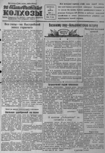 Пролетар и и**сев стран, смёиняйтесь\ заШ тевиаШ ке КОЛХОЗЫ 0 | 1 г а и С е в е р н о г о Р К В К П ( б ) и р а й с о в е т а д е п у т а т е » т р у д а щ и х а я Н о в о с и б и р с к о й о б л а с т и П Я Т Н И Ц А 21 М 19 А 4 Р 7 Т А г. N1 13 ( 0 0 3 ) Ц'еиа 11 к он . Вея история партии у ч и т наш народ т о м у , что нет т а к и х крепостей , к о т о р ы х большевики не могли бы взять. Будет претворено в жизнь и решение П л е н ум а Ц К ВКП (б) о подъеме сельского х о з я й с т в о —в эт ом непоколебимо уверены все трудящ иеея нашей страны. В с е с и л ы — на быстрейший з а в о з горю чего » Своевременный завоз горю чего в МТС имеет огромное г о с у д а р ственное зн а ч е ни е в деле у с п е ш ного проведения весе нее -п о сев ной к а м п а н и и . От обеспеченности МТС ж и д к и м и твердым го р ю ч и м будет за ви се ть бесперебойная р а бота т р а к т о р н о г о п а р к а . Передовые кол хо зы наш е го с большим вниманием отжеслись к э той в ажней работе в подготов ке к сев у . Т а к в е к о л хозы к а к «Нацмен пролетарий» п еревыполнил план завоза горю ч е го . Вывезено со с т а н ц и и Бара- в я н с к 3 8 ц н г . вместо 3 5 ц н т . п о п л а н у , к о л х о з «Ударн и к » вывез 3 2 ц а т . г о р ю чего н за го товил 8 0 0 ц н т . ч у р о ч е к для г а з о ге н е р а т о р н ы х т р а к торов, им 6 - г о съезда Советов еаготовил более 4 0 0 ц н т . ч у р о ч е к , к завез горю чесмазочного м а териал а в к о л ич е с т ве 21 ц н т . Однако в целом по району позорно проваливается завоз г о рю ч е го и з а го то в ка ч у р о ч е к . В ны шли в Севернее н е з а г р у ж е н ными . Плеге использовался и свой тр ансп ор т . Сейчас д и р е к т о ра МТС вы ж и д а ю т , ко гда будет л у ч ш а я дорога, а сами не при н и м а ю т мер а ее р а с ч и с т к е . Безответственно отнеслись к выполнению граф и ка по вывозке горючего руководители колхозов «Память Кирова» , им. Ч ел ю с кин цев, где из 2 5 ц в т . требуемого гор ю ч е го не завезли н а одного к и л о гр а м м а , «2 я п я т и л е т к а » из 2 0 ц н т . по плаи у вывео 4 ц н т , В колхозе им . К а л и н и н а д о л ж н ы были за го товить 5 0 0 ц н т ч у роч е к ,за го тов лен о всего л иш ь 1 0 , а колхоз им . Тельмана к за го товке ч у р о ч е к еще не п р и с т у п и л . Все эти недостатки — результ а т то го , что руководители МТС, колхозов и сел ¡.исполкомов забыла об ответственности перед государством за подготовку к иесенае- посевной к а м п а н и и . Такоо положение те рпимо . п р а к т и к е п рош лы х ле т было м но го быть не может, с л у ч а е з , к о г д а совершенно и с п р а в - * Времени до начала ра с п у ти цы ные т р а к т о р ы простаивали с у т к а - 1 осталось немного. Надо немедля ми из-за о т с у т с т в и я горючего. Этот у р о к п р о ш л ы х лет но у ч т е н д и р е к т о р а м и МТС и в этой год у . Разве можно быть равнодушн ы м и , к о г д а Т а р т а с с к а я МТС не Р " П и * н а 8 4 т о н н завоза г о р ю ч е го , завезла 2 2 т о н н ы , н у ж н о было оаготовить 1 4 0 0 ц н т . ч у р о ч е к , а за готовлено всего л и ш ь 7 0 ц н т . В Северной МТС из 8 4 то нн , за везено только 1 7 т о н н . План з а г о т о в к и ч у р о ч е к выполнен на 5 # п р г ц . А ведь п а р к автом аш ин в н а ш и х МТС по с равнению с прош лым годом увеличен в 3 раза. Не додумалась р у к о во ди т е л я МТС и с ю л ь з б в а т ь м а ш и н ы ав то кол онны для завоза гор ю ч е го . В т е ч е н и и веемобилввовать весь имеющийся т р а н с п о р т МТС на в ы в о з к у г о рючего. У с т а н о в и т ь для этого твердый граф и к . Все силы должны быть направлены ш быстрейший завоз горючего. Промедление в этом важном деле опа