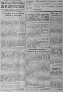 П р о л ет а р и и всех стран, соединяйтесь! жШжеШШке : : Ш . О р га н С е в е р н о г о РК ВКП (б ) и райсовета депутатов трудящихся Новосибирской области Улучшить агитационную работу в Болыневг.стская агитация и пропаганда —важнейшее средство для успешного выполнения всех хозяйственно—полатических задач. Об этом лучше всего свидетель ствует практика передовых колхозов Мало-Карагаевского сельсовета. Колхозы этого сельсовета в текущем году выполнили план весеннего сева на 1 0 8 . 9 процента, закончили очистку хлебов от сорняков, выполнили план подъема паров и закладки силоса. Полным ходом развернули заготовку кормов и подготовку к уборке урож а я . В этом большая заслуга парторганизации, агитколлектива, которым руководит товарищ Свистунов. Во всех колхозах сель совета имеются агитаторы, которые систематически ведут массово-политическую работу с населением,выпускают етевные газеты, боевые листки, оформляют доска показателей и т. д. Неплохо работает агитколлектив Виазинского сельсовета. В этом году сельсовет в социалистическом соревновании на весевнем севе занял второе место в районе. Здесь план сева выполнен на 1 0 6 , 5 процента. Успешно идут и сейчас летне-полевые работы в колхозах этого сельсовета. Успехи этих сельсоветов сви детельсгвуют о том, что агитаторы здесь проделали большую работу по мобилизации всех сил колхозной деревни на выполнение решений февральского пленума ЦК ВК1 (б). Но однако, в нашем районе за последние месяцы агитационно-массовая работа сильно ослабла. Это безусловно повлияло на ход очередных работ. На 25 июля план заготовки кормов выполнен всего лишь на 42 процента, перепахано паров 5,9 процента к плану. Отстаем мы и в подг о т о в к е к уборке хлебов и х л е босдаче государсту. В некоторых сельсоветах а г и т коллективы совершенно прекратили работу. Хорошо работал Останинскяй агитколлектив в период весеннего сева (зав. агитколлективом тов. Кириллов), план весеннего сева был выполнен на 103 процента. Но как только этот агитколлектив ослабил масеово-политЕческую работу, т а к это заметно повлияло на ход летне-полевых работ. Останансквй сельсовет сейчас почти один из отстающих в районе по заготовке кормов. Здесь план по сенокошению выполнен на 26 процентов. Не слышно агитаторов в колхозах Больше-Куликовского, Ново-Троицкого, Верх Красноярдеревне ского сельсоветов.Некоторые пар тийвые и комсомольские организации не руководят агитаторами, пустили на самотек этот важнейший участок работы. Руководящие работники района не выступают с политическими докладами не ред населением, интеллигенция не привлекается к этой работе. Выезжая в колхозы совпартактив не считают нужным весги там массово-воспитательную работу с колхозниками. К таким относятся т. т. Машко, Гордеев, Карев, и другие, которые в течение текущего года ни разу не выступили перед массами колхозников с докладами. Агитатор—вожак в воспитатель трудящихся деревни Задача агитаторов заключается в том, что бы неустанно разъяснять историческое постановление февральского пленума ЦК ВК11(б) _ и обязательства данные в своем письме к товарищу Сталину, добиваясь того, чтобы все работники сельского хозяйства постоянно помнили о своем долге перед Родиной и самоотверженно боролись за новые достижения в сельском хозяйстве, за повышение урожайности. В настоящий момент в с я -
