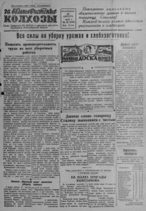 ГГ П р о л е т а р и и всех с т р а н , с о ед ин яйт е сь ! тШашФмжнке К О Л Х О ЗЫ Орган Северного РК ВКП(б) и райсовета депутатов трудящихся Новосибирской области ВОСКРЕСЕНЬЕ 2 4 А В Г У С Т А 1947 г. № 58 ( 9 4 8 ) Цена. 15 son. Повседневно в ы п о л н я т ь обязательства данные в п и с ь м е товарищу С т а л и н у ! Каждый колхоз должен еж е д н е в н о участвовать в хлебосдаче. 5 i Все силы на уборку урожая и хлебозаготош! П овы сить производительность труда на всех у б о р о ч н ы х р а б о т а х Переход от социализма к ком колхозах Северного сельсовета, не м т п и я у т л н и и л з п е м р т у о и и е т з м в р о е п д б л и у а е т н т е е ль в п н ы р о с с е о т д и к у . о см г З о а а т р к р а о и з н в в а и о -¡изжита обезличка в работе и прет е х т е о л д ь и р н м е о зк с о т о и е пр п т а о р в в у и ы д л а ш ь . н е о н Д и л е я ор э г п т а р о н о и г и о з з о в н в о е а д о т и б ь труд, улучшать его оплату, пранебрежительное отношение к борьбе с потерями. Бюро РК ВКЩ6) исслючило из кандидатов в члены партии пред седателя колхоза имени 18 го партсъезда Халява и указало » вильно начислять трудодни и н о - , председателю Северного сельсове- вышать их роль в раснределе ' та тов. Крюшкину и секретарю н ш колхозных доходов. ! парторганизации тов. Спирндоно Увеличение производительности ву на их неконкретное руковод труда создает обилие иродук- ство делом уборки и хлебосдачи, тов от хозяйства колхозов, что | Подобная антиколхозвая прак- является источником социалиста-(тика наблюдается в колхозе «Ук- повышенвя раинец», Останинского сельсовет ческого накопления, материальных сил колхозов и благосостояния колкозни сов. Огромную роль в борьбе за ысовую производительноегь р н а и е е т , с с о о з ц д и а а ю л щ и е ст е ич д е в с и к ж о е е ни с е оре в в п н е о р в и е а г д иа года в советского та, где нормирование труда не соблюдается, учет работы прохо д к и и т н « а ск р о а п б о о м т » у , в п ы о х з о д д н я о т , а колх у о х з о н д и я т рано. При такой обезлички в организации труда юрошо живет год по укреплению' ся лодырям и бракоделам. Здесь общественного строя . ! чужеспанники прячутся за честно да, Се к й а ч ж а д с ым необ р х а о б д о и т м а о ю , щ к и а м к в никог- п р о а л б е отаю л щ уч и а м ю и т ко с лхоз н н и и м к и ам о и ди и на п к о о вое ко» перевыполнять нормы выработки, личество трудодней, как *за оди- чтобы обеспечить уборку без по- <наковуго выработку, терь и досрочно рассчитаться с ! К сожалению, такие факты государством. Необходимо строго1еще не изжиты. Заведующий рай- Соблюдать дисциплину труда и | онного отдела сельского хозяйст- практику начисления трудодней, ва тов. Усатов и агрономыне дос- и создать хорошие условия для таточно воздействуют на неради применении дополниетльной оала- т в ы ой Р тр а у у й д р о а о н ж з а а в й с п н т о о у л с п у т и ч и л е . ни в е са с м в ы ер й хп о л т а в н е о т с л н с б т е т у о р я в ю с а е д д н с а н п н и ч у о ы л и ю . й . д М в Н п п е н о а е о р р г у и и у н е о б о д о к р т р м о р к л ы е у у х д о б я з о т н р в р с к и ж я к и д и и е н н и е в ь в х р » ж л в т у ы е у а ч полняют тели им к 6 о - л г х о озн с и ъ ц е ы зда сель С х о о з з е а т р о в Александра с в и е я та Ал А е л к е с ш ее к в и а н Д а о . из вг Д у к о л о я е л р х ва к о а за и А « н Е У л а д и с а т з р а а - вых председателей колхозов и ю б ю р т т иг У о а б с д т е и з а р л в о и а в ч , к с у к ел о и ь т х о о р з у ы а р р а е т в н е н е л и и в л , ы ов п к о с у л о н з я да в опл