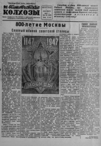 | | ^ * -* V . Г П р^щдар иitTjvéx ш р ан, ивединяйтесь { КОЛХОЗЫ Орган Северного РК ВКП(б) и райсовета депутатов трудящихся Новосибирской области В О С К Р Е С Е Н Ь Е 7 СЕНТЯБРЯ 1947 г. № 6 2 (952) Ц еня 15 к оп . Сегодня, в день 800-летия н аш е й Р од н о й МосцвЫу все т р уж е н и к и советской земли шлют свой г о р я ч и й привет и пожелания дорогой ст о л и ц е , мужественным м о с к в и ч а м и великому С т а л и н у ! 8 0 0 - л е т и е М о с к в ы ГЛАВНОЕ 6ШАНИЕ ХЛЕБОЗАГОТОВКАМ Могуч в прекрасен С о в е т с к ^ Союз— наше любимое социалиь тнчеокое отечество. На его необъя т н ы х просторах ж и в у т многие д е в я т и народов, н к а ж д ы й нз н и х — брат всем остальным, каж дый т р у д я т с я самоотверженно н вдохновенно на общее благо, ведомый п а р т и е й большееасов к светлому я счастливому б уд ущ е му. Опираясь на постоянную я равностороннюю помощь велико* го русского народа, вдохновляет его мужеством, стойкостью, ясным поняманяем происходящих с о бы тий и яссоричесБяхЦперспек- т я в , народы Советского Союза добиваются все н овы х вы д ающ и х ся успехов во всех областях х о зяйственного я к у л ь т у р н о г о строительства. Единой целью, чувством я волей с ов е тс к и х л ю д е й , где бы ни творил советский патриот, на к а ком бы языке он н и говорил, • г о м ы ш и н ы е взоры, его л у ч шие надежды неизменно обращен ы к пл аменному сердцу Родины , ту д а , где я р к о си яю т рубиновые звезды К р е м л я , где действовал м о г у ч * ! го н я й Ленина, где ж и вет I тр у ди т с я наш вождь н учи тел ь товарищ Ста ли н . Для народов страны Советов, для всего прогрессивного человечества Носова является олицетворением нем ер кн ущ их побед социалистического государст ва , символом е го величия я благородства, светочем мира в разума, свободы и справедливости. Вот почему 8 0 0 - л е т н и й юби лей Москвы все народы СССР отмечают , к а к дату большого и с торического и политического знач ени я , к а к подлинный всенародн ы й праздник. Огромное внимани е, которое проявляет к этому знаменательному юбилею население У к р а и н ы н Белоруссия, Кавказа ж Средней А з и и , ло-Фянской ССР и П рибалтий с к и х республик. Многочисленные производственные подарен в честь 8 0 0 -детяя Москвы , ты ся ч и убедительных проявлений р а с т у щей политической а кти в н о с ти т р у д я щ и х с я — все это еще и еще раз говорит о нерушимом морально-политическом единстве и о безграничной преданности народов Советского Союза партии Уеннна-Сталина. Велика ж почетна роль Москвы в истории нашей страны . О тсю да началось образование и развити е р у с с к о го Национального госу дар с т ва . Здесь сложилась вели кая Р усь , в г р о з н ы х б и т в а х отстояв ш а я свою целостность и само- е т о я т е л ь н о с т ь . Моеква издавна Славный юбилей совет ской ст олицы u u x i o a x c j x m j д ь сдаче хлеба г о с у д а р с т в у — г л а в н а я и п е р в о с т е п е н н а я задача ко л хозо в , н с р я д у с у б о р к о й и обмоле том Только ТОТ КОЛХОЗ И т о л ь к о Тот руков о д и тел ь буд ет по нас тоящ е м у в ы п о л н я т ь свой д ол г , к о то р ы й умеет п р а в и л ь н о р а с с т а в и т ь р абоч ую с и л у и не д о п у с т и т р азр ыв а м е ж д у у б о р к о й , о б колотом и сдачей хлеба г о с у д а р с т в у . Г о с у д а р с т в е н н ы е с р о к и по уборке и хлебосдаче п о д х о д я т к к о н ц у , а м е ж д у т е м , м н о г и е к о л х о зы к р а й н е неудо в ле творителъ но с п р а в л я ю т с я с у бо р к ой и сд ачей хлеба г о с у д а р с т в у . Т а к , н а п 