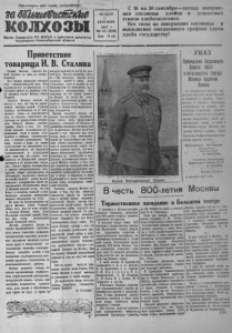 П р о л ет а р и и в с ех "ст ра н , соединяйтесь! шшкше€иста<ие КОЛХОЗЫ О рган Северного РК ВКП (б ) и райсовета депутатоз трудящихся Новосибирской области С 10 по 20 сентября—декада завершения косовицы хл ебов и усиленных темпов х л е б о з а г о тово к . Все силы на завершение косовицы и выполнение ежедневного графика сдачи хл еб а государству! ЧЕТВЕРГ 11 СЕНТЯБРЯ 1947 г. № 6 3 ( 9 5 3 ) Цена 15 коп. Приветствие товарищ а И . В . С та л и н а Привет Москве, ш со е т й лет Р и о я д . ины— в день с е т е оли во ц с е ем н ь а - Вся страна празднует сегодня этот знаменательный день. Она празднует его неформально, а с ч д у у вс в т е в л о я м кн л х юб з в а и сл и уг ув М а о ж с е к н вы ия п в е в ре и д Родиной. Заслуги Москвы состоят не т ж о е л н ь и к и о в жс т т о о м р , иж чт н о аш он е а й на Ро п д р и о н тя ы т зе р м и н ж о д г ы о о г с н в е о т б а о —жд о а т ла мо е н е го о л т ьск и о н г о о и ш н г и е а я с , т . в о и З т я а , с п о л е т у д г ь ф а с р к а о н — ц М у о л з и с с к к т в о о ы в го ско в с г т о о о с р т ж о н и е а т , прежде »сего, в том, что она с р д т о а а з р н л с е т а н в н о о о с й в нов е о д Р й у ин с ы и о м б в ъе е д п д и р н и а е н в н и о и т е я ел г р о ь а с с з у т вом, с единым руководством. Ни одна страна в мире не может р е а й сс н чи ез т а ы в в и а с т и ь мо н с а ти с , ох н р а ан с е е н р и ь е езн св ы о й хозяйственный и культурный рост, если она не сумела осво- ь л д е е и д н ц и н . т о ь с Т т с о я и ль и о к т о о ф т ст е к р од н а а н я л а ж ь , н е о о с б к й ъ и е х д р и а н н з е е д н у р н р о а б я я д в ар е с д т и в н о о , е м ц о е ж н е т т рал р и а з с о с в ч а и н т н ы ое ват г ь ос н у а в н о о з - м хо о з ж я н й о с с т т в ь ен с н е о р г ь о езно р г о о ста к , у н л а ьт * у о р з - м з г а а е в ж и М н с о о и с с м к т о в ь с ы т у и т с . о в И с е т р с о т ж и о д т р е и н ж ч и т е я о ск м а с , в я о ч е т з й о ас о л н н у е а в ц б а и ы н а л н т а о о г р о о и м г о о с с т с у а о д е з а т д р с а с я н тв и а о я сн н о а ц во е Р н й у тр с и и ал . и и н з и о с л у Н г е ! »т М и о м ск н вы е исч п е е р р п ед ываю Ро т д ся ян з о а й . После того, как по воле велико- ге Ленина Москва вновь была о н б ы ъ , явл он ен а а ст с о т л а и л ц а ей на з ш н е а й мен Р о о с д ц и е м новой Советской »похи. Москва является теперь не только вдохновителем строитель, ства новых советских соцнадыо- » ш к и о х ном го и с ч п е о с д к с и т х во пор к я & д п к и о т в а , д з а а -г м о е с н п и од в * ством труда и отвергающей эк - сплоатацию человека человеком. Москва является вместе с тем г ж л е а н ш и а я та т е р м удо о в с о в г о о бо ч д е и л т о ел в ь е н че о с г т о ва дви о т капиталистического рабства. Москва является теперь, не только вдохновителем стрежтельт н > е ы ав й с н т у т р ю е у м д зг . р з а М н б а о о м с т к е н н в у а е ю м яв п л л я б а е о т т р у с ь я б з ы а вм р в а е се в с х трудовых людей в мире, всех угнетенных расе и наций за их о то св к о р б а о т ж ии ден и ие и о м т пе г р о и сп а о л д и с з т м в а а . п Н лу ет сомнения, что без такой иолити- кв Москва не могла бы стать центром организации дружбы Еа >одов и братского их еотрудни н ч о е м е М тв о г а с о к с в в у а да н р а с ш я т в е в л м е я . е м т н ся огон т а е ц п и е о р н ь аль н е только инициатором ства нового быта т с р т у р д о я и щ те и л х ь с я столицы, свободного от нищеты и прозябания миллионов ни неимущих ни безработных. Москва является вместе с тем образцом для всех столиц мира в этом отношении. О ш ск д и и н х о х й и с и то а з л м и 