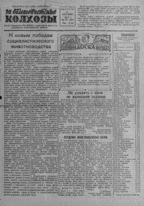 ' Пролетарии всех стран, соединяйтесь! шШшшеШтаЫ КОЛХОЗЫ Орган Северного Р К В КП (б ) и райсовета депутатов трудящихся Новосибирской области К новым победам социалистического животноводства ВОСКРЕСЕНЬЕ 21 СЕНТЯБРЯ 1947 г. № 66 (956) 15 кос. З а 19 с е н т я б р я к о л х о з ы р а й о н а с к о с и л и х л е б о в 3 2 3 г а при з а д а н и и 5 в 7 га, с д а л и х л е б а г о с у д а р с т в у 6 9 4 ц е н т н е р ’ . и м е е т е з а д а н и я 1329 ц е н т н е р о в . В с е г о в р а й о н е план к о с о в и ц ы х л е б о в в ы п о л н е н на 75 ,2 п р о ц е н т а , план " х л е б о с д а ч и — н а 26 п р о ц е н т о в . Т а к и е т е м п ы я в л я ю т с я к р а й н е н е у д о в л е т в о р и т е л ь н ы м и . Н а ш р а й о н п о п р е ж н е м у о т с т а е т в с о р е в н о в а н и и по в ы п о л н е н и ю п л а н а х л е б о з а г о т о в о к о т д р у г и х р а й о н о в о б л а с т и . С е н т я б р ь — р е ш а ю щ и й м е с я ц в в ы п о л н е н и и п л а н а х л е б о з а г о т о в о к . О т т я ж к а с д а ч и х л е б а г о с у д а р с т в у я в л я е т с я п р е с т у п л е н и е м п е р е д Р о д и н о й . В печати опубликован У к а з Президиума Верховного Совета СССР «О присвоении звания Ге роя Социалистического Труда и н а г р а ж д е н и и орденами и медалями СССР колхозников, рабо тни к о в совхозов и к о н н ы х заводов за д о с тиж ени е высокой п р о д у к ти вности жи вотноводст ва». Этот У к а з имеет огромное значение для обеспечения нового подъема социалистиче ского животноводс т в а . Большевистская п а р т и я и советская власть высоко ценят самоотверженный тр у д советстких людей. У на с , в СССР трудовой героизм с о в е т с к и х к р е с т ь я н ц е н и т с я т а к ж е высоко , к а к боевой п о д ви г на фронте. Весною т е к у щего года был опубликован У к а з Президиума Верховного Совета СССР о присв оения звания Героя Социалистического Труда и нагр а ж д е н и и орденами и медалями СССР колхозников, работников МТС и совхозов за получение в ы с о ки х урожаев п ш е н и ц ы , р 'ж и , ов п а р т и и , заведующим районными отделами сельского хозяйства, гл авным з о о т е х н и я м и главным ветеринарным врачам рэтих отделов, а т а к ж е рабо тни кам районных сове тских , п а р т и й н ы х и сельскохозяйственных органов . Одним из в а ж н е й ш и х условий получения установленных Указом наград являе тся выполнение г о сударственного плана развития животноводст ва в целом по колхозу и совхозу по всем видам с к о т а , а т а к ж е выполнение к ол хозом плана обязательных п о с та вок государству сельскохозяйств енных продуктов, а совхозом— плана сдачи государству п р о д у к тов животноводства и полеводства. Т а к им образом, У к а з создает бл а гоп рия тны е условия не только для роста до стиж ений отдельных п ер е д о ви к о в , 'н о и для массового подъема животновдетва в целом по к о л х о з у , совхозу и району. П о п р е д с т а в л е н и ю п е р в и ч н ы х п а р т и й н ы х о р г а н и з а ц и й и с е л ь и с п о л к о м о в н а р а й о н н у ю Д о с к у П о ч е т а з а н о с я т с я п е р е д о в и к и у б о р к и у р о ж а я и с д а ч и х л е б а г о с у д а р с т в у : 2 7 . Ш е р у к о в а У л ь я н а З а х а р о в н а — член колхоза «Кра сны й О ктябрь» , Чебаковского сельсовета, литовкой с граб кам и п р и норме 0 , 4 0 г а вы каш ивает 0 , 0 5 га . 2 8 . К у з н е ц о в П е т р И в а н о в и ч — член колхоза « К р а с н ы й Октябрь» , Чебаковского сельсовета, комсомолец,' на перевозке зерни на з а г о т п у н к т выполняет дневную н о р му на 1 3 0 процентов. 2 9 . Ш у х а й к и н а Н и н а А л е к с а н д р о в н а — член сельхоза