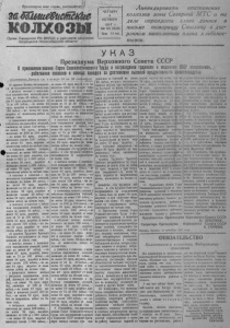 П р о л е т а р и и в с е х e m p a n, с о е д и н я й т е с ь ! заШ т еёисййкие КОЛХОЗЫ О р г а н С е в е р н о г о Р К В К П ( б ) и райсовета депутатов трудящихся Новосибирской области Ч Е Т В Е Р Г 2 О К Т Я Б Р Я 1647 г. ‘ № 6 9 ( 9 5 9 ) Цена 15 коп. Ликвидировать отставание колхозов зоны Северной М Т С и на деле оправдать слово данное в письме товарищ\у Ст алину о д о с рочном выполнении плана х л е б о п о с тавок. У К А З Президиума Верховного С овета СССР О присвоении звания Героя Социалистического Труда и награждении орденами и медаллш! СОР колхозников, работников совхозов и конных заводов за достижение высокой продуктивное; животноводства (О кон ч ан и е .Н ач ал о см. в номере 68 от 28 сентя б р я) б) орденомЛенина награждают- не менее 89 нроц. жеребят от ко с я за выращивание до конца года: в конных заводах с конюшен н н щ е ы и е и х 9 с 7 н о е д п е р р м о ж ц ен а .ж в ее а е е р 4 м е 0 бят к л , о о и б ш м ы а е л д ю , е —щ й и ,и н х м е е м ю о е т 75 до 100 кобыл,— не менее 93 проц. жеребят и имеющих свыше 100 кобыл,— не менее 90 проц жеребят от количества кобыл на начало года; в племенных конных заводах с табунным содержанием лошадей, имеющих не менее 150 кобыл,— не менее 98 проц. жеребят, имеющих от 200 до 250 кобыл, — не менее 95 нроц. жеребят, имеющих свыше 250 кобыл,— не менее 92 проц, жеребят от количества кобыл на начало года; в табунных ш ш ы х заводах, имеющих не менее 500 кобыл,— ю н не е щи м м х е е н н о е т е е е 60 9 9 0 8 5 ц д п р о р о о ц 1 ц . .0 . ж 0 е 0 р ж е е к б р о я е б т б ы , я л т и , меи имеющих свыше 1 . 0 0 0 кобыл, личества кобыл на начало года; ш им ен е в ю ны щ к м о и л х хо с н з о а е д х ер м и ж ен а с н е о е и в е х м 3 оз 0 ах к л о о с б ш ы к а л о д н е ,—й ю , н ю о щи м х ене о е т 9 3 3 5 д н о роц 4 . 0 же в р < е > б бы ят л, , — им н е е м щ е и н х ее с 8 вы 8 ш п е ро 4 ц 0 . к ж о е б р ы е л б , я — т н и е м им ен ею ее 84 проц. жеребят от количества кобыл на начало года; ю ны щ м в их с к о о н д л е е х р о ж м за а е х н н и е и е ем с 5 о 0 в л х о о ш з к а а д х о е б с й ы , т л а , и — б м у е н н е м щ е и н х ее о 9 т 5 75 про д ц о . 1 ж 0 е 0 ребя к т о , бы и л м ,— ею не н м щ ч е е е и е с н х т е в 8 с е а 9 в 9 ы к 2 п ш о р н б е о р ы ц о . 1 л ц 0 н ж 0 а ж ер е к е н р о б а е б я ч б ы т а я л т л о о ,— т и г н о и е д к м а о ; е м л ю и е л н е а с г т г р ь ) а » ж м д е и а д ю а « т л З с я я м а и т з р « а у З д а ов в т о р ы е у р д а о о щ в т у л и ю и в ч а д н и о и е» е б до конца года: не менее 92 проц. жеребят от ющих н н ы е м в ме с к н о о е д н е е н р ы ж 4 х 0 ан з и а е в к м о о д б а л ы х ош л с , а — де к н й о е , ню и ш м е е н количества кобыл на начало года н и ю ме ш в ю е щ н к н и о ы л х х м о н з с е а о х д м е е и р н ж е а е с н о и в 3 е х 0 м оз л а к о х о ш оы а с д л е , й — к , о не менее 97 проц. жеребят, имеющих от 35 до 40 кобыл,— не менее 93 проц. жеребят и имеющих свыше 40 кобыл— не н ч м е ы е с н т м в е в е а с к о о 9 д к л 0 е х о р о б п ж ы з р а а л о х н ц и н . е и а м ж с о е н р л в а х ч е о о б а ш л з я а а о т д х е г о й с о т , д т а к а и ; о б м л у е и н ющих не менее 50 кобыл, — н е м щ е и н х ее от 98 75 пр д о о ц. 10 ж 0 ер к е о б б я ы т л , , и — мею н е щ ч м н е е е и с е н х т е в 9 е а с 2 в 9 ы к 5 п о ш р б е о н ы ц р л . 1 о 0 ц н ж . а 0 е ж р н е к е а б о р ч я б е а т б л ы я о л т , о — г т и од н а и е к ; м о е м л ю и е в) орденом Трудового Красного щ н З ы н и а м в в м ан е с к н и о о и е д н е п р д н ы ж о а х а г н к р и о з а а н е ж в м ц д о а а д л ю а о г х т ш о с д а я с а д ; е з к й а о , н и в ю м ы ш е р ю е а н щих не менее 40 кобыл, — не м щ е и н х ее от 93 75 п д р о оц. 10 ж 0 ереб к я о т б , ыл и , м — 