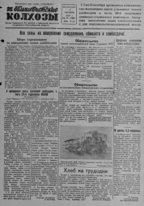 П р о л е т а р и и всех с т р а н , с о е д и н я й т е с ь ! тШтеЯисШсШ КОЛХОЗЫ Орган Северного РК ВКП(б) и райсовета депутатов трудящихся Новосибирской области В О С К Р Е С Е Н Ь Е 5 ОКТЯБРЯ 1947 г. N2 70 (9§0) Цена 15 коп. С 5 по 15 октября проводится к ом сом ол ь ско-молодежная вахта усиленных темпов хлебосдачи в честь 29-й годовщины ленинско-сталинского комсомола. З а в е р шим выполнение плана хл еб о за го тово к в дни комсомольско-молодежной вахты. Все силы на завершение скирдования, обмолота и хлебосдачи! Шире соревнование за завершение плана хлебосдачи ма Ис В то ер р х и о ч в е н ск о и го е У С к о а в зыета Пр С е С зи С д Р иу о а д п л е р ин и и с с т в и и ое ч о н е р и с д к и е о н г а з о м ва и Т н р и и у и д м а е Г д и е а р л о о я я мн и а С г о р т ц а е жх и , в к в о т о р о т я н т о о т в в л о с и д е ч ч м и ес т к к с о я и л х н хо а Ф з е н п р и о мл к я а а х м х , , и я к с н а н к а о ж в г ы и о с о ко ценится труд, как заботливо относятся партия и правительство к советским людям. На ату неустанную заботу ч н т к а ии о юл ч ки е х т с о к з с н о н е о л г и в о ь кы х и м о с о з и а р п р е о т в д к е н ъ о л о е л е в м х й а о о н з ми Ф н я е и . с д ц о о ы цК р и о о а л о в л т х с и к в о е с з о т го я бр се я ль в с ы о п в о е л т н а ит о ь бя п за л л анись хл к еб 1 о 2 за о го к т к о о в в ок б и оро п т р ь и с з я зал з и а вс ч е е х сть кол с х в о о з е н г и о к о л х о з а , сельсовета и района. з н ыи К ть 1 о п 2 б л о с а л к н у т ж я х б и л р в е я а б е о о м з б а ы я г з е о а т л о и в с о С ь к ев в к е ы о р п л н о х о л о й л т М а ейТ С р В е , е шр а и х- л К и к р о а л с х в н о ы о з п н я о ир л к с н к и и о т г с ь о ел п с ь л е х а л о н ь за с х о р л в т е е е бозаготовок на день раньше, чем к в сч е о и т л а т х —а о т з ь н11 с и я к о и кт с Фя г е б о д р с о я у р д о п а в о р с л с к н т о о в г с о о т м ь с юе и л р ь т с а е о с м с мв а а у м юы д м г а л н а н в в о ын г у п о юол в ни ч п а т и с ь с т ь ь м в е о т б ор я т з у о а ю в т а е р н л и ь щ с ст а у Сталину, Сельск ая молодежь охвачена патриотическим стремлением досрочно выполнить план хлебоза готовок. Чтобы лучшими подарками Родине всретить 29-ю годовщину В Л К С М , комсомольцы решили с 5 го по 15-е октября пп ве р о р в о ш ве х е с л н т е и и б я о в с п а д л х а е т ч н у и а у и с х и л л д е е о б н б о ни з ты а ь г х о ся то т в е з о ма к по колхозам района. ка Д о е т л о ст ч а е р с о т г и о к д а о ж мдо а г л о ог к о о , лх в о с з е н г и о с ел ьск о го актива работать в »ти дни каждому за двоих , за троих и в п а л н е анищ а е е з х а л ш е и б д р о о е с с д р р а о а ч ч з и н в . е о р е ну з т а ь ве с р о шр е е н в ин е оОбязательство членов сельхозартелей зоны Северной М Т С Мы М Ы КОЛХОЗНИКИ И КОЛХОЗНИЦЫ зоны Северной МТС, трактористы I ког к о омб в а о й о н д е у р шы евл с ен чу ия вством обс г у л д у и б л о и о в н б ы е я т х за а т п о е о л л ь з е с а й т в в е о ршФ т е е р д н у о в ж р и о е в н с п и к л о к г а о о в на к с о е х л л л х ь е о с б з о о сдачи государству к 12 октября. шая Сей г ч о а су сп д е а ре рс д т н в & е м н н н с а т я о з и а т дач бо а л —ь б ж с ы а г с о я т с р у и е д е а с р в с з о т а е в в в о е р м р е ш м п и е о т н ь х н л о е р б у о б а п о сс о р с ч к и т у а та вк т у а ь м р ся о , дать больше хлеба Родине. На решение этой важной задачи мы мобилизуем все наши силы я возможности. Досрочное выполнение плана хлебозаготовок На имя товарища Сталина обязуемся к 12 октября , рассчитаться полностью с госу-| наступили рапорты ряда облас- дарством по хлебосдаче в к 30