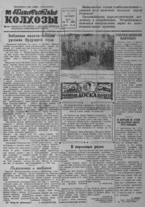 Ш М К а я а С З Н а З А Б О Л Ь Ш Е В И С Т в К И Е К О Л Х О З Ы 12 октября 1947 г. № 72 (962 КОМСОМСМЬСКАЯ ж и з н ь В ЧЕСТЬ 29-й ГОДОВЩИНЫ ВЛКСМ Перевыполнили график хлебосдачи Комсомольцы колхоза ный коммнуар» Федоро « в К с р ко а г с о сельсвоета в дна вахты усилен ной хлебосдачи государсвту ор г л а о я т яз ь о бу ва п ли до к б р ил уг и л сь осут еж о е ч д н н у ев ю н м о о г о вьшолвеиалграфика хлебосдачи В первый день вахты сдано го сударству 51 центнера вместо задания 40 центнеров. Комсомо лец Товарский работал один за двои! на перевозке верна. Закончили скирдование В первые дни вахты в колхо- юзом сдано государсвту 813 зе «Краевая звезда», Остяцкого центнеров зерва. Комсомолец ве- еельсовета, зарнчево еккрдояа- i совщккИлья Бузюргин коптро- ние. Сейчас комсомольцы вместе j лирует качество молотьбы и ох со всеми колхозникамиработают! рану урожяа от потерь. днем и ночью на молотьбе. Кол | Д . П Е Т Р О В А . М о л о т ь б а и хлебосдача проводятся круглосуточно ник К ам ом и со с м ел о ь ль х ц оз ы ар в т м ел е и сте « с Кр к а о с л н х ы о й з н а ц ме н » , Мало-Карагаевского сельсовета, развернули соца лис- с т ч у и а д н ч а е и р е с ст к м в о о у л е о с к о ть р б 1 е ы 5 вн о и о к в т х а я л н б е и б р е я ос —да к з ч а и к о о к н г ц о о у н вахты в честь 29 й годовщины ВЛКСМ. В этом колхозе создана ком сомольско-молодежеая бригада для завершения скирдования. В 'дна вахты эта бригада под ру- | ко8одством Захара Митрофанова | выполняет двойную норму Звеньевая Мария Александре ва и машинист молотилки Сер гей Шинкевич обеспечили кру глосуточную молотьбу. Возчики Анастасия Пшеничная, Анна Андреева, Генадий Першеев на перевозке зерна делают по 10 рейсов. Е . Ч А Л К О В . По советскому С о ю з у Работа кружка начата л н е о . н в М и , — о ю л п , о—р д е г о д о м с в т у о о р и и т с л ов т у е о к т в р с а к е р о п им и щт у ь пЖс о и д к л а о у и м о г ущ е с т в о социалистического в с п е о о т в л с е ь к т з о с о г к в о о а г т о ь об д с щ т в р е и с о ж т я у в , ща п и о е л д н л о я с с и т л н ь ыю ово с и г о с о невиданного расцвета н ашего благосостояния и к у л ь т у р ы “ . Для осуществления этих задач о ч н ле е нывошВ л Л и К С в М со о с р т г ав низ к а р ц у и ж и ка Р а п й о им з ы П уч р и е о н в у и е с ю д т е а н в К о а он д В с в т Л а и К т за С у н цМ я и т . и и , я. пр И ог з р у а ч м е но 5 глав доклада товарища Сталина о проекте Конституции Союза С С Р . М. Ш Е В Ч И К , р у к о в о д и т е л ь к р у ж к а . В г о р о д а х , лах началась п р о а д й г о о н т а о х вк и а с е к предстоявши избирательной кампании в местные Советы депутатов трудящихся. Тысячи агитаторов вышли на бывшие избирательные у н ч о а у ст ж к е и. св В ышМ е аке т е ывк ся е ч п и р о б в е е с д е е д о в с е т в т и с ы т к б у о о ц й р и а и х в , , л о а р с д т С о и т с а т л и з и а ж н е 3 с н 0 к и о я й л х е К т. с о о н В С ле т , али К н р о а , ма Г т о о р р л с о к в е ке, и М а д р р и у у г п и о х т го ах рода н х ача и ло н сь асе о л б ен ор н у ы д х ов п а у н н и к е с а р я г а и ет л т с п у я ч у шнк и л т е и о т в п е . р о * Д а м т л е у я щр е а н н , и и х я п , о й т п а в о к о д а д т б я ыи т. * * ханР о ас в т ц у е т в и це шхо и в р , ят п с р я ед р п яд р ыият с и т й а , д н в о о о в д б а и с н т в в и а е и ю н щн з ыа их х д с о я у с с т к п о р е й у х н п о у н в ю ы в х вс п с т о р р р о е и е ч в з у 3 т 0 яб й рь г с о к д о о й вщи С н о ы циа В л е и л с и т к и о ч й еск О о к й революции. ч нп а о и л Б л к н а а о и к в лы г и о н й 1 д с 1 а к з м и а в в й е ыс о я п