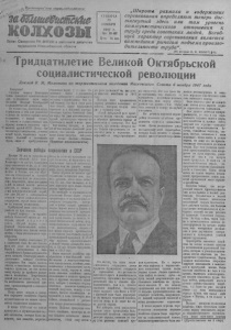 З А Б О Л Ь Ш Е В И С Т С К И Е К О Л Х О З Ы 1 5 н о я б р я 1947 г . № 8 1 - 8 2 (971 -9 71) Тридцатилетие Великой Октябрьской социалистической революции Д о к л а д В . М . Молотова на торжественном заседании Московского Совета 6 ноября 1947 го да в о ктяб р е месяце л е н и н- 1 ви л о с ь . Победа над { П р о д о л ж е н и е . Н а ч а л о н а 1 стр). гр а ж д а н с к о й в о й н ы и и н т е р в е н - ной борьбой с и а с цивилизацию циа ц т е ч ен и е двад ц ати л е т . | Е в р о п ы от ф а ш и с т с к и х погрому ж е гр а д с к ая п р о м ы ш л е н н о с т ь п е р е - фашизмом в Европе я последовав- вы п олнила свой п л а н з а весь ш и й за э т я м разгром вовек Н ападение ф аш и стск ой Г е р м а - ' н и и прервало м и р н ы й период н а ш е го строи тельства. Н а ч а л с я ч е т ы р е х л е т н и й период В е л и к о й О те ч е стве нн ой во й ны , к о т о р ы й был ве л и ч а йш и м и с п ы т а н и е м для Советского Союза, т а к к а к э т а война, по с п р ав е д л и в ом у з а м е ча н и ю товарища С т а л и н а , была «самой жестокой и тяж елой и з всех войн, когда- либо п е р е ж и т ы х в и ст ории н а шей Р о д и н ы » . Все мы п о м н и м , к а к и е неимоверные т р уд н о с т и пе реносил н а ш н а р о д е а т и годы. Достаточно с к а з а т ь , что г и т л е ровской о к к у и а ц и и подверглась с о ветская т е р р и т о р и я , население к оторой до войны д о с т и г а л о 8 8 миллионов человек. На этой т е р ритории производилось 3 3 п р о ц е н т а промышленной пр о дукци и всей с т р а н ы . Г и т л е р о в ц ы о к к у пировали т е р р и т о р и ю , посевные площади к оторой составляли 4 7 п р о ц е н т о в п о с е вн ы х площадей Со ветского Союза и где н а х о д и лось около полови ны в се го и о г о - | т а е м по плану новой л о з ь я с к о т а . За вр емя войны ной п я т и л е т к и . Товарищ щмков. В этом вел икая заслуга советского народа перед и с т о р и ей человечества». В признании того факта, что с о в е т с к и й н а р о д с п а с ц и в и л и з а ц и ю Е в р о п ы от фаш и с т с к и х по громщиков народи всего мира видят т а к ж е п р и з н а ние и с к л ю ч и т е л ь ны х з а с л у г вождя коммуни зма и великого полководца Советского Союза Иосифа Ви ссар ионови ча С т а л ина . (Бур н ы е , п р о д о л ж и т е л ь н ы * а п л о д и с м е н т ы ) Н и л е млогоиацчональЕОЭ С о ветское государства оказалось к р е п к и м а н е с о к р у ш и м ы м при всех и с и ы т а н а я х войны. В е л и к ая Отечественная война еще больше сплотила советские народы в борьбе за завоевания Октябрьской революции, в борьбе за с ч а с т л и вое б у дущ е е наш ей Родины. После о ко н ч а н и я войны Советский Союз вс т у п и л в новый не раод своего разв ити я. Уже начала прошлого года м ы рабопосяевоен- С т а л вн было э в а к у и р о в а н о из з а па дны х и ю ж н ы х районов и восстановлено т а к определил наши новые задача: с Основные задачи нового п я т и н а востоке 1 . 3 0 0 п р о м ы ш л е н н ы х летнего плана состоят в том п р е д п р и я т и й , ^работа которых была необходима для удовлетворен и я н а с у щ н ы х н у ж д ф р о и т а и ты л а . В т о р о й период в и с т о р в и Сове т с к о го Союза, о х в а т ы в аю щ и й годы В е л и к о й Отечественной во й н ы , еще больше п о к а з а л о кр е п ш у ю м о щ ь и п р о гр е с с и в н у ю с а л у наш е го многонационального чтобы восстановить р а й о н ы с т р а ны , довоенный у р о ве н ь в о с т и и сельского. постр адвшие во сстанови ть п р эмыш де н - х о з я й с т в а и затем пр евзо й ти »тот уровень в более ила менее з н а ч и т е л ь н ы х р а зм е р ах » . Поставленные па рти ей и правительством з