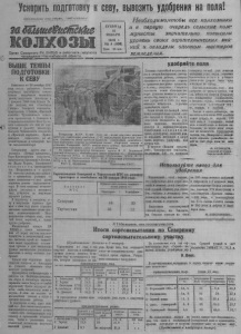 Ускорить подготовку к севу, вывозить удобрении на пали! П р о л е т а р и и всех с т р а н , с о еОЪняйтпеаь'- тИише$иаШ ке КО Л ХО ЗЫ О р г а н С е в е р н о г о Р К В Н П ( б ) и р а й с о в е т а д е п у т а т о в т р у д я щ и х с я Н о в о с и б и р с к о й о б л а с т и Н е о б х о д и м о ,чт о бы все к ол х о зн и к и и в первую очередь сельские к о м мунисты значительно повысили уровень с вои х агротехнических з н а ний и овладели опытом мастеров зелгледелия. С У Б Б О Т А 10 Я Н В А Р Я 1948 г. № 4 ( 9 8 8 ) Цена 15 коп. В Ы Ш Е Т Е М П Ы П О Д Г О Т О В К И К С Е В У Решеаием от 28 декабря 1947 года сессия районного Совета депутатов трудящихся второго | Созыва потребовала закончить ремонт колхозного ппвептаря к , 1 февраля 1948 года.Однако Та кие колхозы, как «Советская Сибирь» Северного сельсовета, председатель т Блинов, «Красный | охотник» Чувашинского сельсо- \ вета председатель т. Санников и большинство колхозов Ново-Тр иц- кого сельсовета все еще не при ступили к ремонту инвентаря. Колхозы Чебаковского сельсовета и «Красный партизан» Прибе- линикого сельсовета, р т е и мо с н е т л и ь р х о о в з а и л н и ве и нт ч ар ет я в . ертой не час о тСовершение другое дело в колхозах «Вторая пятилетка», Верх-Красноярекого сельсовета, председатель правления т.Иволин, им. Карла Маркса, Биазинского с е л ь с о в е т а , председатель тов. Подрядчиков и в других с 1 я 8 к в ол о х д о и з н а а х ко р в а ы й х она, у н сл а о хо ви д я я х щих с о всеми колхозами—в них давно т з я а а щ р к е о я м н . ч у В ен э г р т о е и т м х о о в н я к т т о с л я хо с к з е а л х ьх в п о е о з с и - е н н н а н в с е е т н м о у севу, и борются за получение высокого урожая. в ж у ая В и в п п о э о д т л г о у о м ч то е в н г к о и а д и у к и в м в ы е е с е с о т е к н о н о г е г о р м о у м у н р с о о е е з н н и а х чени а е гр в о ы м п е о р л о н п е р н и и я е ти п й л . ана з Н и а м д о п ч о и в й сем п е о с м т е н т о , с п о е б р и е р г а н ть ой з , ол а у, т п а т к и ж е другие удобрения. Февральский пленум ЦК ВКП(б) в своем о н х д о и » з и яй п с « о т О ст в а а м ви е в л ра п х о о д с п н л о о е й д в ‘ о и е е м з н а п н о ы с с в е й т л а а ь ж п н с е о к н р в о е и л г й о е ш ск и и х х з о а р д г а а ч но п в ар в ти д й е н л ы е х повы и ш со е в н е и т я урожая значительное увеличение б в се р н д е е а н О с т и е д е н й н л . и а и к я о ко в е л щ х п о е о з ч о о в в т у де и м л е ь с н т ы н е ых п у р д е о д бригадиры не уделяют внимания сбору местных удобрений. Проведенная взаимопроверка в колхозе им. Калинина показала, ч ти то ров сб ан р ы уя п и лох и о н . в Х е о н м т у а т р ы ь со от с р л е а м б о о н й п м е е р х е а в , яз с к л о а й бо . П з л ак ох р о еп о л т е т н я ы нут н ы ожи ле у плугов. В этом же колхозе не по-хозяйски готовят и тягло к весенне-полевым работам. д ко ы В м й со п ч м о а о д с л г . о ь т ц Д о е е в в л к о и е ч к е к о с л т с х и е о в з к у н о о м д г м о о у р н а ог и кт с к т и о а в в ж а , г — от о о б в е к с у печ и ить пр с о в в о е е д в е р н е и м е енн в у е ю сен п не од го сева, чтобы в решающем году сталинской пятилетки получить высокий урожай. Т а т а р с к а я А С С Р . В 1947 году на полях колхозов впервые д р о а мбо . т Нал е идав с н амо о н х а од з н а ыво е д ко п мри б б айы н л ыи в „ о С д - и 4 т " е , л в и ыпу с ща е м н о н х ыод е н Кы а х аан к с о к ми б м ай з н ав о о в . Они поделились опытом эксплоатации новых уборочных машин в у сло ви я х Татарской А С С Р , внесли много ценных предложений по улучшению отдетьных узлов и деталей машины. 