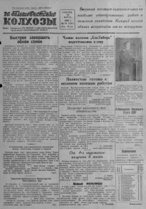 Пр олет а ри и всех ст ран,_ соединяйтесь! мШте$истШ& К О Л Х О ЗЫ Орган С еверного PH ВКП (б ) и райсовета депутатов трудящихся Новосибирской области С У Б Б О Т А 20 МАРТА 1948 г. № 23 (100?) Цена 1Ь « п . Весенняя посевная кампания одна и з наиболее ответственных работ в сельском х о зя й ст в е . Каждый к о л х о з обязан встретить сев во всеоружии. Быстрее завершить обмен семян Приближаетсвяесенний сев— решающая пора в получении н вы у со во ко в го сео у р р у ож жи ая и— . В д с ол тр г ети к т аж ь д в о е г с о колхоза. Однако в нашем районе еще мпогие колхозы не готовы к севу. Если инвентарь и сбруя в о т с о н в о к в а но с м ем п я о н дго к то с в е л в е у ны и , о т б о ме п н одго н е к вы он е С д п и д р а ц о ч и а х о о н д в н и ы т х о к б с р м е е а м н й ян не н п е н л к а о - о х н о д . с и о ц р и т о о н ных семян по всхожести под угрозой срыва. Из 1925 н на еров п , п ун о к дл т е ы жащ з и а х гот о з б е м рн ен о у, с т д ц о а л е н ь н о к т о 8ЬЬ, но в обмен колхозами не получено до сих пор ни одного центнера. Особенно затягивает сдачу зерна в обмен на семена колхоз «Новый путь»,Верх-Красноярско- о р г б о а ме с н н е е л к 1 о ь н 0 с д 0 о и ев ц ц т и а е о н . н О т н н н ы е и р х з ов с 2 е , 3 м а 1 ян ц с к е д н о а л т л х не о в з «17 лет Октября» этого же сельсовета из 32-х центнеров подлежащиохбмену, не сдал ни н л о о д е н г н в о и г а я о рд ц т е о е е н в ц . т » н Я , е к р п о а в р . е л д е К с в о ед лх а о т и е з л ы ь « « П К п а р р м а а с в тя ь Чапаева», председатель правде шш тов. Виноградов не о ли бм и ен п у о , ло я в в и н н о ы з с а е де мя р н ж п и о в д а л ю е то жа б щ м и ен х сда семян, чем ставят под угрозу проведение весен его сева колхозах. л п р е о а н й л и Н о н н й я е н к ю о о т к г т о о о л р х С ы у о к о з е в о а е в з п т а р а н е у и д д п я с о е е р д п н а у о т т е т и л ао н с и в п е о п л т р к р а в о у в м ы а д м н я е а щ , нн и п о х е о с д я л з е е о р ж н а с о щ у . е ш г З о к а е г . о о в т б л з м а р ж е ен н н о у о , г п о р на и з н с е е и р мает для обмена зерно не ниже 16 процентов влажности. 9то з ч л н а е е а н в е и , т я к к . а О о ж г д д д н а ы ак й о по п е д р с в е т о д ь д с ы е н д е а с те м в л а ь л л а о п ж р с н а л в ы у м зерном возвращаются обратно в к н о и л я хо к з о ы л . хоз П а ре « д К се р д а ат с е н л ы ь й ф п а р к а е вл л» е , Ново-Елизаровского сельсовета т з о ну в. ю Хрущ су ев шил н к е у исп д о л л я ьзуе п т о к д о с л шу хо к и зернаподлежащего обмену на с н е ы м С е ен е д а й н . ч и а д с о в ра о сп с у та ти вш ц и ы ес и я весе с н ч не ит го ансева надо принять срочные меры н к п о о он о д в р и с г ц х а о и н ж о и н з е н с ац ы ти и х и и с о е б с м о м я р е н т н о а в н ы а е вс х е с о х е р м ош ен н и а е е . Члены колхоза им.Челюскиневц в н м ы о е г д о е к л о п и л о л хо л и ь зн з н о о а г в о ан в т и ы я я в . г о л з а ку О и н с и к е о м р я о н в реш л к и и р л о ч и обеспечить себя хорошими семе, нами в ближайшие два-три дня. Райотедлу сельского хозяйства б к Н в ы а е а л д в и о пу д о н о б о к к м б е у ты е м н сп ен с е з ч т е аг ы м и о т т ян ь з о е к р п о н к о л о о с х н е о п т з в р р н а и о м ы ль х о , в тп ч ы у т к С д о а ' чествах зерна на основе резульа т н а о т й ов се п м о е л н н н о о го й л а а н бо ал р и а з т а ори к и о . нтроль «Что посеешь,то и пож нешь»—говорит народан* пос ловица. Поэтому все семена д* п д н о ы о м се в в з а вен д к о е а л . ж ж д н о ы м бы к т о ь лх п в о з» д , гот в ов к л а е ж Обмен рядового зерна на се менное—дело срочное и его нель зя откладывать ни в