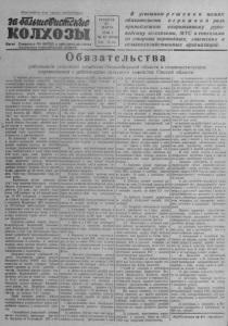 П р о л ет а р и и всех гстран, соединяйтесь! мШ&шеШстснке КОЛХОЗЫ © р г а н С е в е р н о г о Р К В К П ( б ) и р а й с о в е т а д о 1 у т а ю в т р у д я щ и х с я Н о в о с и б и р с к о й о б л а с т и В у с п еш н ом р е ш е н и и н а ш и х обязательств о г р о м н а я роль принадлежит оперативному р у к о водству к о л х о з а м и , М Т С и совхозами со стороны партийных, совет ских и сельскохозяйственных о р г а н и з а ц и й. и » п и ш ею нигивш* '» г о с Ш Н В Н Н П в 1 Я Н Я И Н Я Ш Ы М Н 1 й 1 Я И |< в И И §Ш 5 М И М И 0 И М вМ В 1 С У Б Б О Т А 27 М А Р Т А 1948 г. № 25 ( 1 0 0 9 ) Дева 15 коп. О б я з а т е л ь с т в а работников сель ско го хозяйства Н о в о си бир ск ой области в социалистическом соревновании с работниками сель ско го хозяйства О м с к о й области С великой радостью и гордостью за свою Родину отмечает советский народ замечательные успехи первых двух лет послевоеннойсталинской пятилетки. Эти успехи показывают всему миру огромные преимущества нашей социалистической с п и и с т те а м ли ы В с м ти е х с о ч т з ес е я к й о с с й о тв в а с с е и пе с м р т е е с д м ов о е п й т р с . к о и г м нивш на е р йк о а до м т ж с р к е о н у г н д о я ы щ е П и л е и е с ся н т у о с м р е а и л ч ь е с Ц с к к К о и го м В р К е х ш 1 о 1 е з ( я н б и й ), е ст м ва д , о ф б е и в в л р и о а с о л ь р ь в у г н з 1 и ы а 94 ш , 7 п с е о а й р г в о о х т б д о и у з л я ы а с , з т и и н м а , ч а б п и ш р л т и а а е н г в л н и о ь д о т н - а е т ы р л р я х ь ак ст у т о о в с г а п р рн , о е ы м хо н е в о с й с . д е та л К п н а о о ц л л м и и х о и о в истекшем году серьезный шаг вперед в решено задач послевоенного подъема полеводства и животноводства. Но сравнению с 1946 годом колхозы н совхозы расширилипосенв ые площади яровых зерновых культур па 156.500 гектаров, перевыполнили государтсвенный план хлебозаготовок и сдали сверх плана 300 тысяч пудов хлеба. Досрочно и с превышением выполнен план заготовок семян масличных культур'. Выполнено о р б а я б за от те ка льс к т о в т о ор п ог о о пр д о о и с з т в и о г д л с а тв 4 у 11 м ,3 асл т а ы , с в я ы чи в п бы у е д н ч о и ь в, 1 р 9 п ы 4 р б 6 ы ев . г ы од с а и , вн П а ер 2 е 5 вы ты по ся л ч н п е у нп д л о а в н у д р о о Значительно лучше работали в 1947 году машинно-тракторные станции области, выполнившие план тракторных б т р о о а р т б к о . т е 7 н 9 3 а 5 М 8 1 Т 0 С г 5 е в кт п ы а р п р о о о ц л в . н , и н л п а и ри 15 и с 'с р и п е л е д ь н р н е е ы в й ы й п т о в л р ы н а р и к а ли годовые >задания на условный трактор, а передовая Коуракская МТС выработала но 672 гектара на15-сильный трактор, перевыполнвиплан по'всем показаетлям р п в о е в ч л и у н л ч а ш а П т и е у п р е р е о д п а о л о г л у в р а ы че о т н е те ы . и х р н е ай и с о о че р н с ы о к к и а е т н с ы а р ш с о я е к ч й и, и ц о е б о л н а б т е с н т е си ; Новосибирксий, Мошковский, Болотнин- ский, Колыванский, Сузунский и другие д ш об е и н л и ис я ь ур в ож 1 а 9 й 4 н 7 ост го и ду се з л н ь а с ч к и о т х е о ль з н я о й го ст п в о е в н ы н ых культур и досрочно выполнили план хлебозаготовок. В колхозах и совхозах выросли новые мастера высокого урожая, с честью выполнившие свои повышенные обязтаельства в полеводстве. Звеньевая колхоза гант», Тогучинского рай «С он иб а, ирск д и е й пу г та и т ВерховногоСовета РСФСР тов. Кудрина вырастила на восьми гектарах урожай яровой пщеницы по 33,25 центнера с г м е у к н т и а з р м а а . », Зв К е р нь ас е н в о о з й ер к с о к л о х го оза р « а П й л о а н м а я , к т о о м в . Дьяченко получил на такой же площади но 30,02 центн